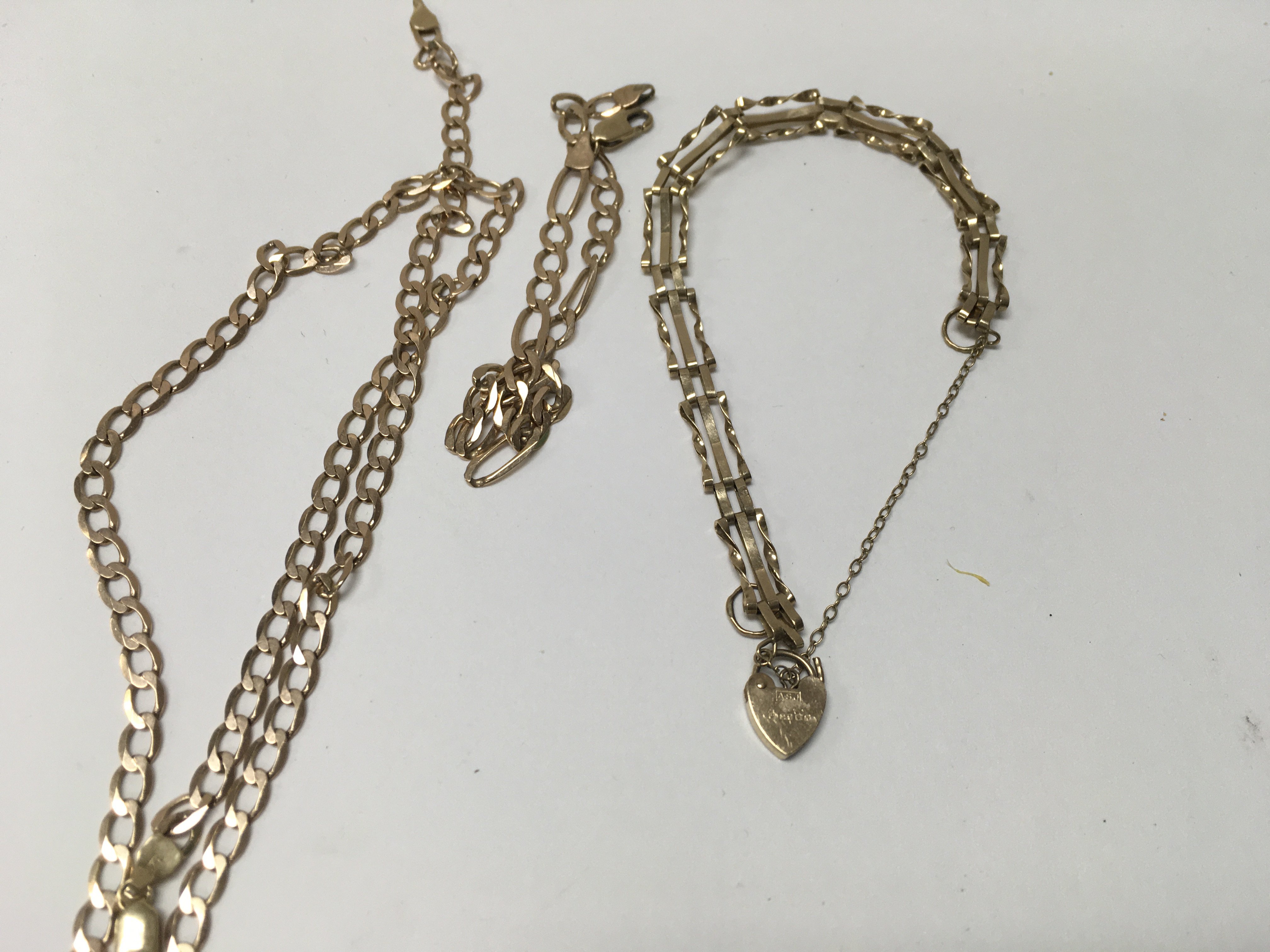 A 9 ct gold necklace and two 9 ct gold bracelets 18.5 grams.
