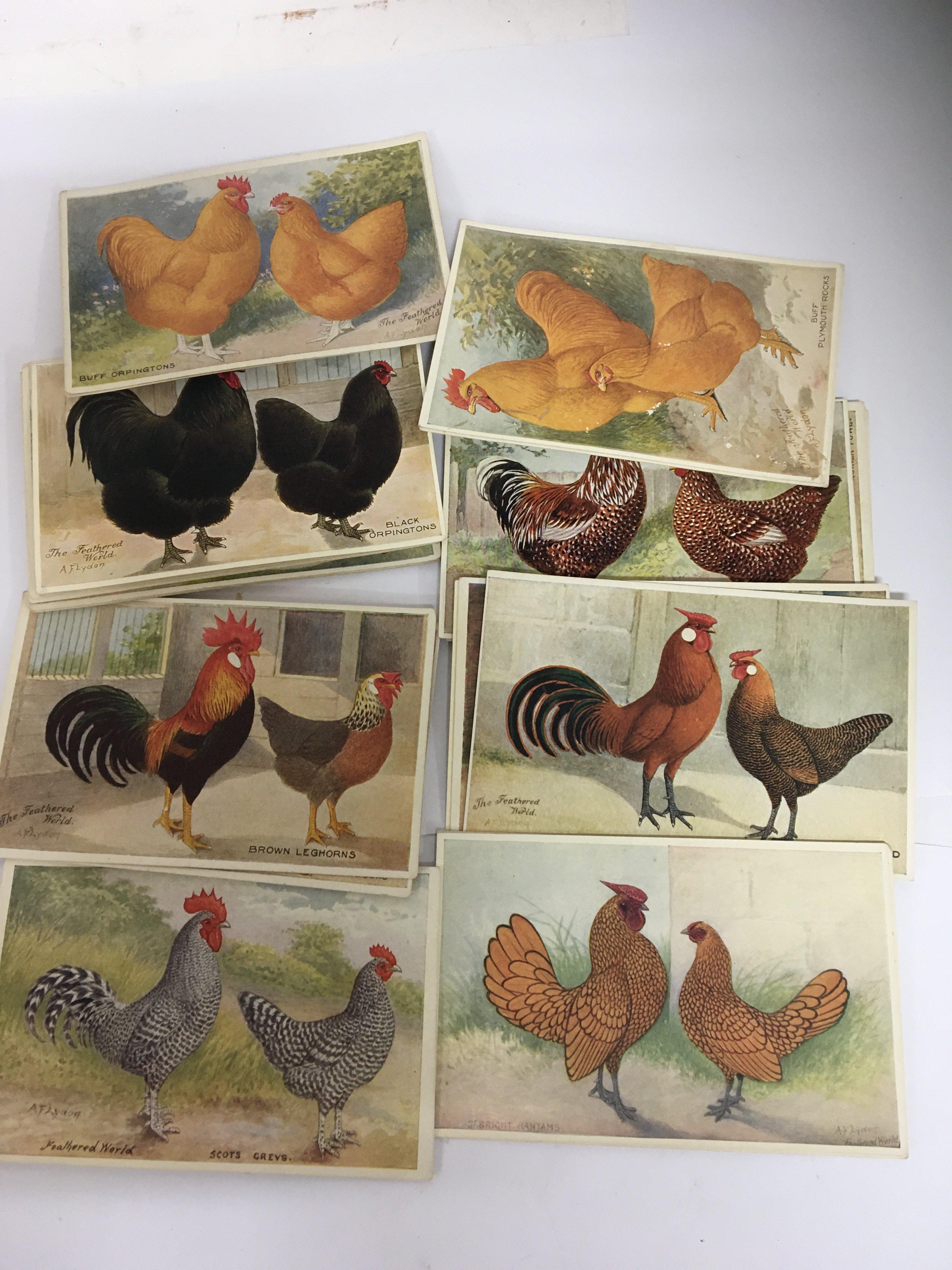 A collection of Vintage Feathered World Postcards studies of breeds of Poultry.