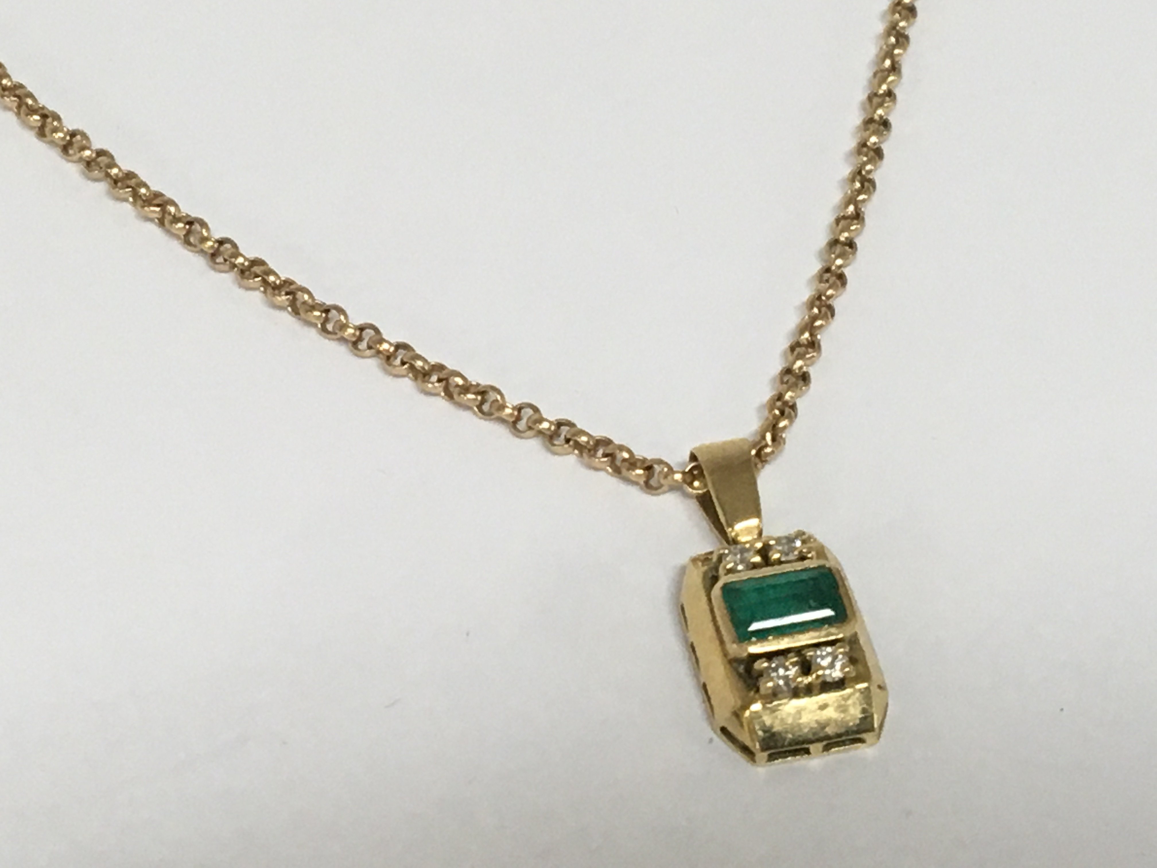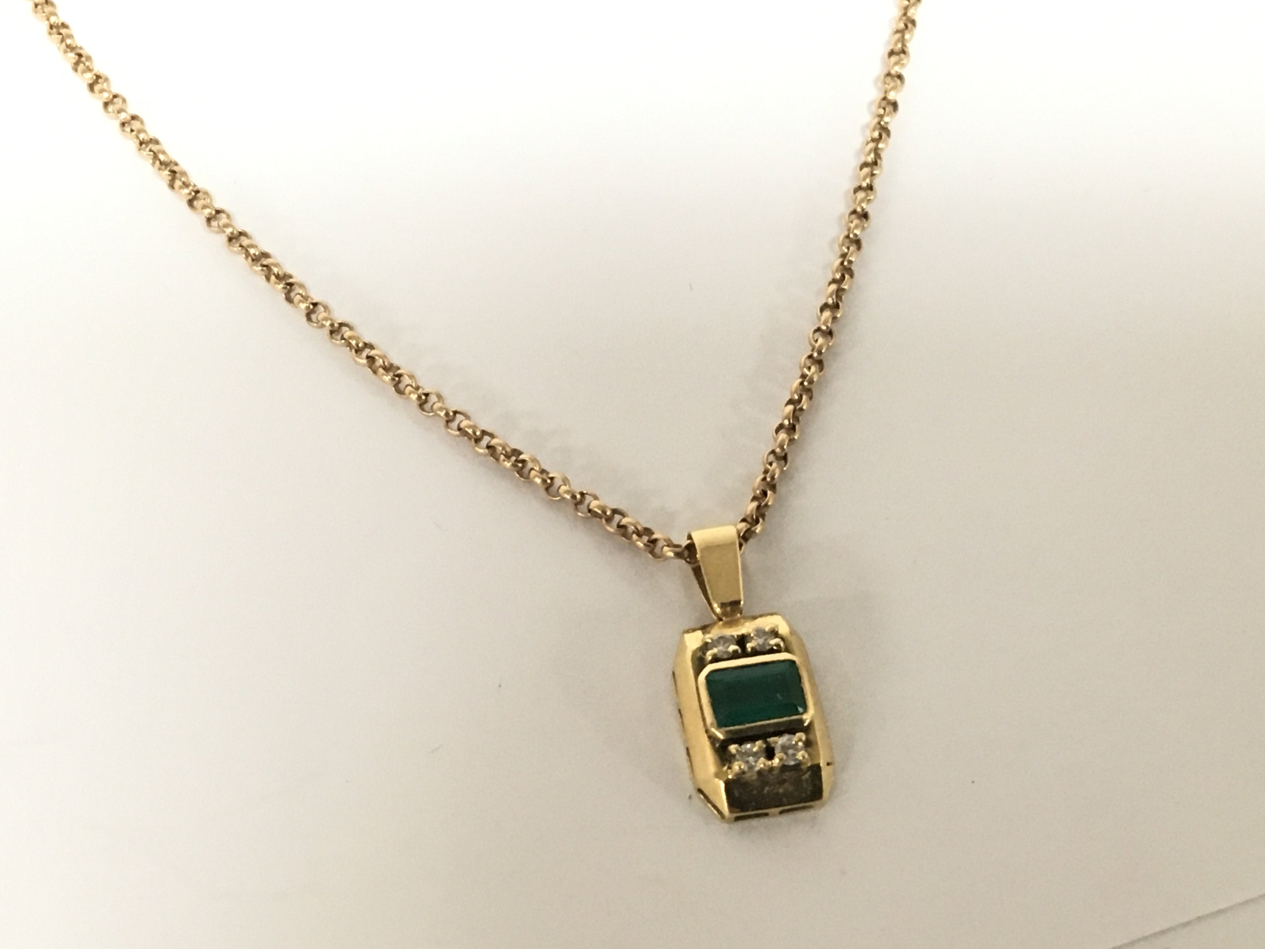 An 18carat gold pendent set with green sapphire and small diamonds with a 9carat gold chain attached. Total weight 6g