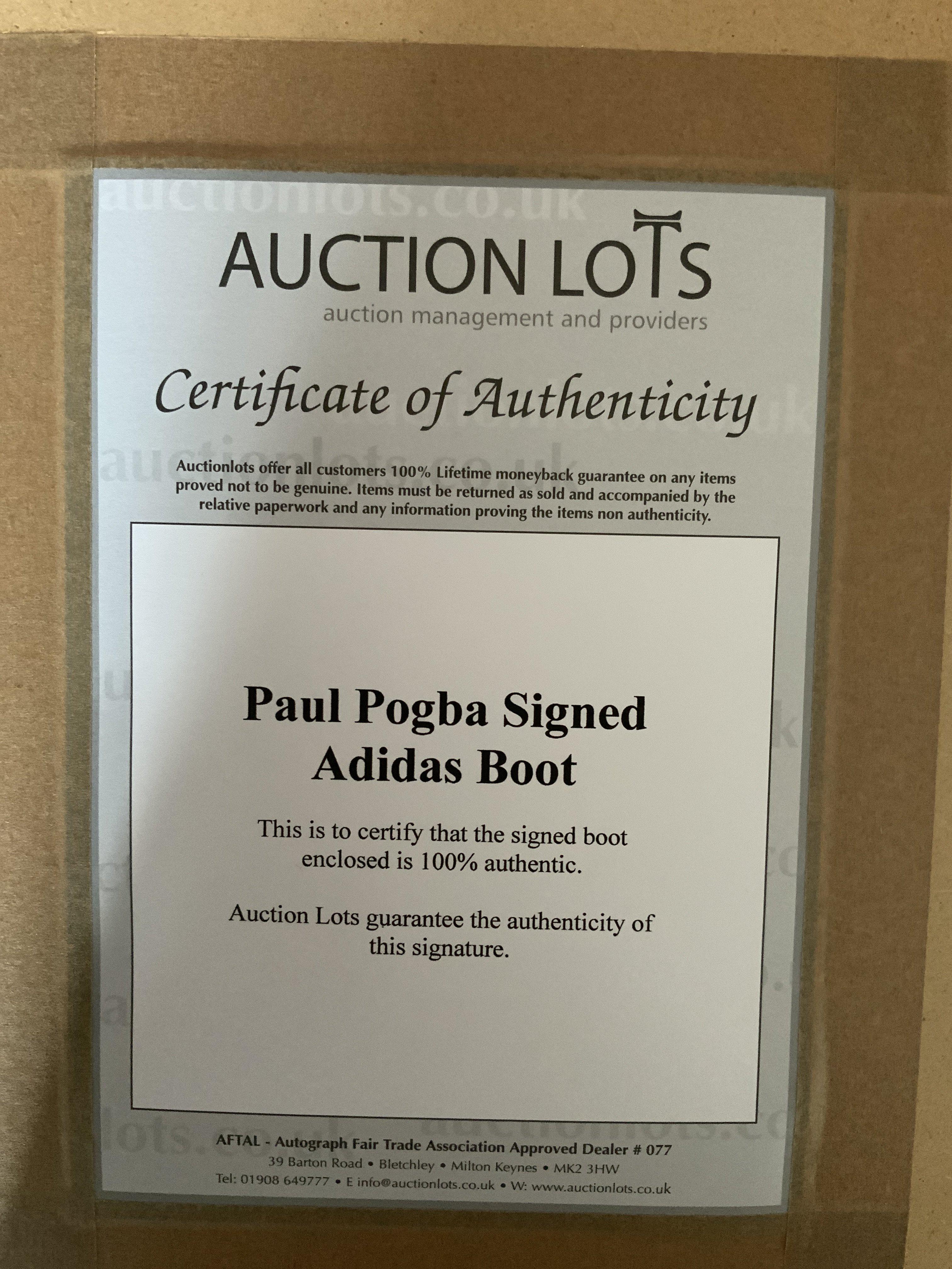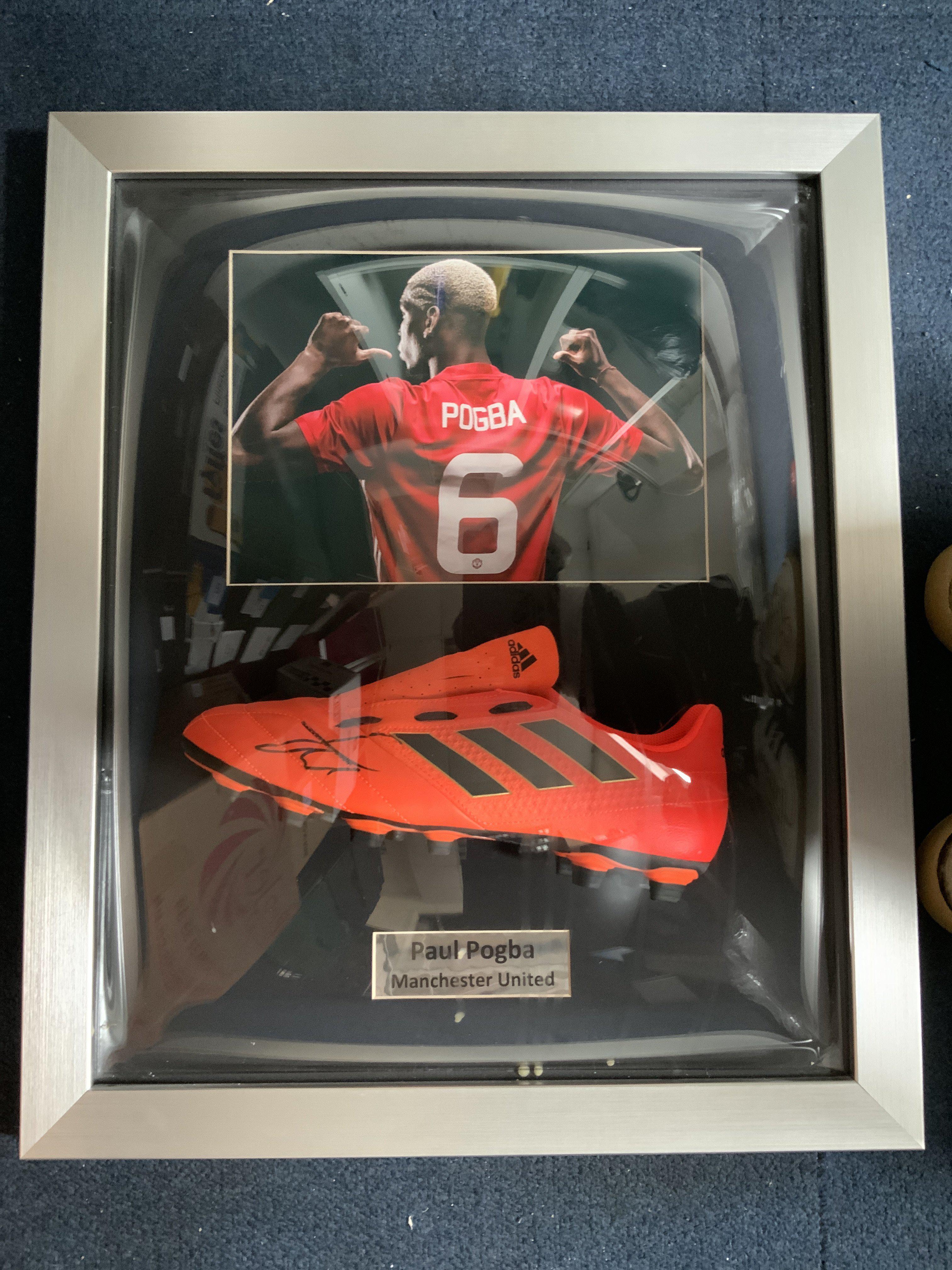 Paul Pogba Signed Framed Manchester United Football Boot: An Adidas orange unused boot signed by Paul Pogba. In an expensive bulbous frame with a picture of Pogba in Man Utd kit. COA from AFTAL approved dealer. Not for posting.