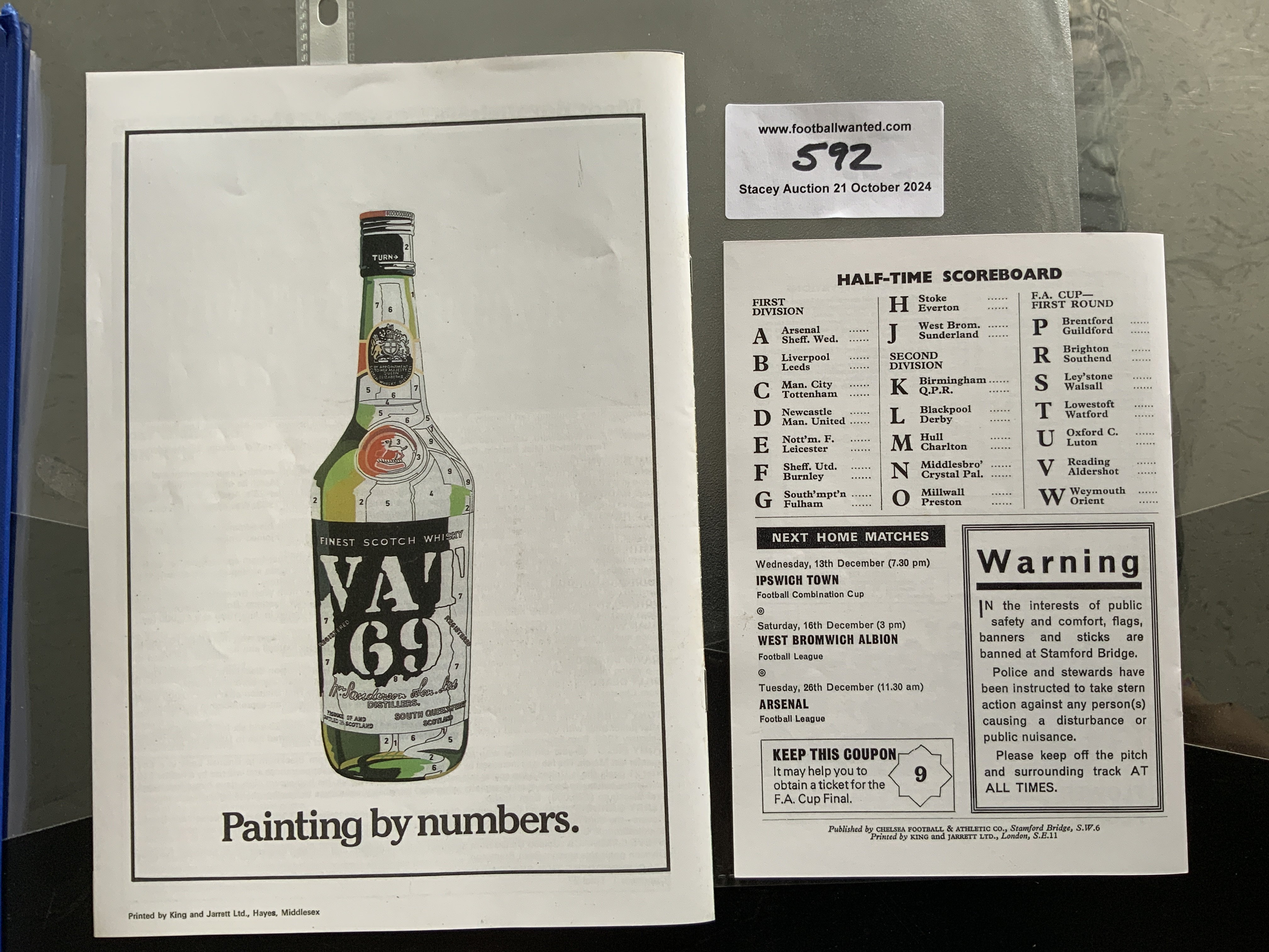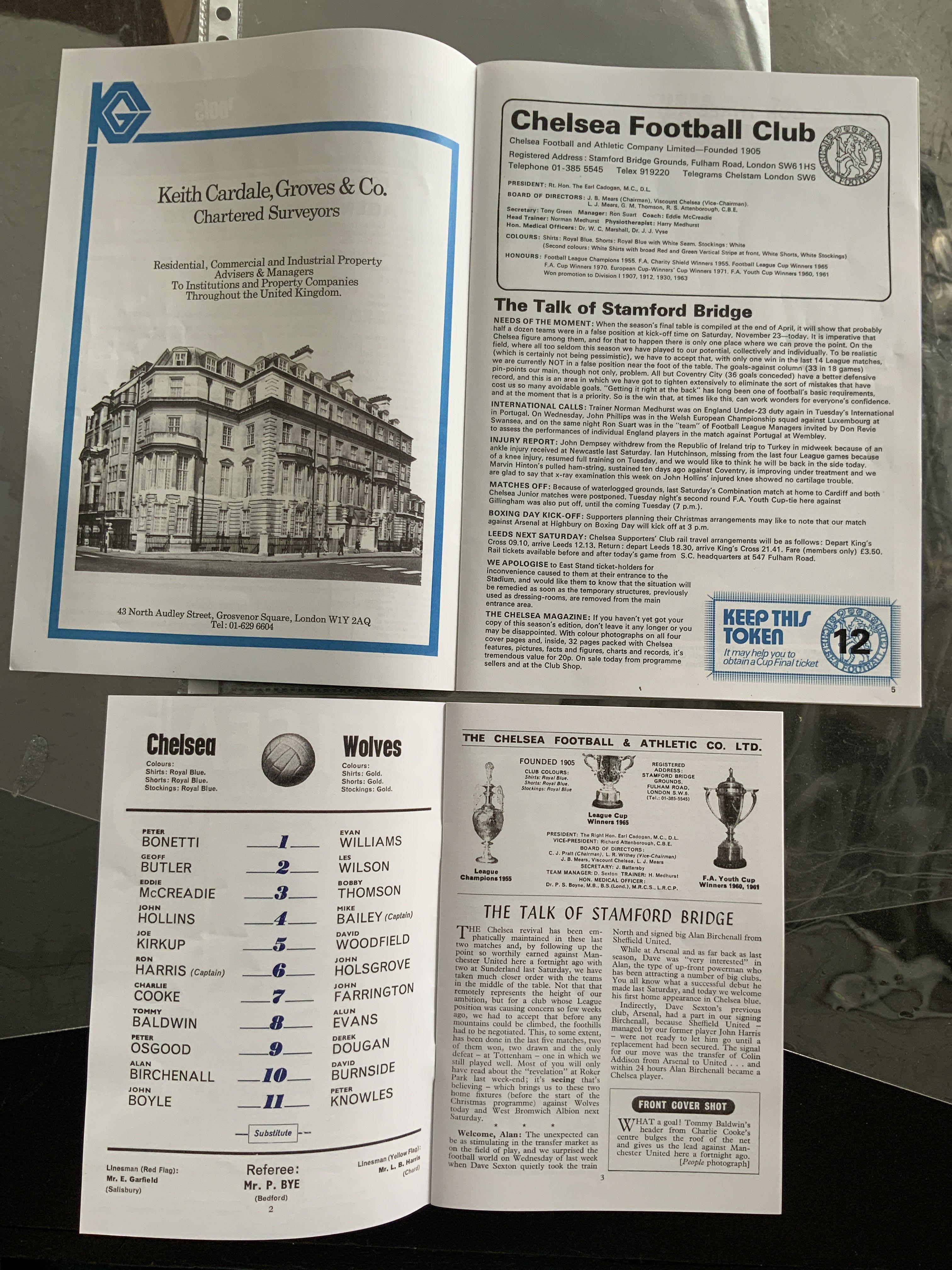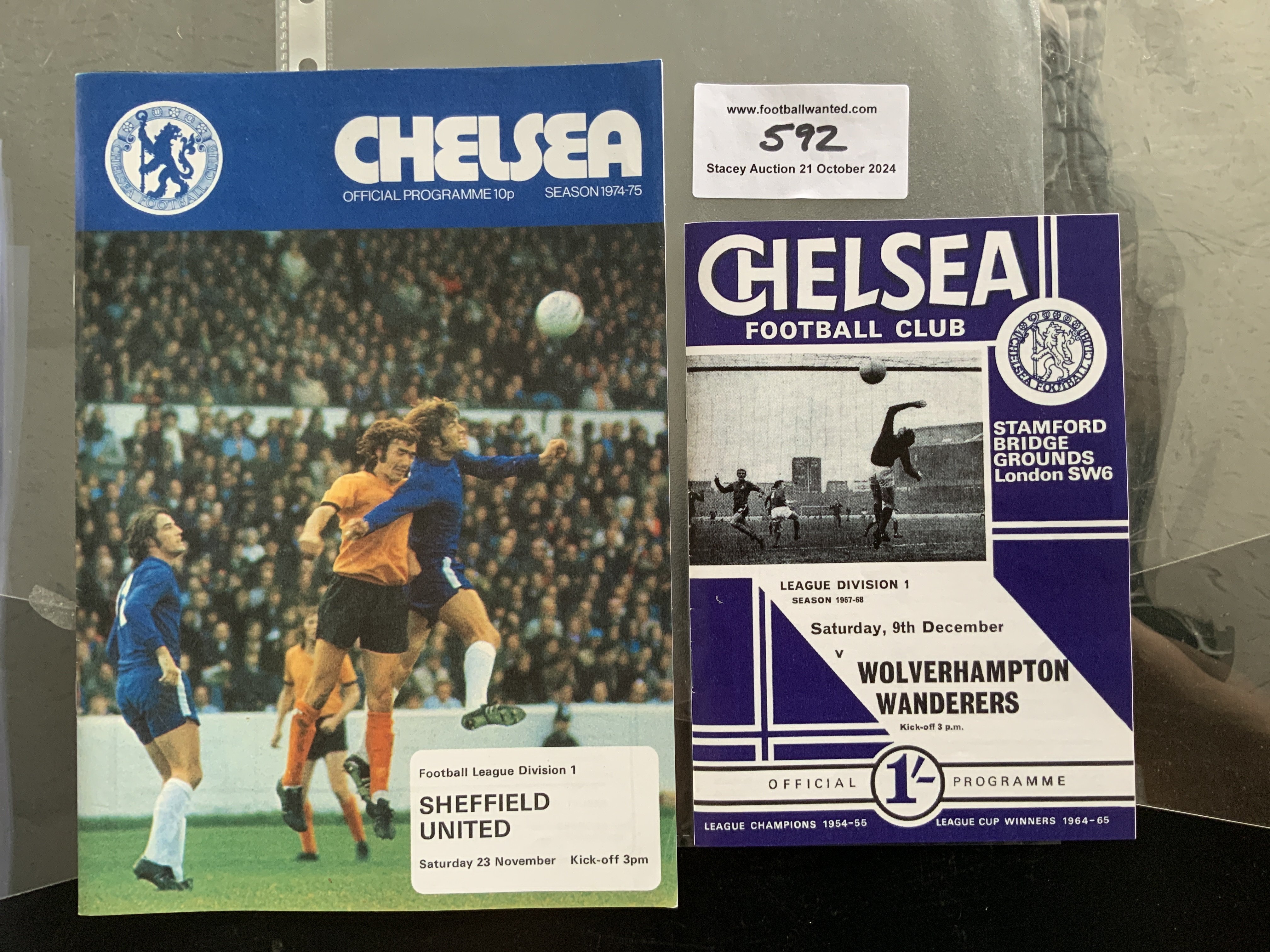 Chelsea Reproduction Postponed Football Programmes: Superb lifelike quality of rare home programmes that were postponed and almost impossible to find. 67/68 Wolves dated 9 12 1967 and 74/75 Sheffield United dated 23 11 1974. (2)