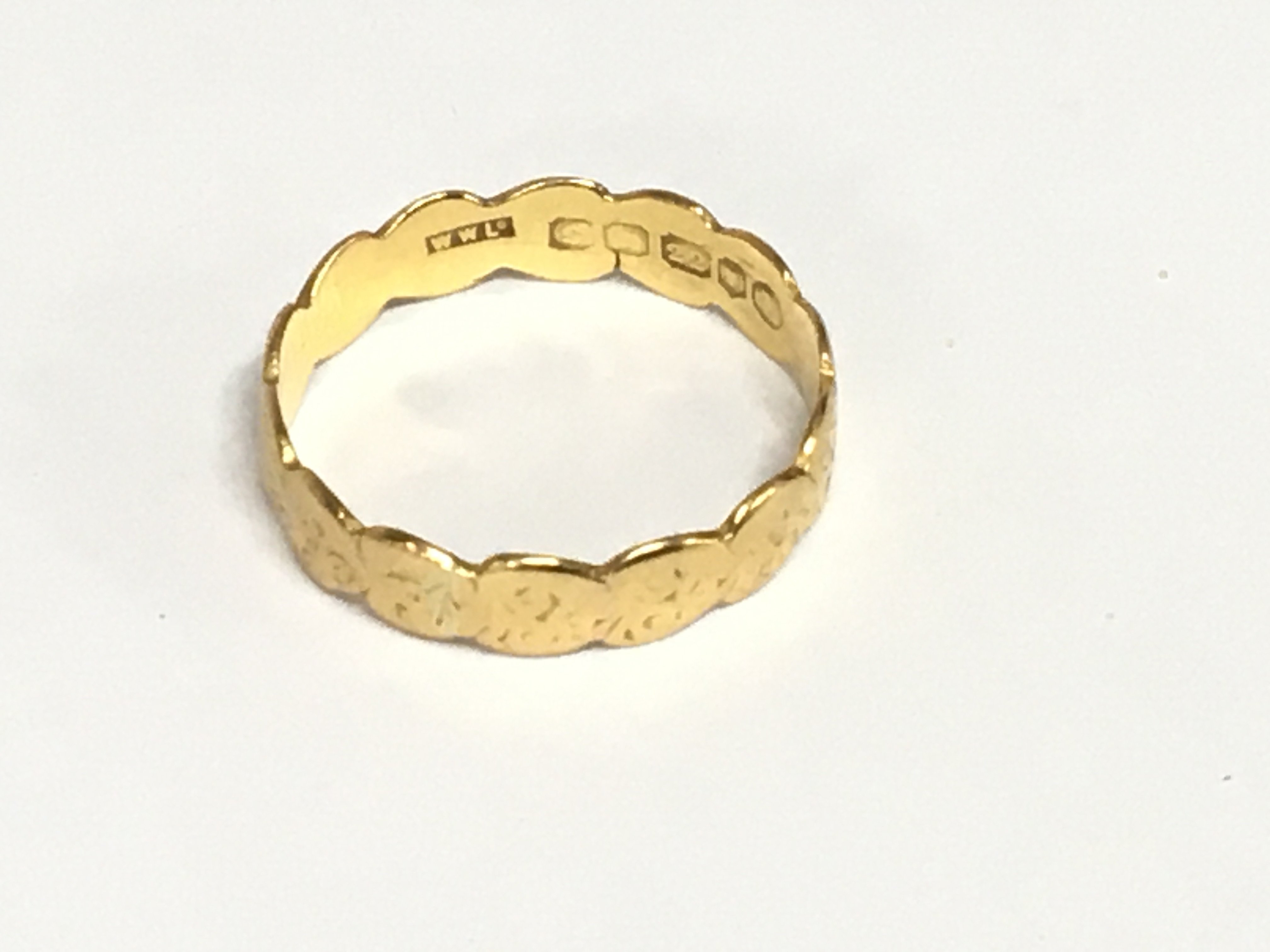 A 22carat gold wedding band with a shaped edge weight 2.5g