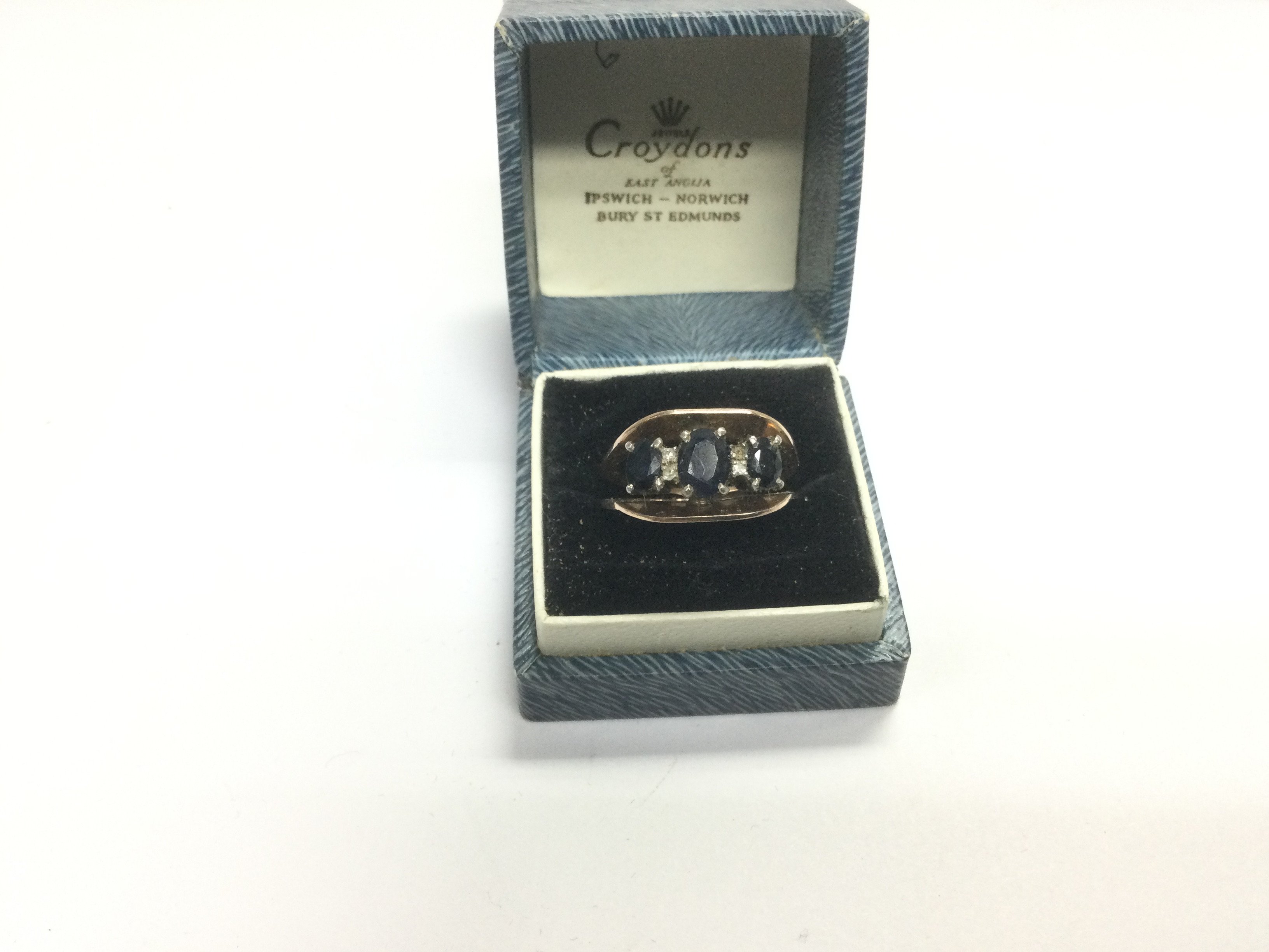 A 9ct gold ring set with sapphires and diamonds, approx 4.1g and approx size M-N. Shipping category A.