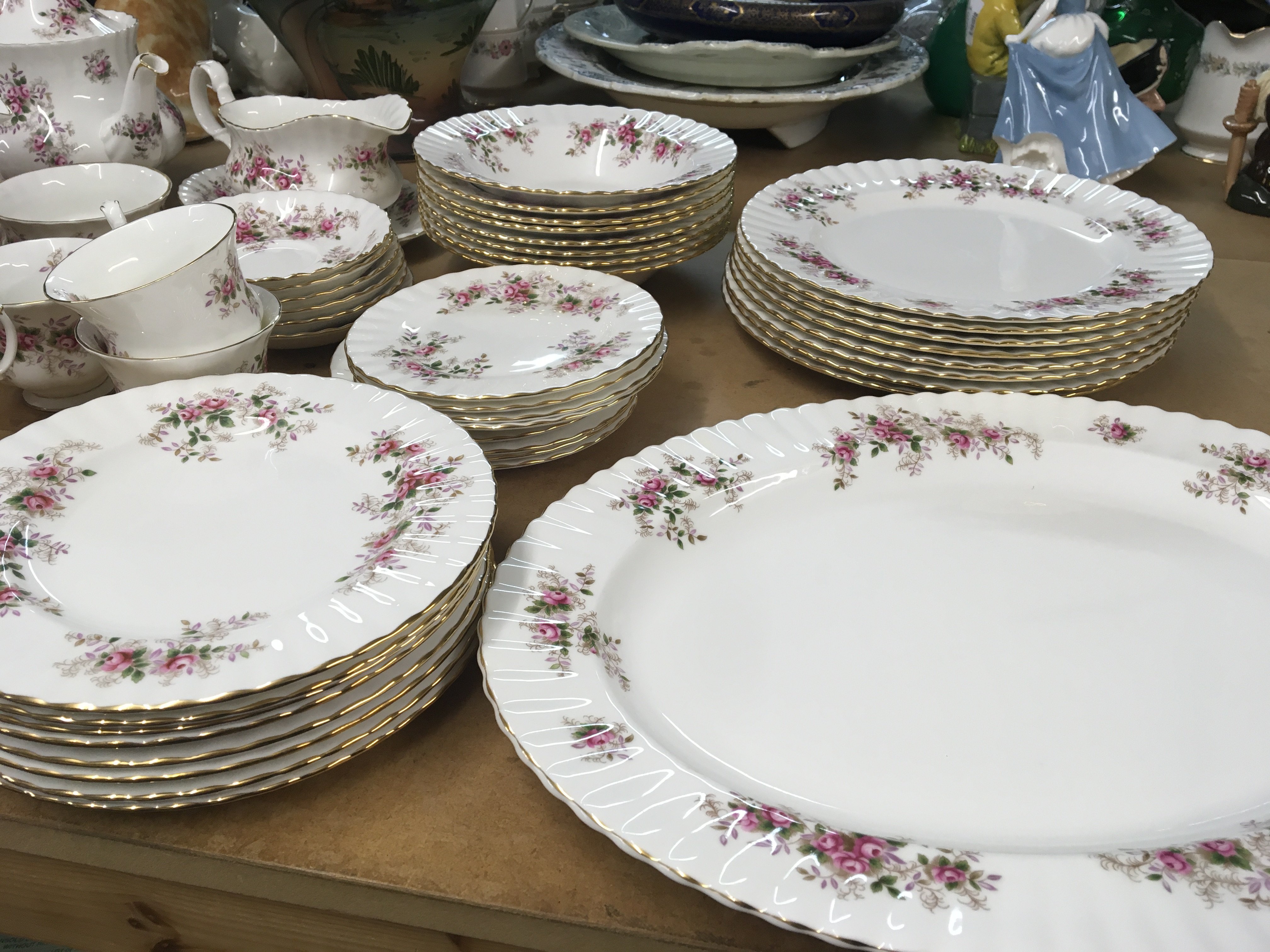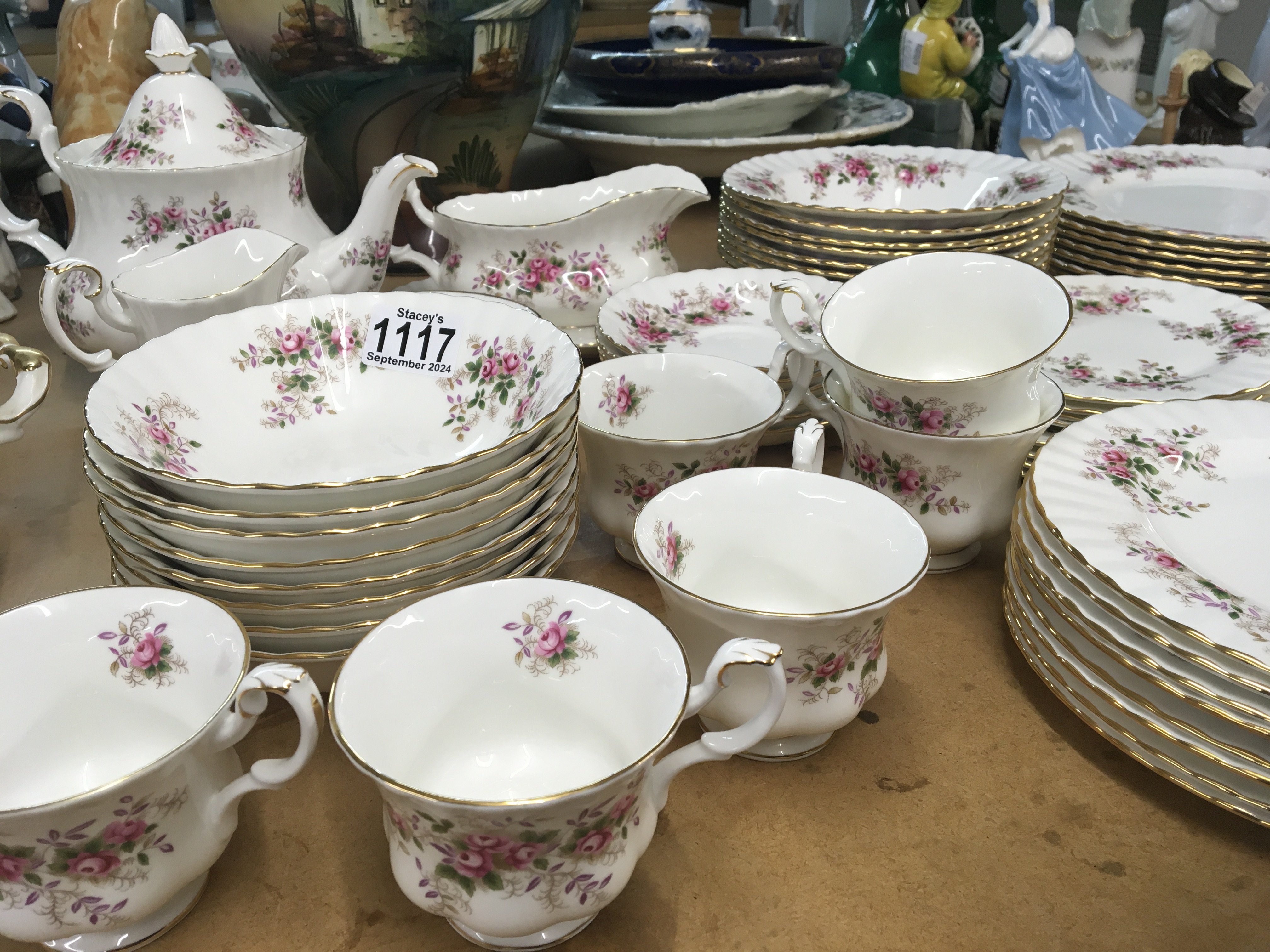 A Royal Albert Lavender Rose porcelain bone china dinner and tea set six place setting.no obvious damage first quality.