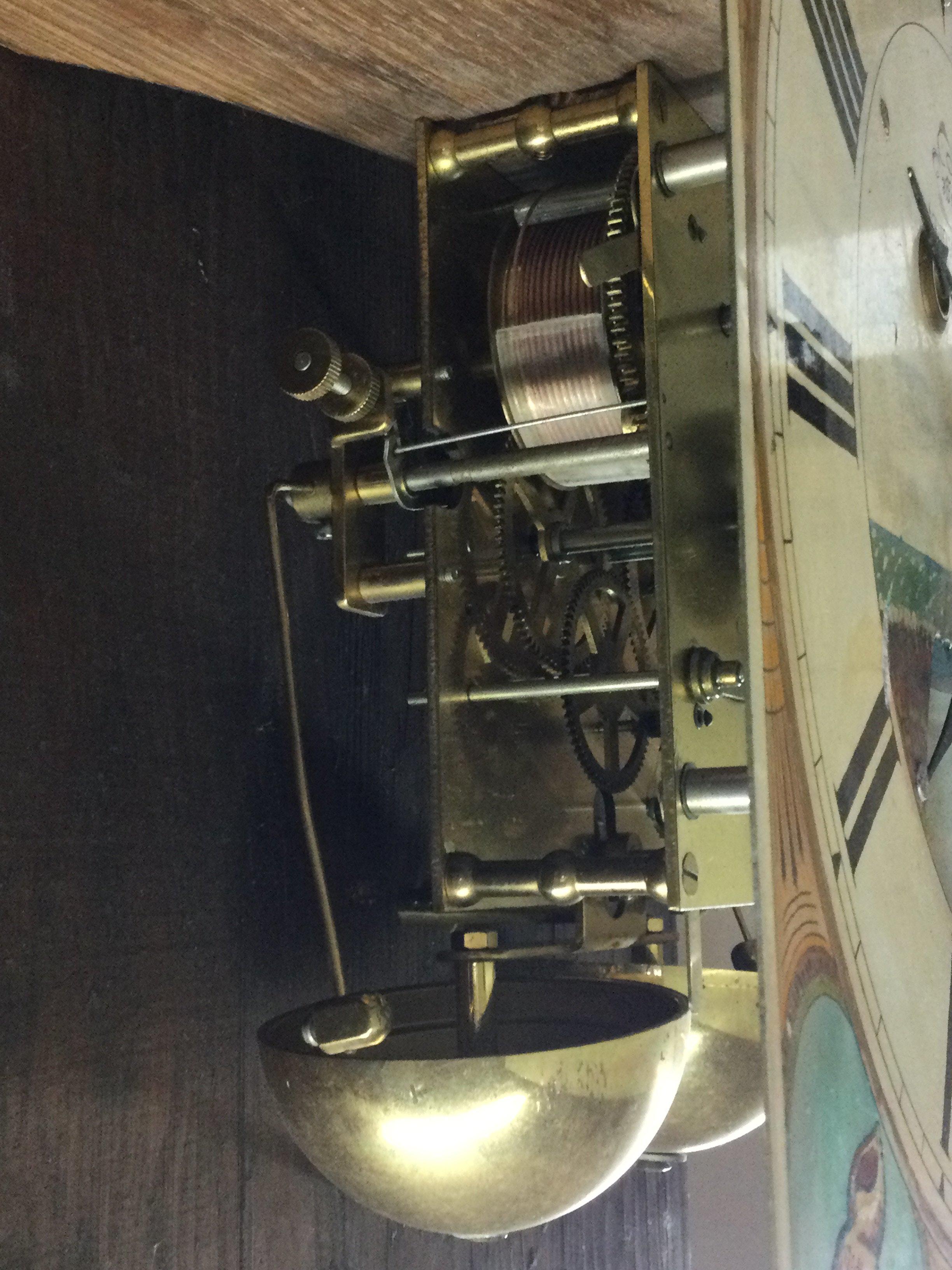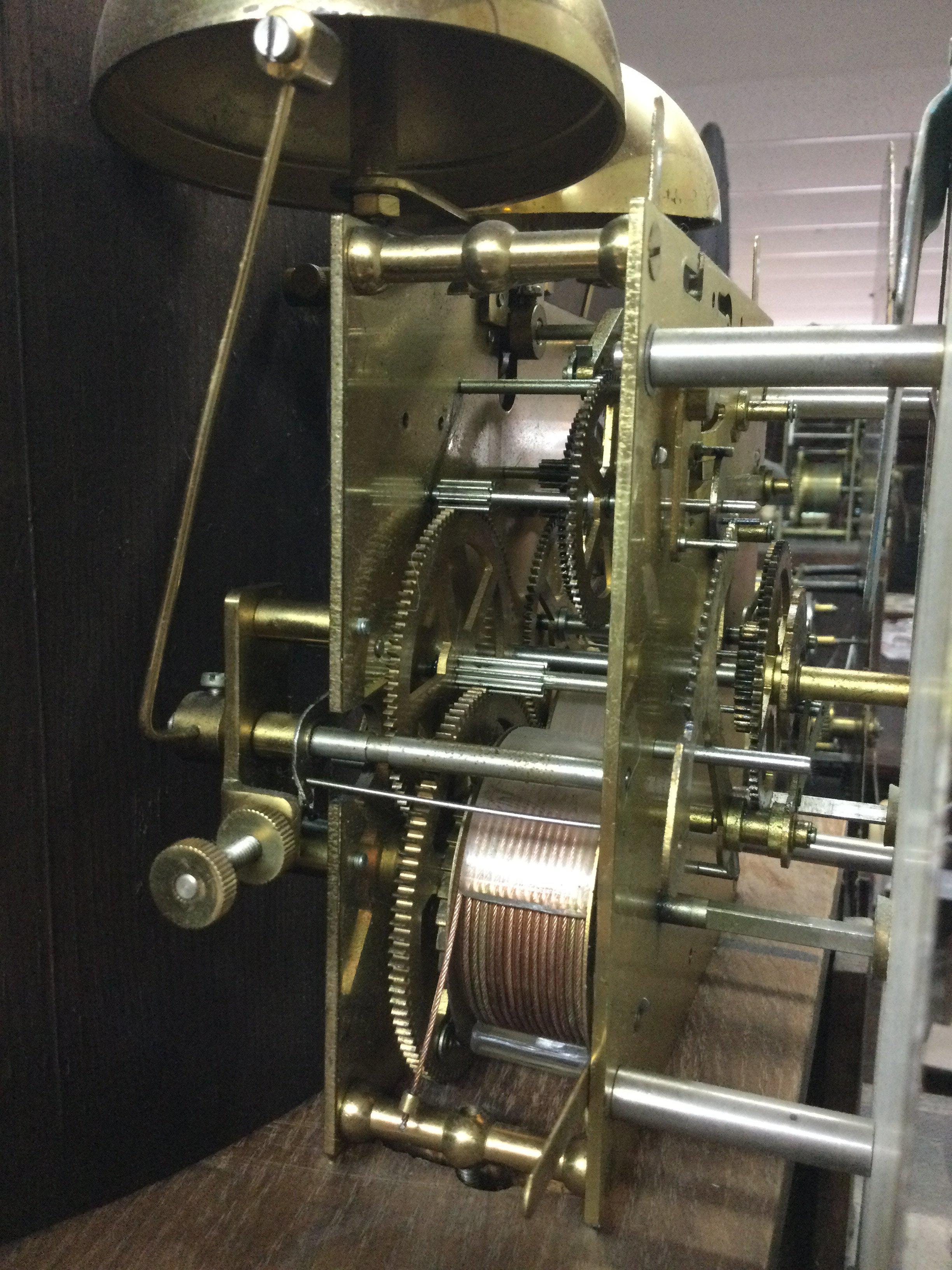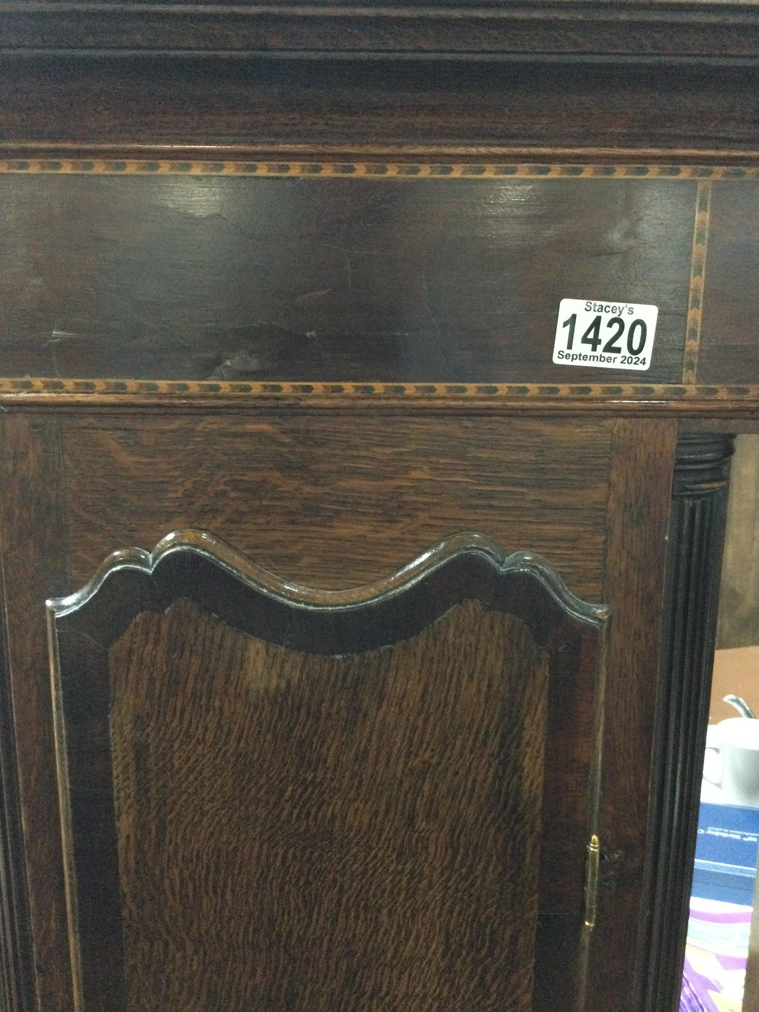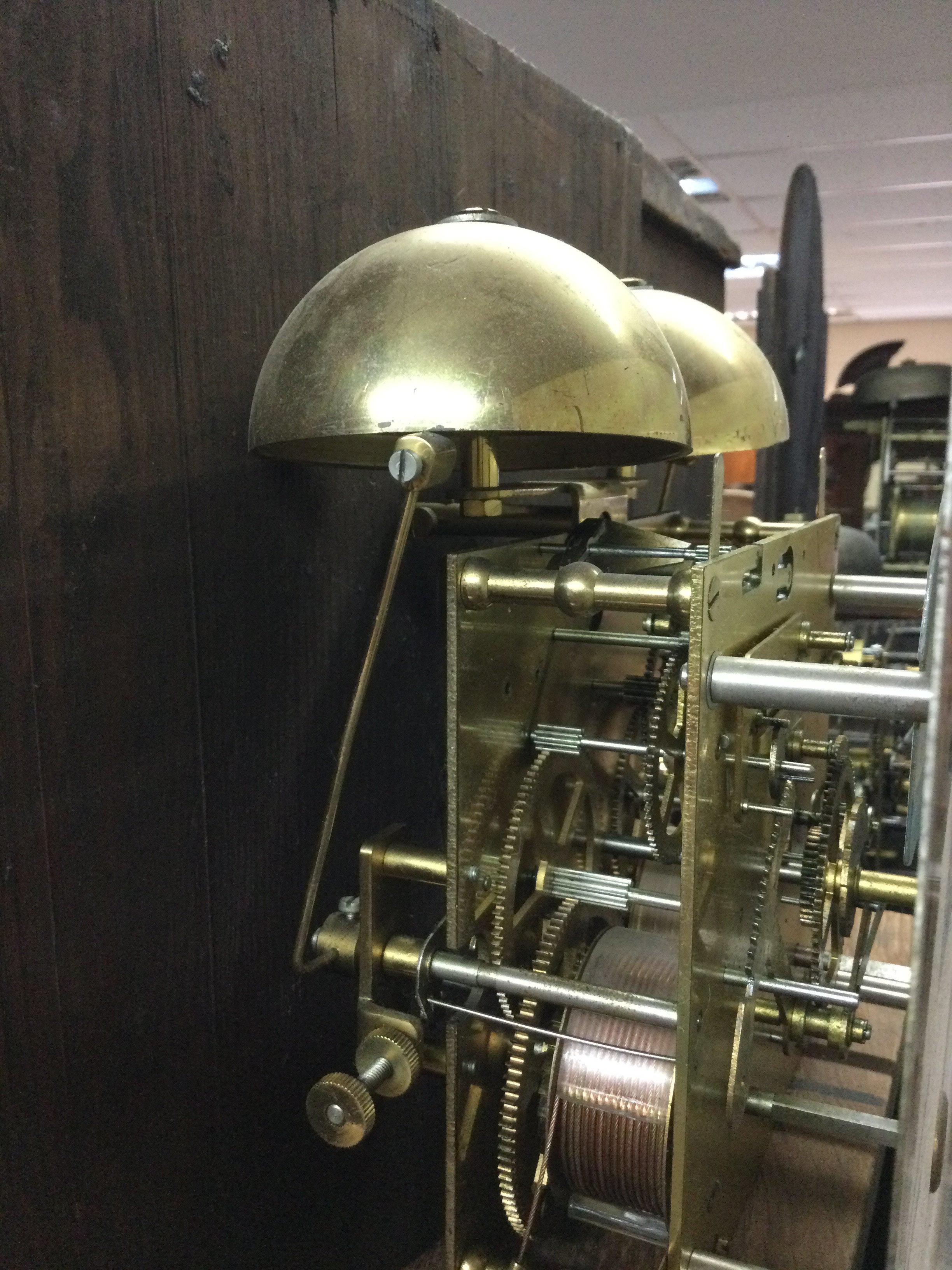 A oak long case clock the painted dial with Roman numerals maker P Beardsmore Sandridge