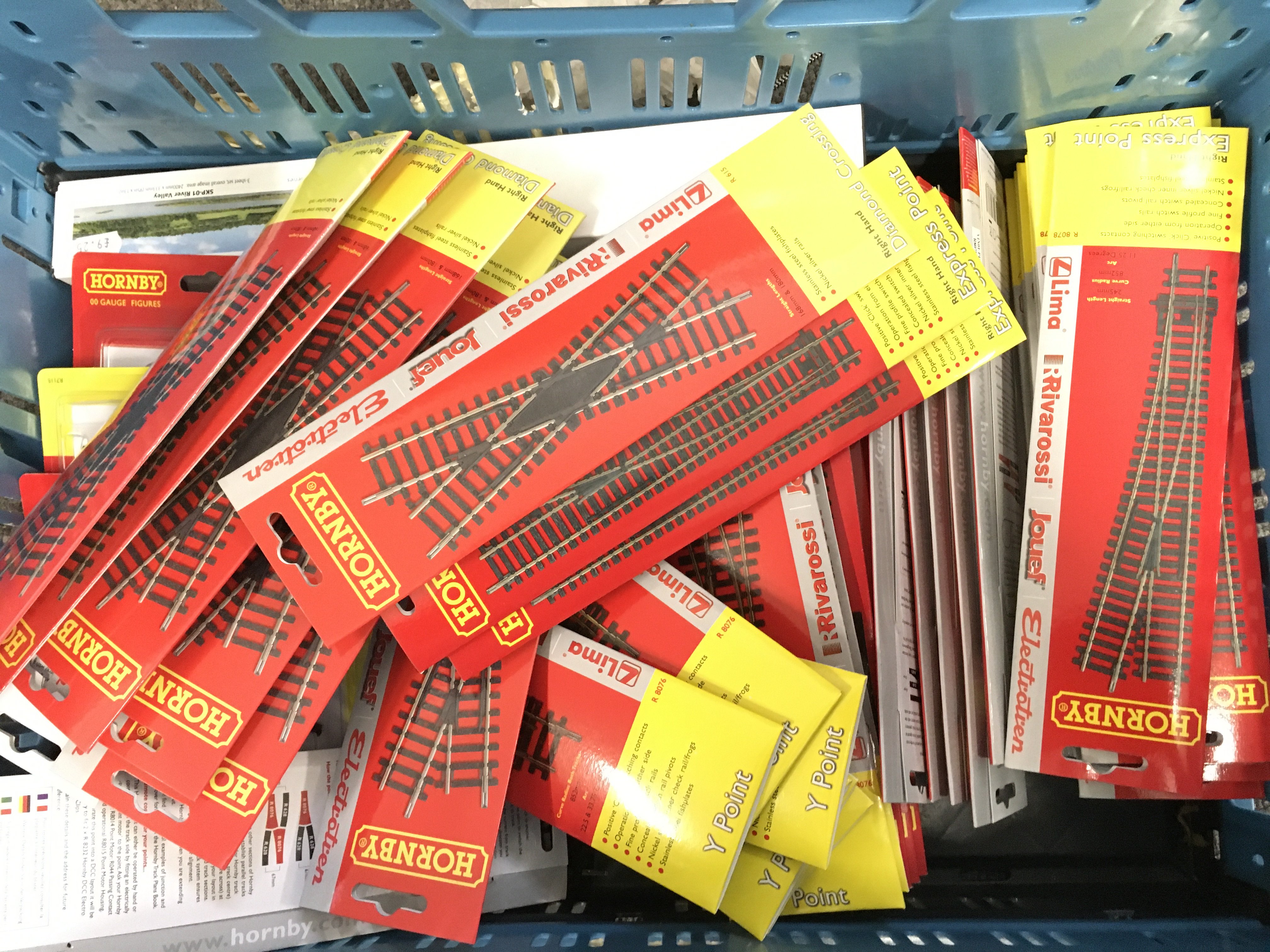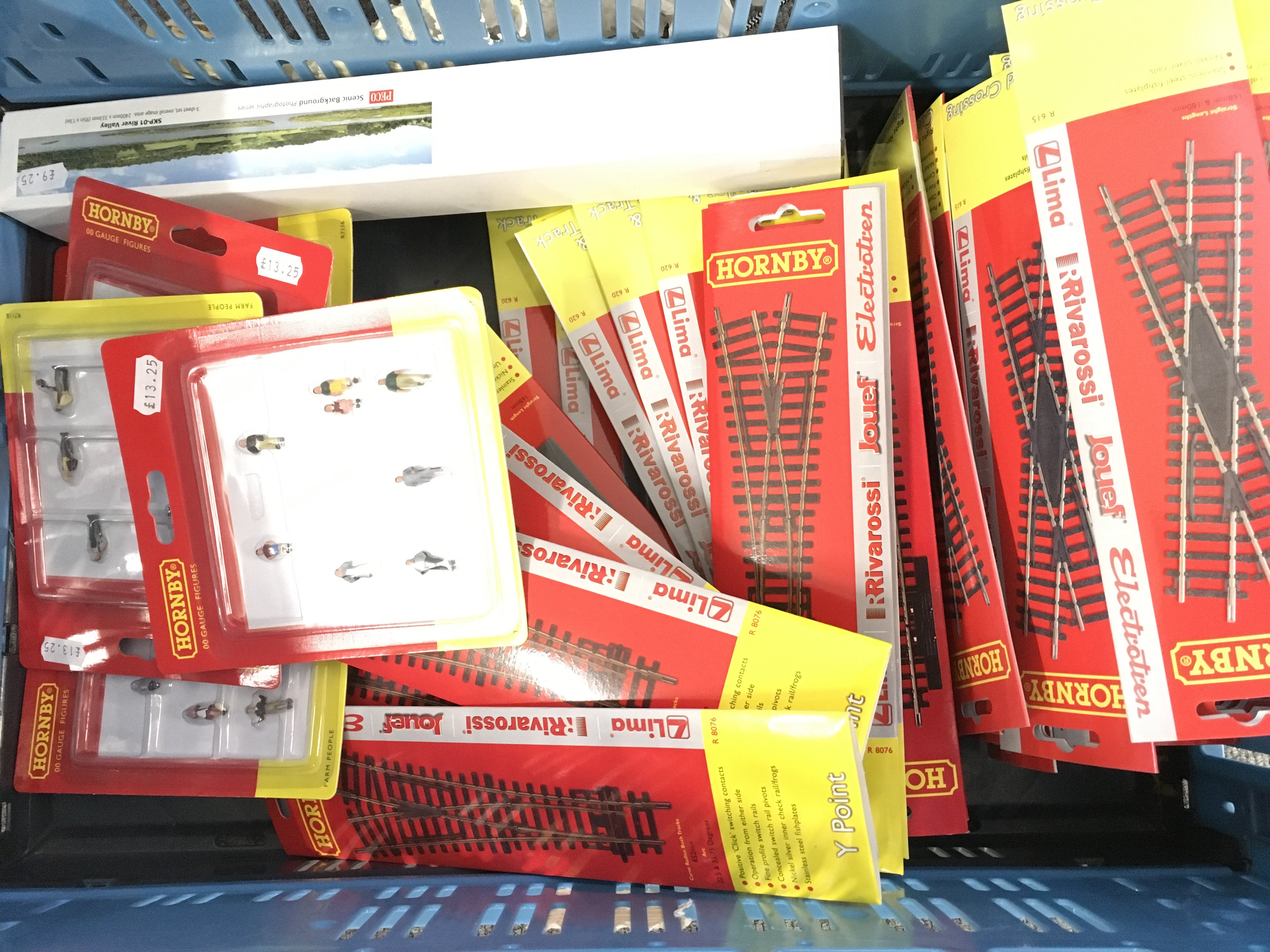 A box Containing carded 00 Gauge Hornby Track and figures. No Reserve.