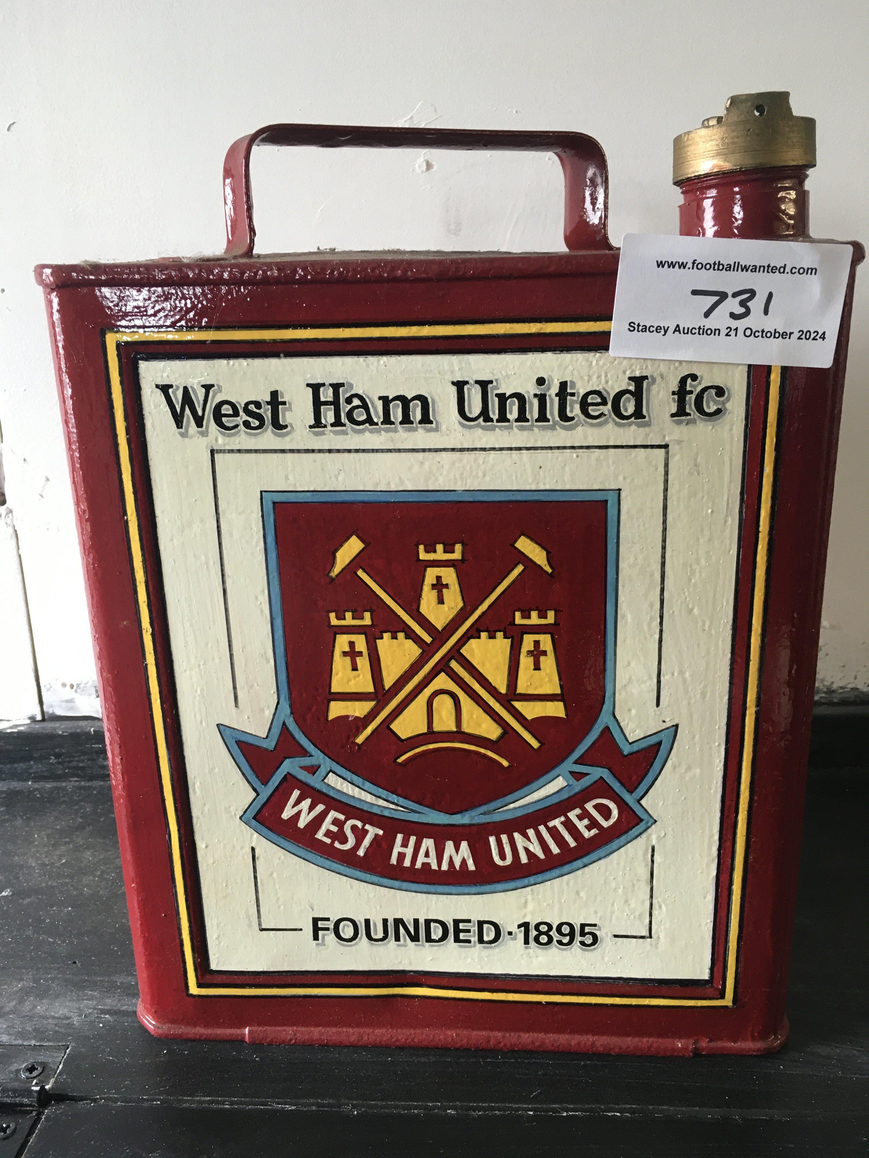 West Ham Retro Old Petrol Can For Man Cave: Very old petrol can painted claret with West Ham logo to whole of front. Whilst revamped around 10 years ago these 11 inch high old cans would be a great talking point in a bar or man cave.