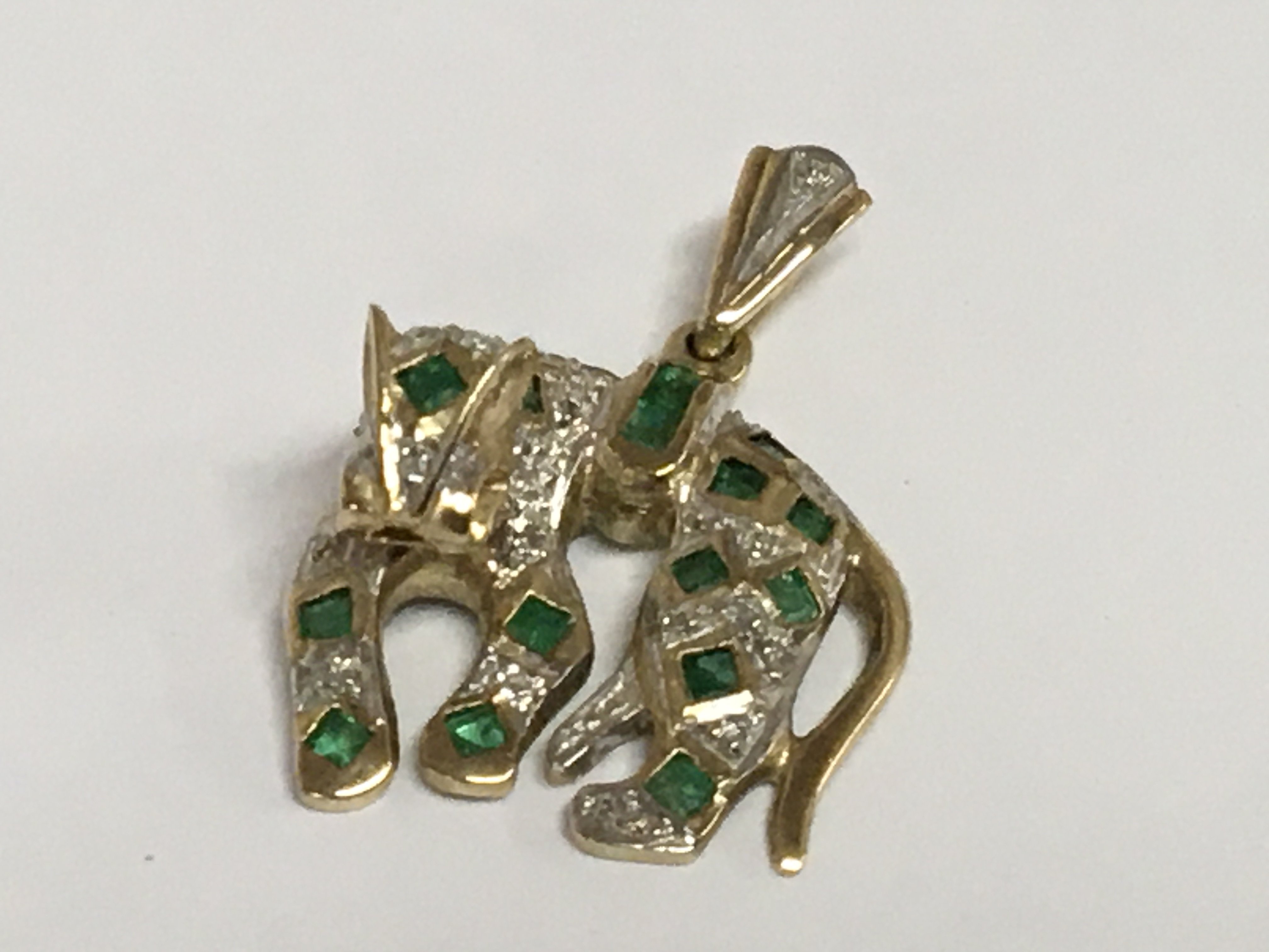A 9carat gold pendant in the form of a lion set with small diamond and emerald.