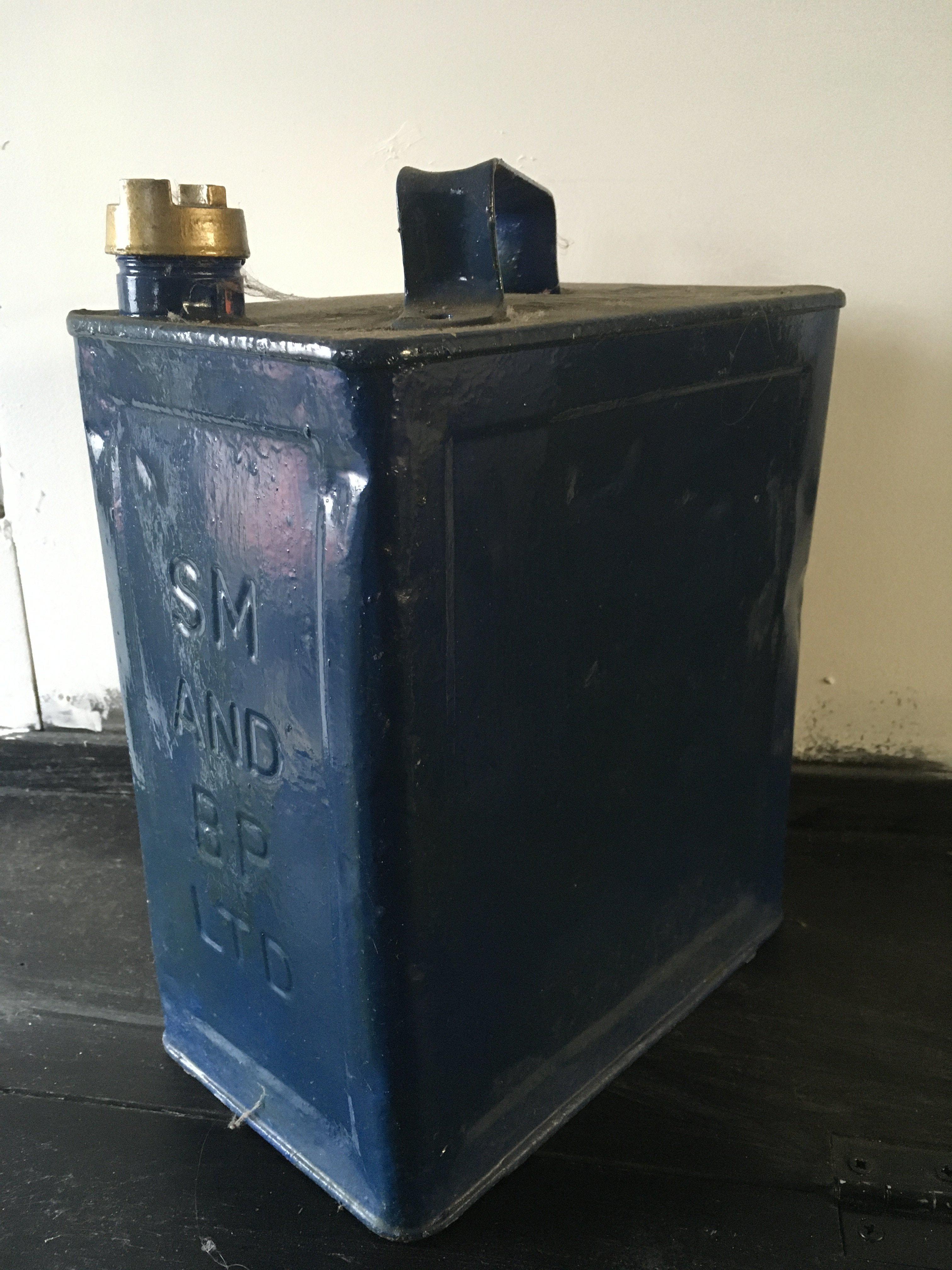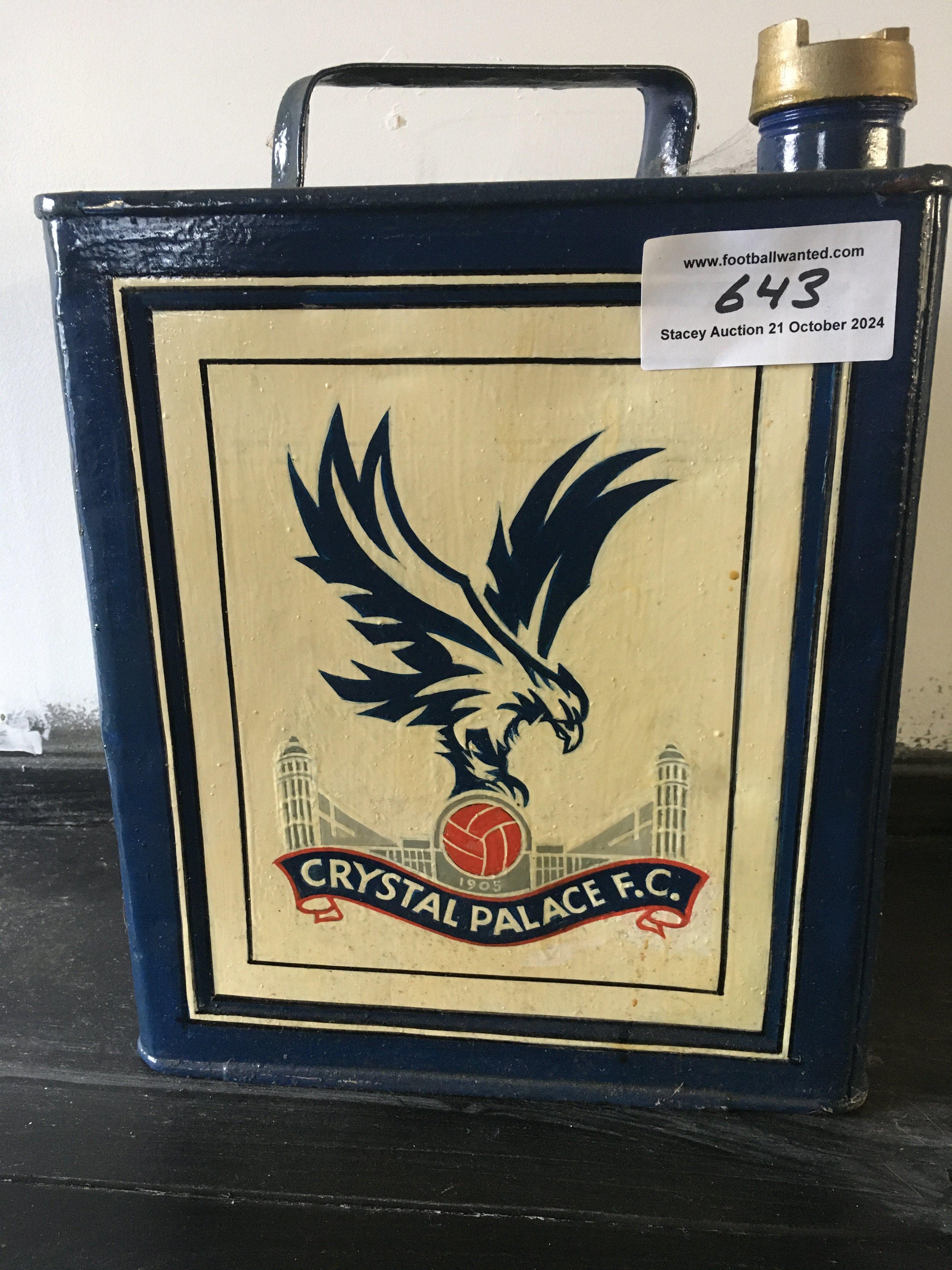 Crystal Palace Retro Old Petrol Can For Man Cave: Very old petrol can painted blue with Crystal Palace logo to whole of front. Whilst revamped around 10 years ago these 11 inch high old cans would be a great talking point in a bar or man cave.