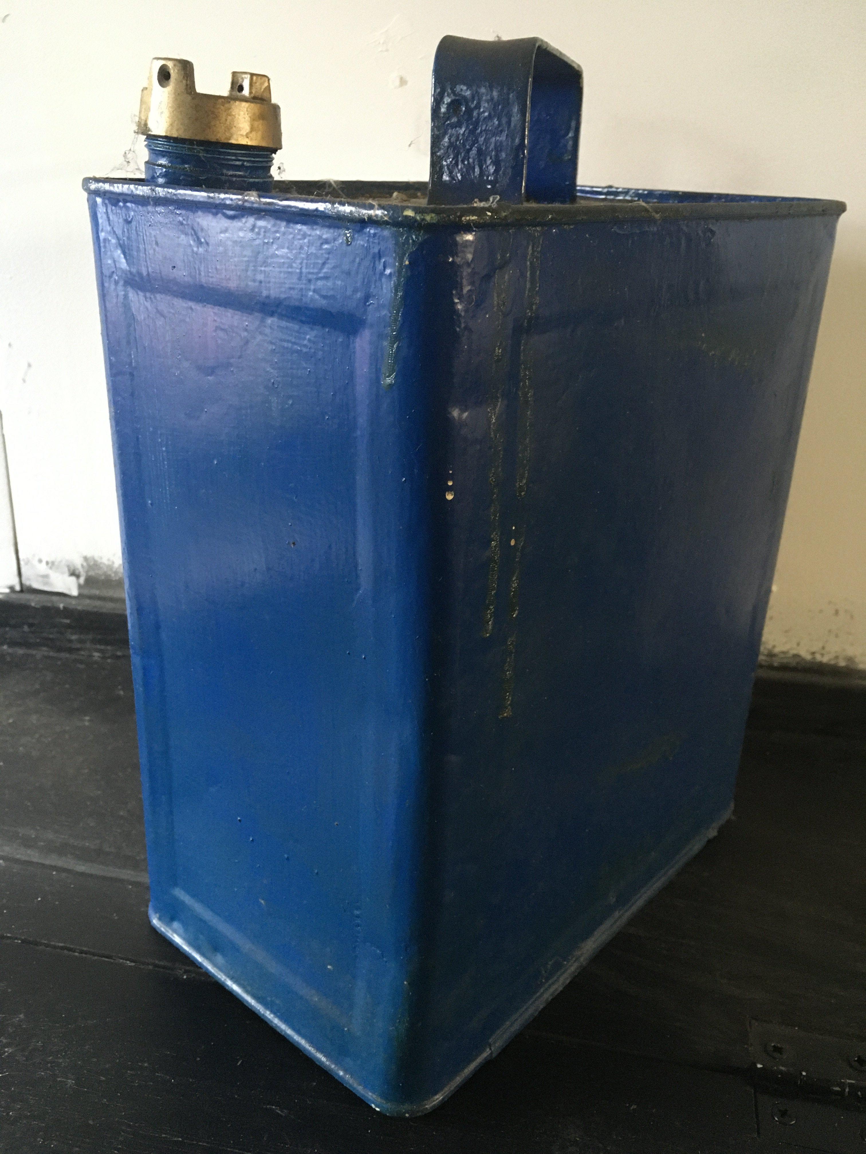 Leicester City Retro Old Petrol Can For Man Cave: Very old petrol can painted blue with Leicester City logo stating Premier League winners 2016 to whole of front. Whilst revamped around 10 years ago these 11 inch high old cans would be a great talking point in a bar or man cave.