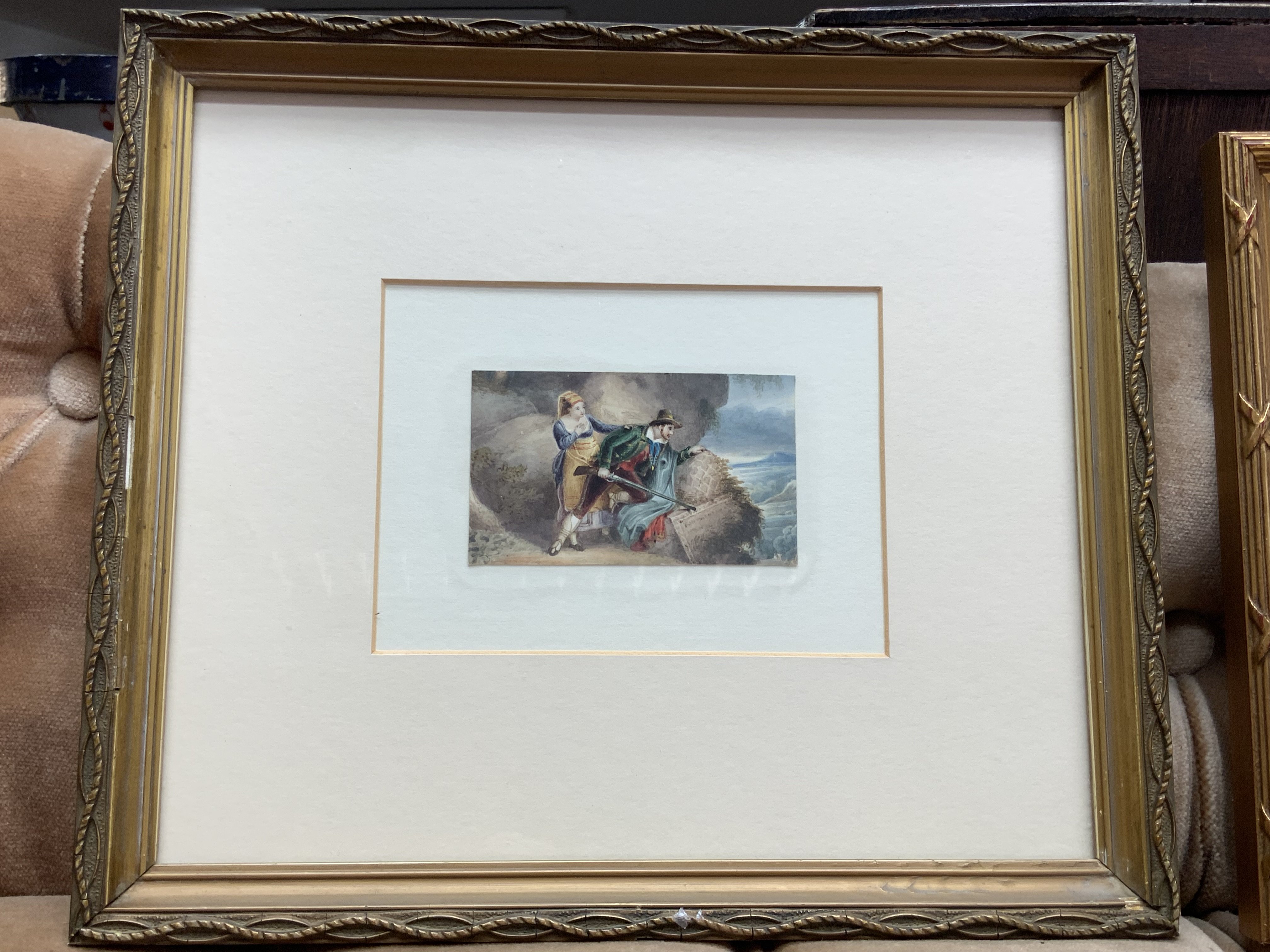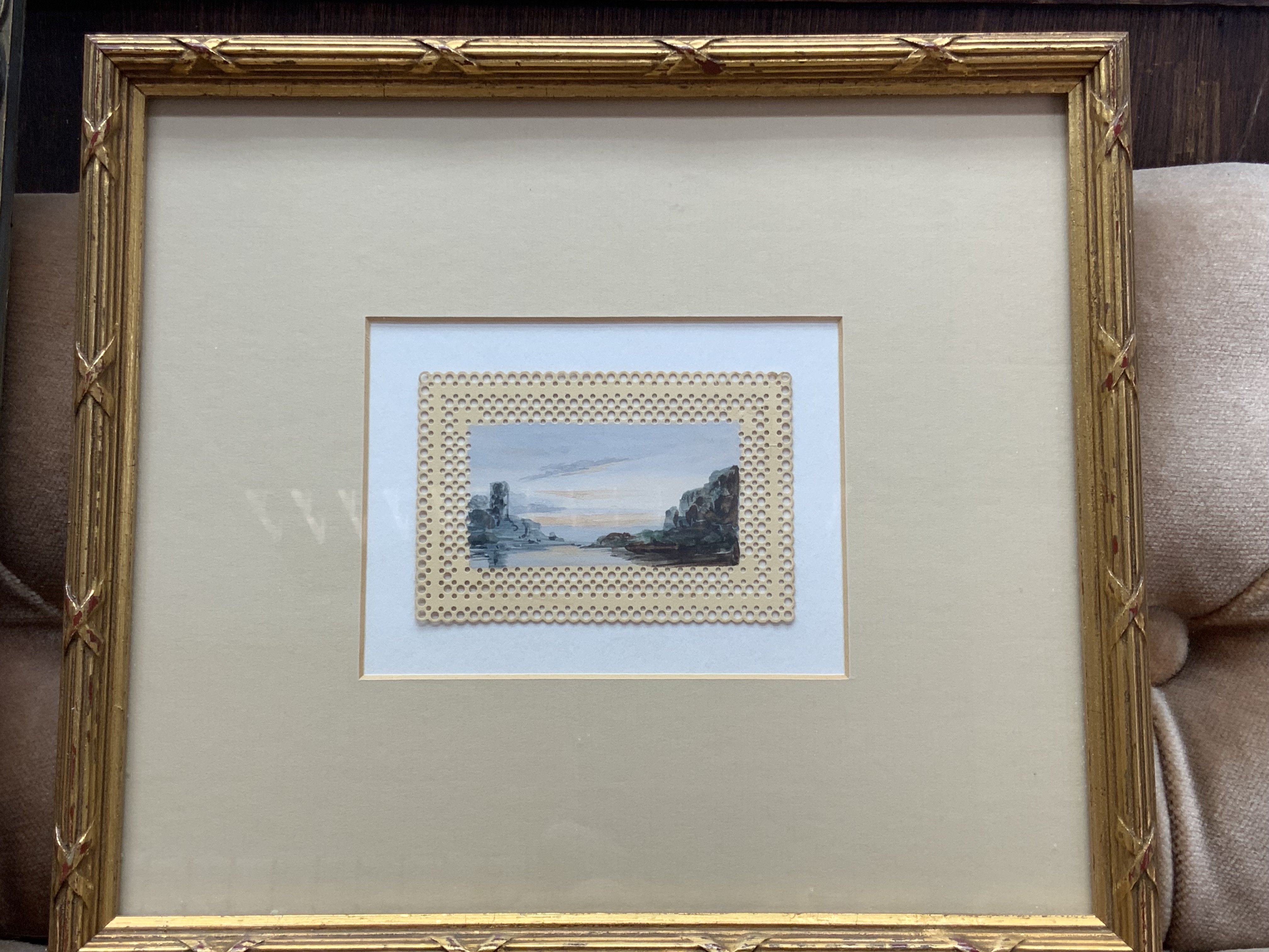 3 good framed watercolour paintings ( 2 miniature) 1 with inscription to reverse. Thomas Heapy, on the Tyne after J.M.W Turner.