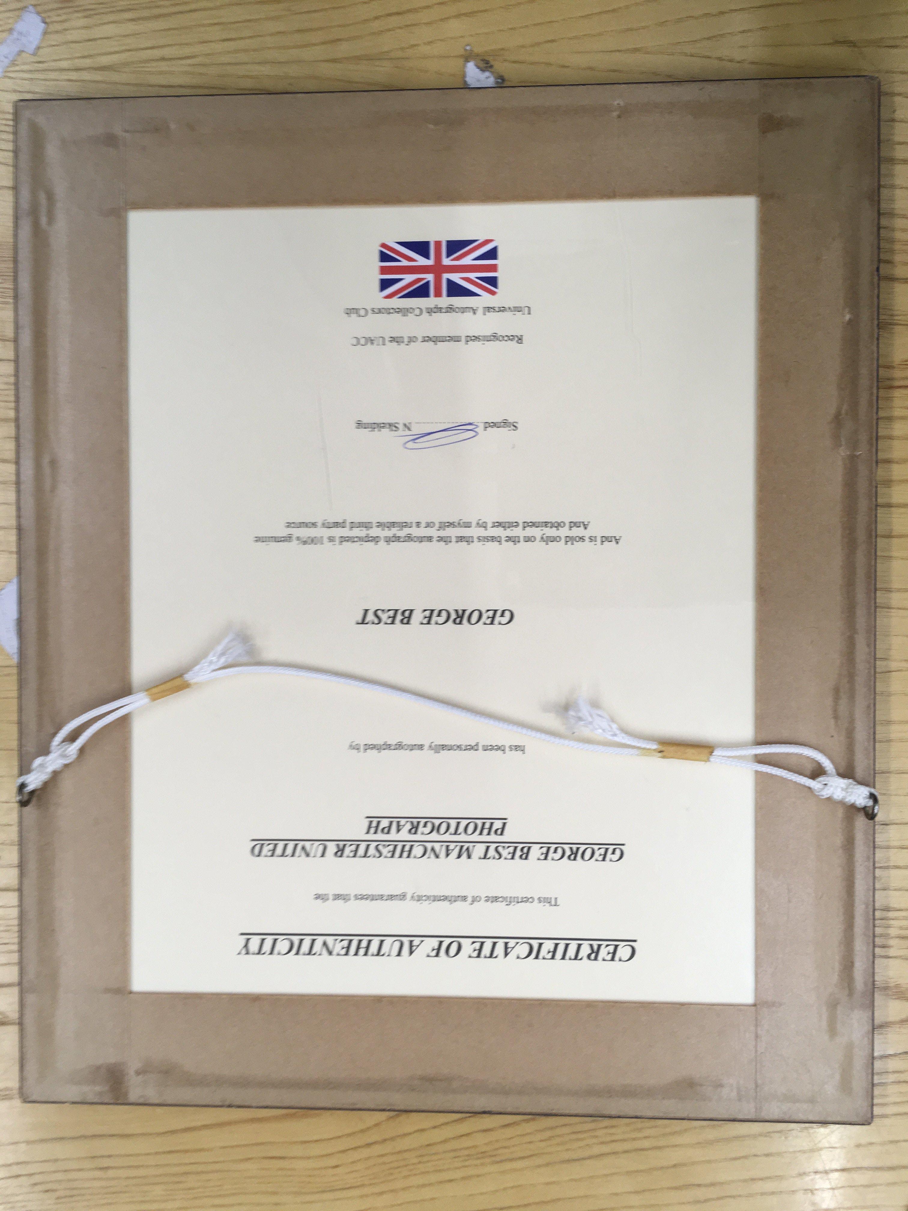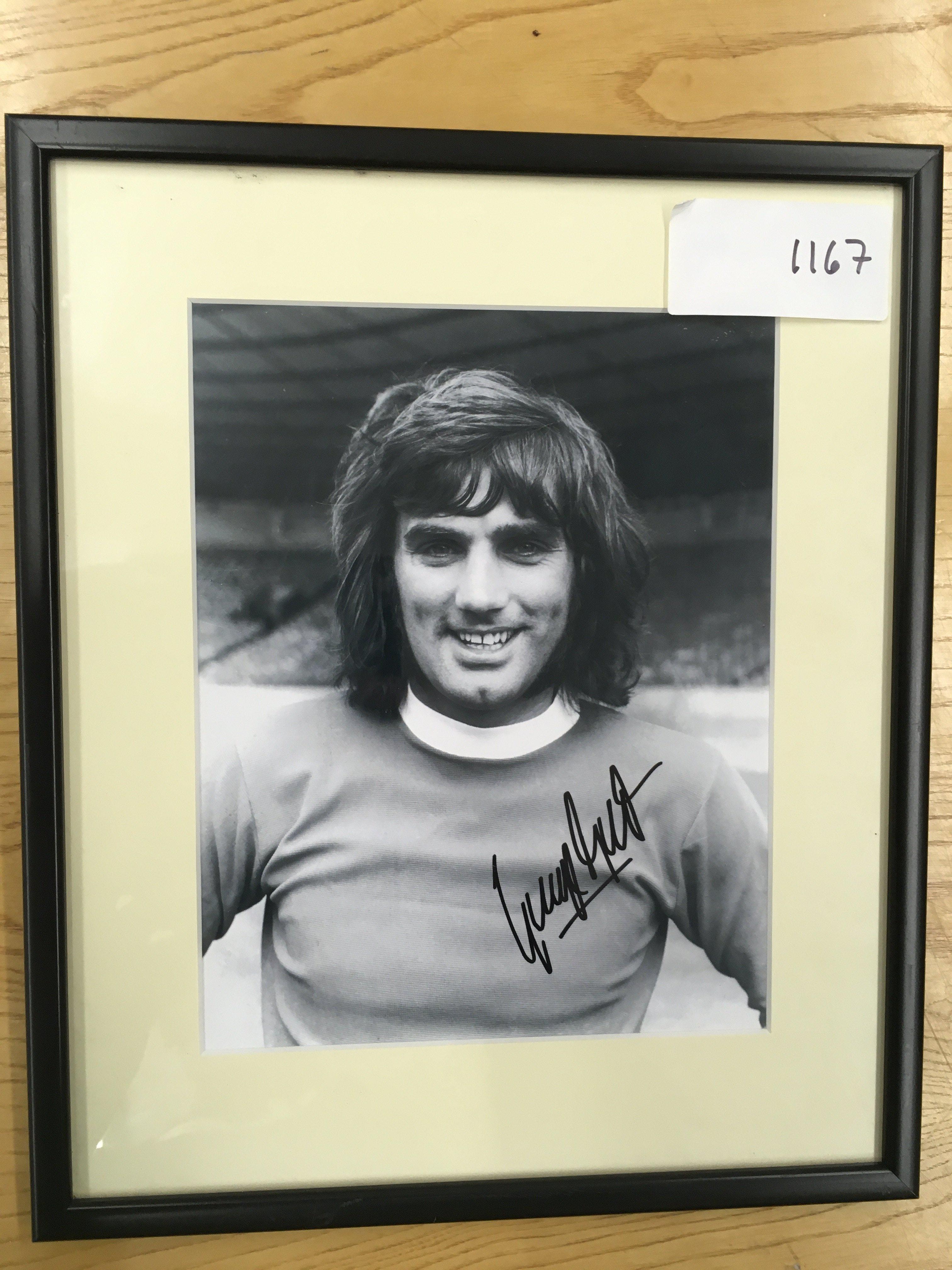 George Best Manchester United Signed Framed Photo: Black and white photo of Best hand signed without dedication and nicely framed. Rear has Coa attached signed by member of the UACC.