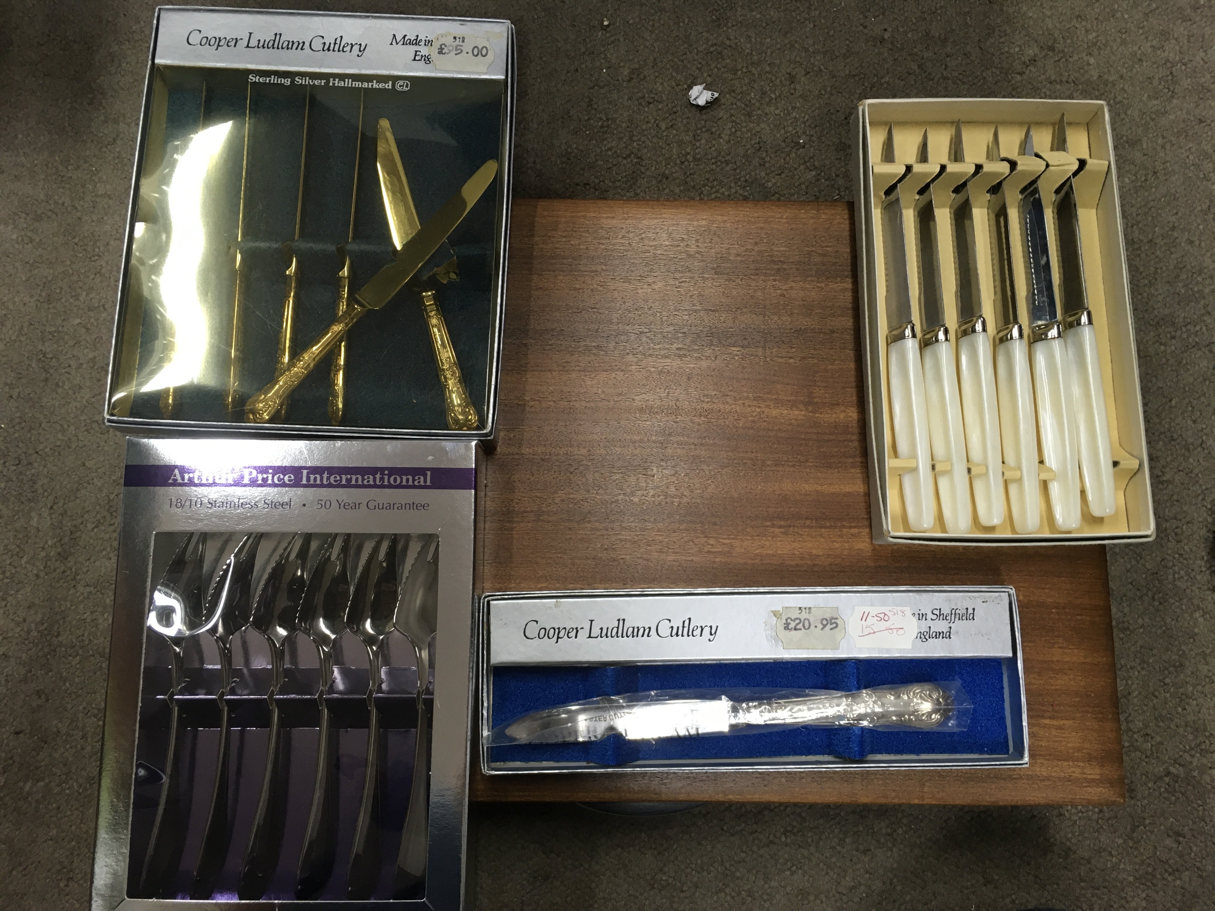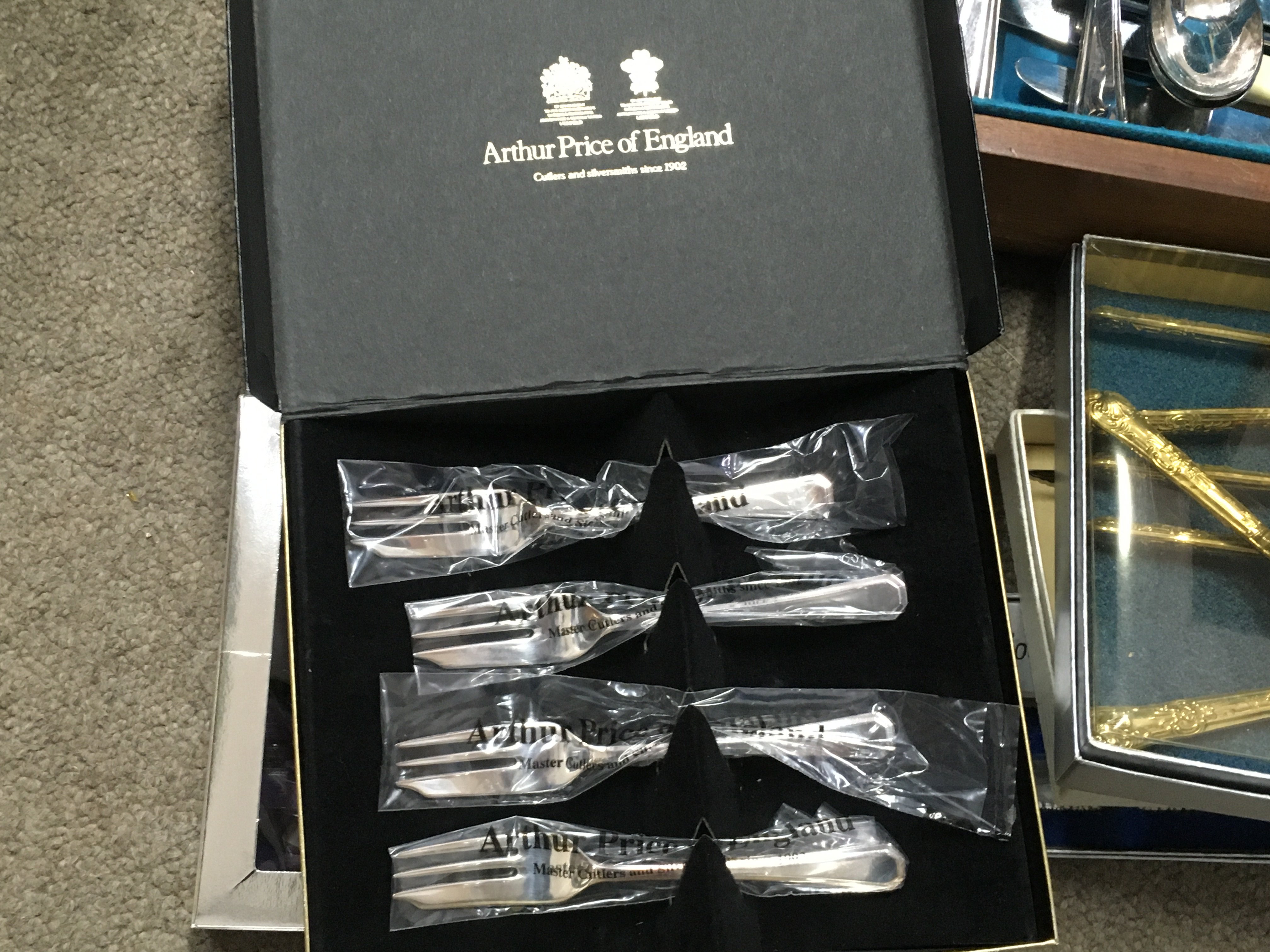 A canteen of Alex Clark cutlery, boxed Arthur Price forks etc. This lot cannot be posted