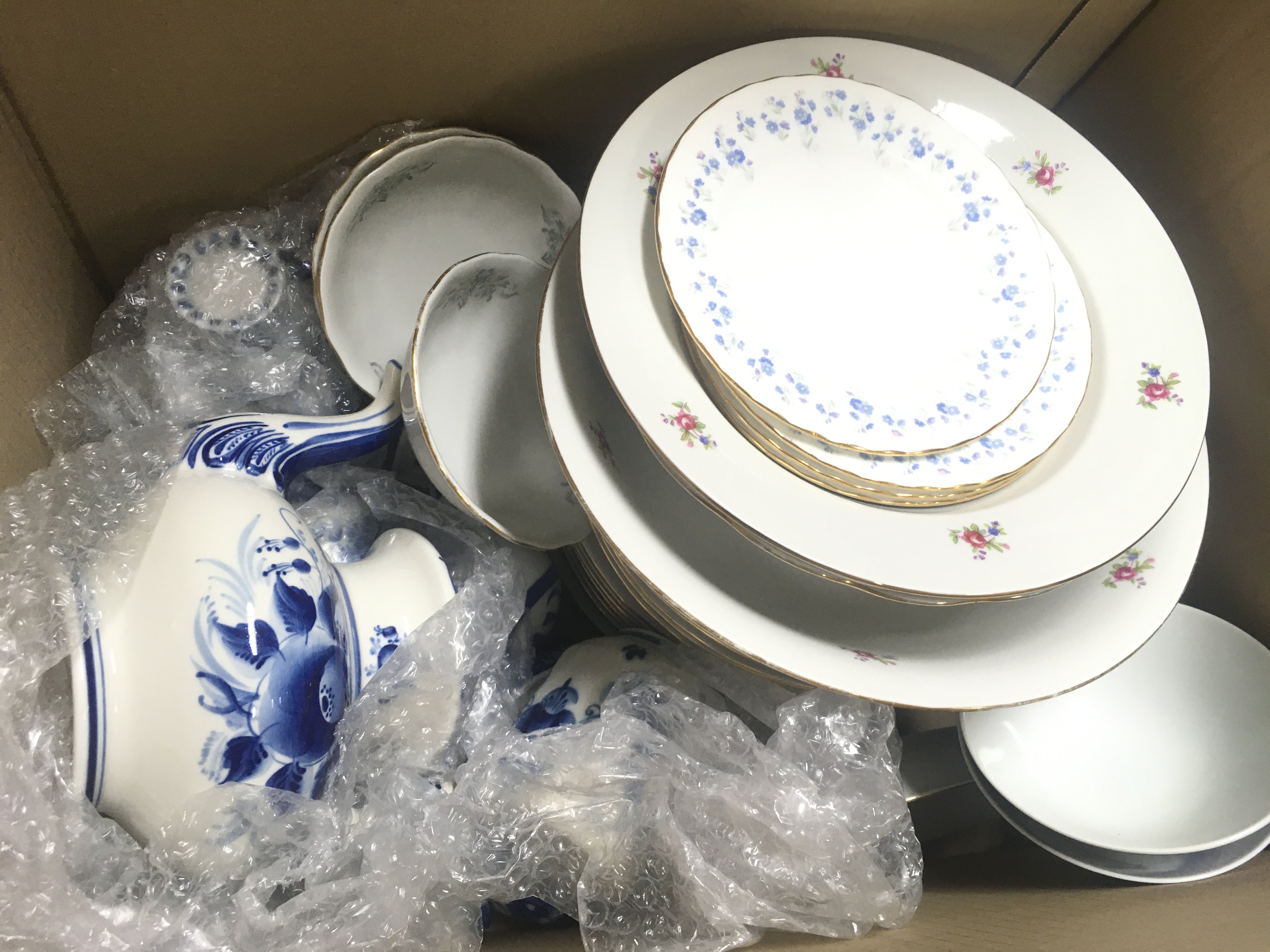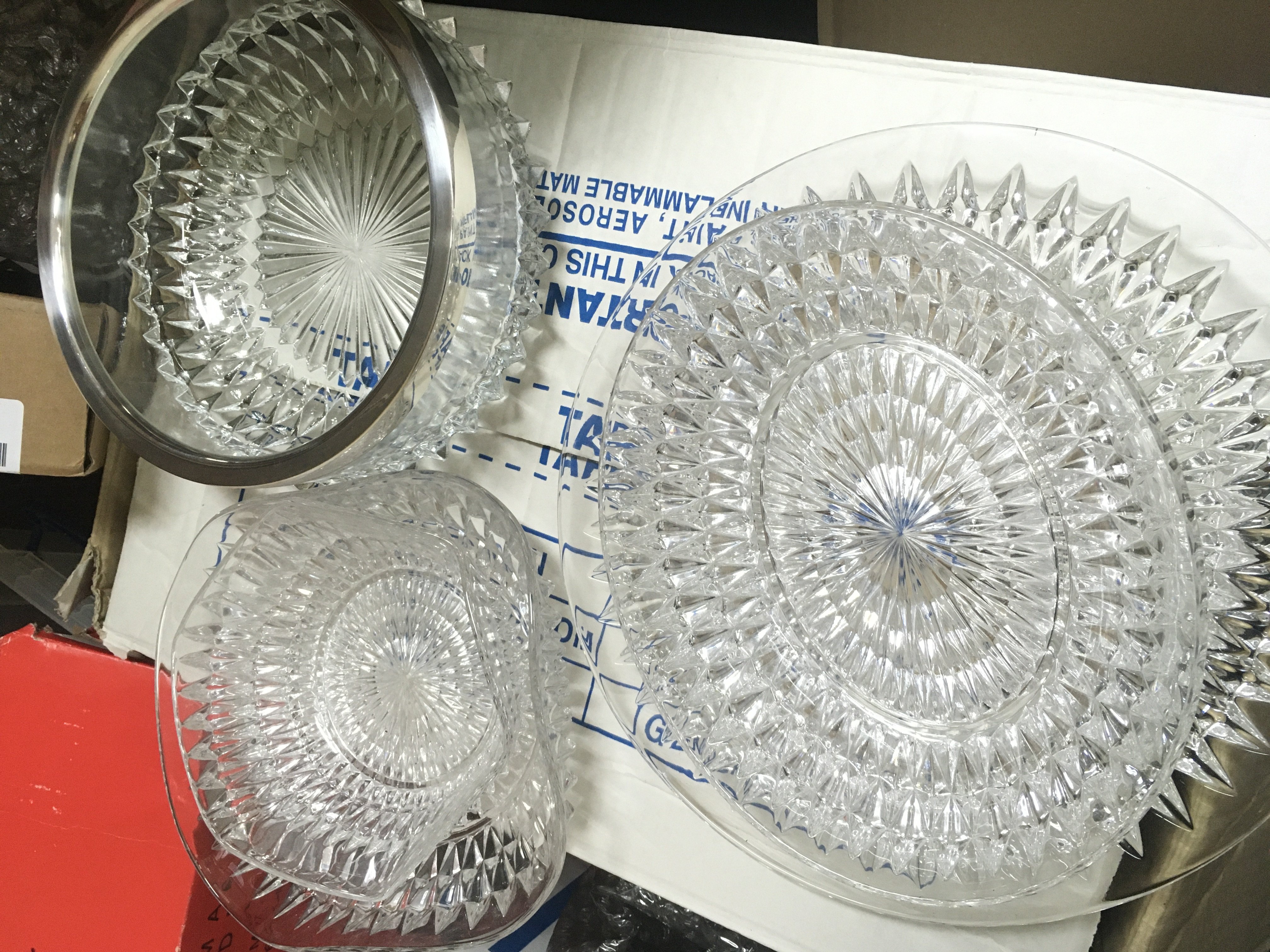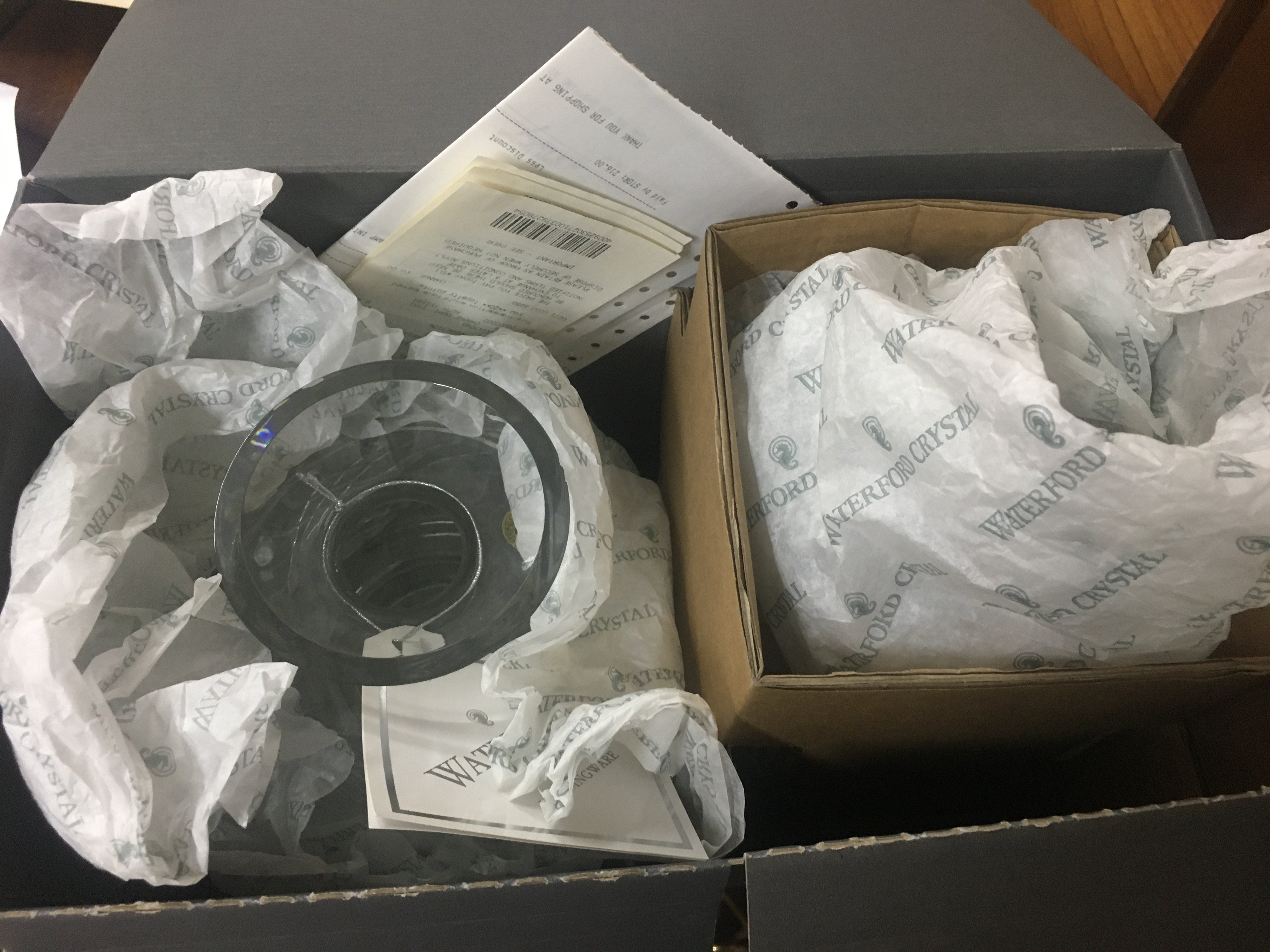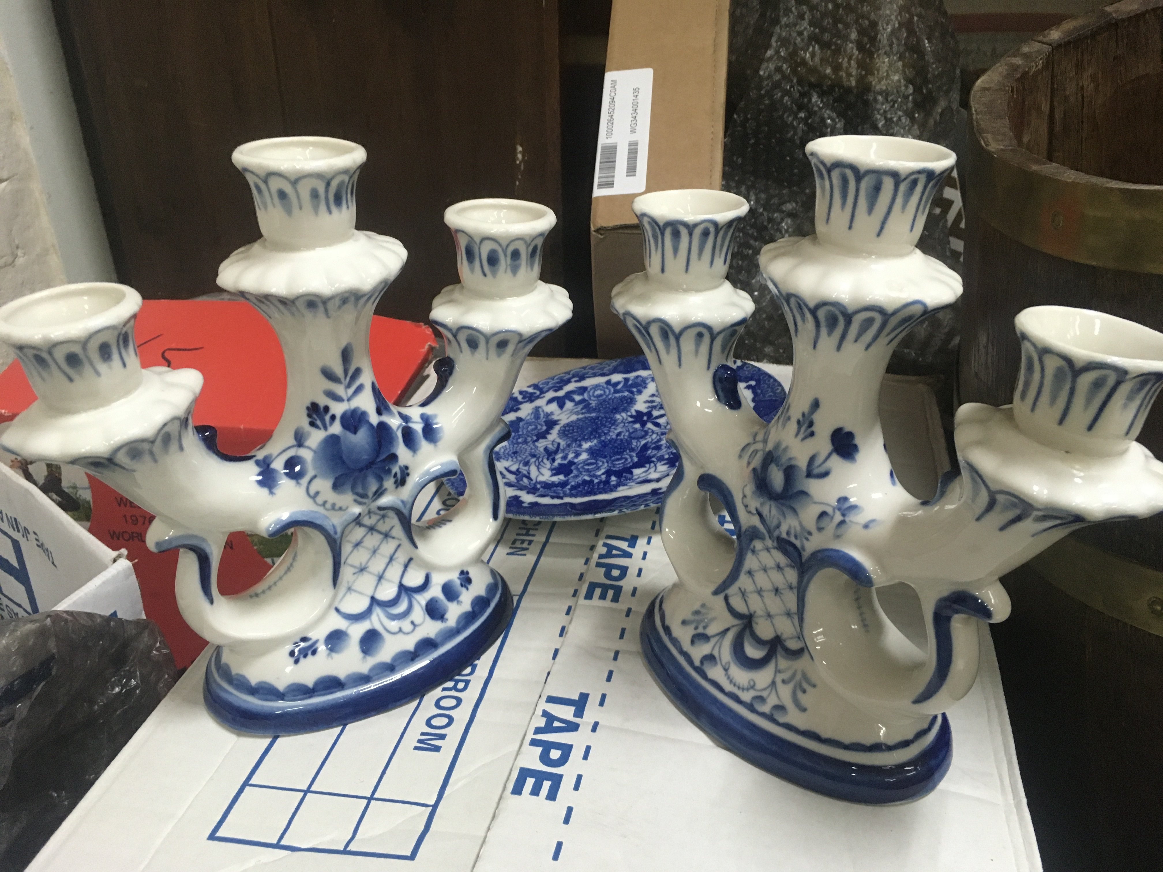 A collection of various ceramics including an Italian dish, marble mortar and pestle with carved face design, various cut glass dishes, boxed Aynsley china vase, Russian porcelain candelabras, large collection of plates including Royal Albert memory lane, boxed Waterford Crystal etc This lot cannot be posted