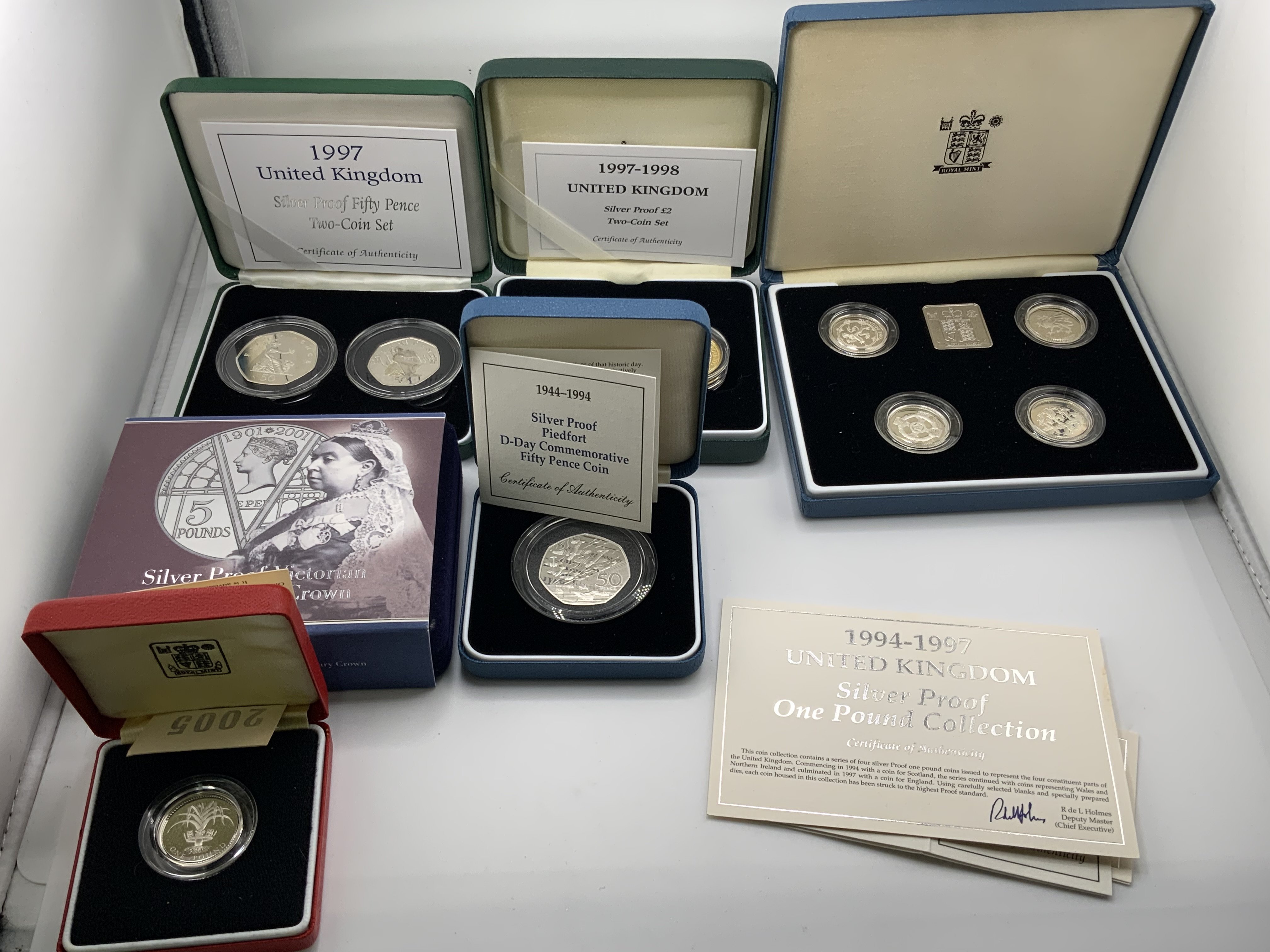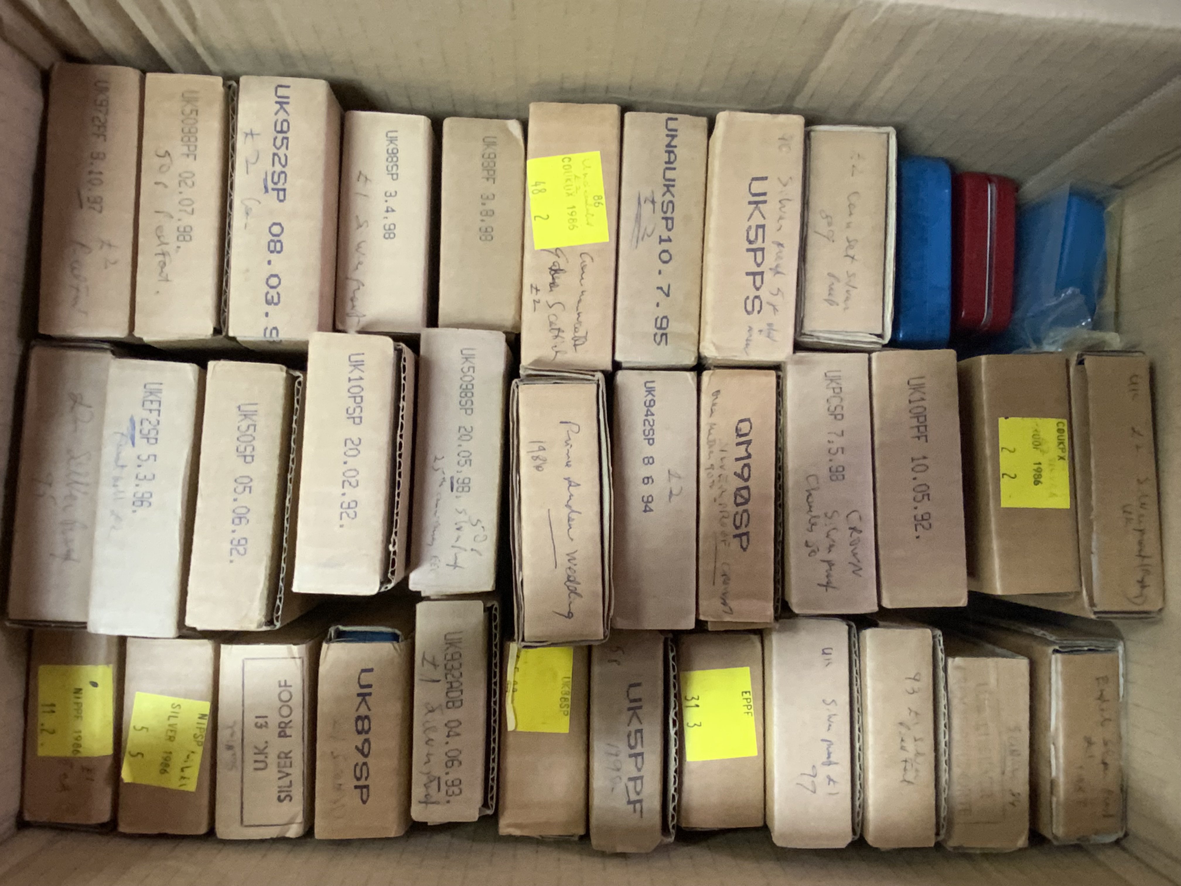 A very large collection of silver proof and Piedfort example cased Royal Mint British coinage. 44 individual boxes.