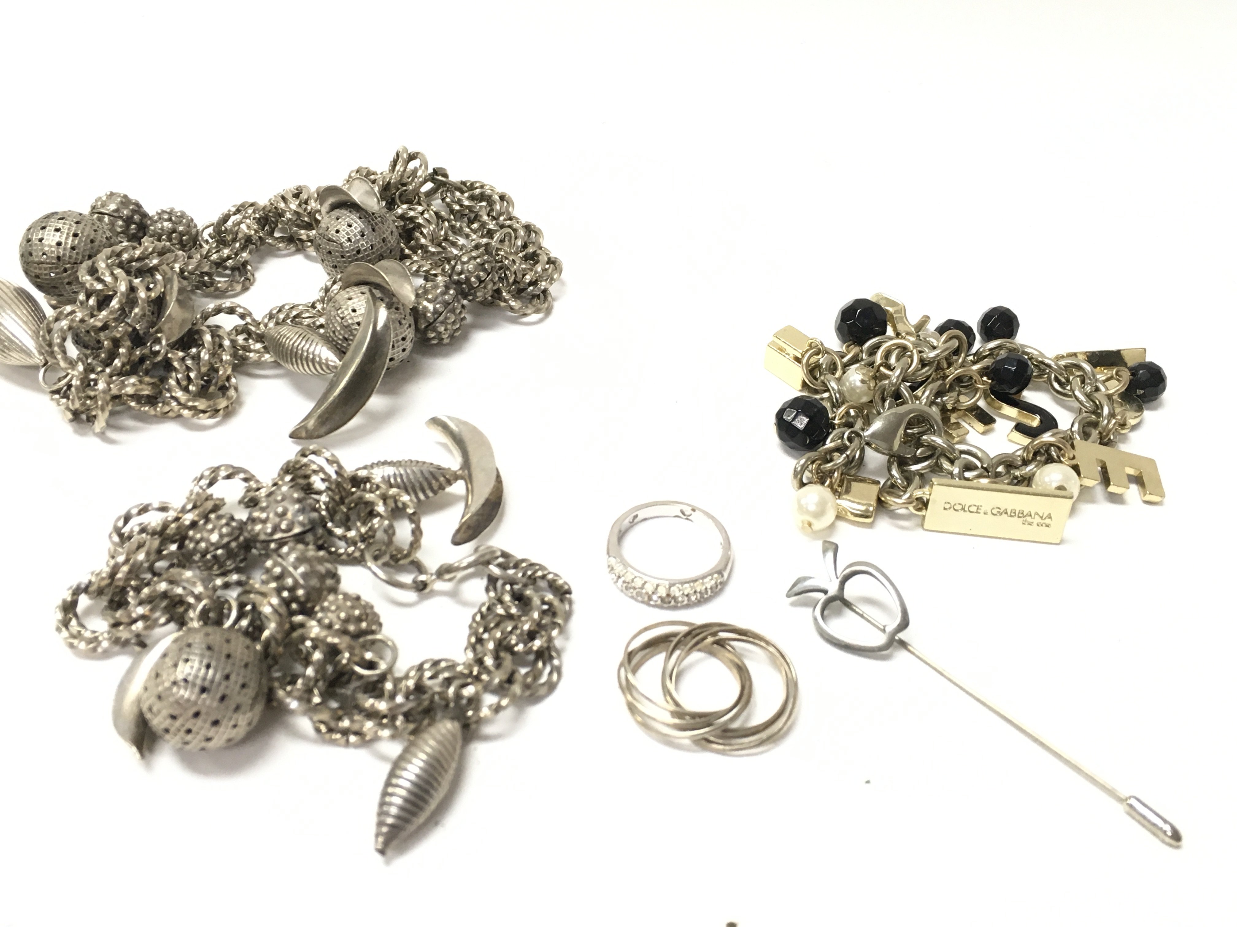 A white metal bracelet and necklace, a silver ring and a Dolce Gabbana bracelet