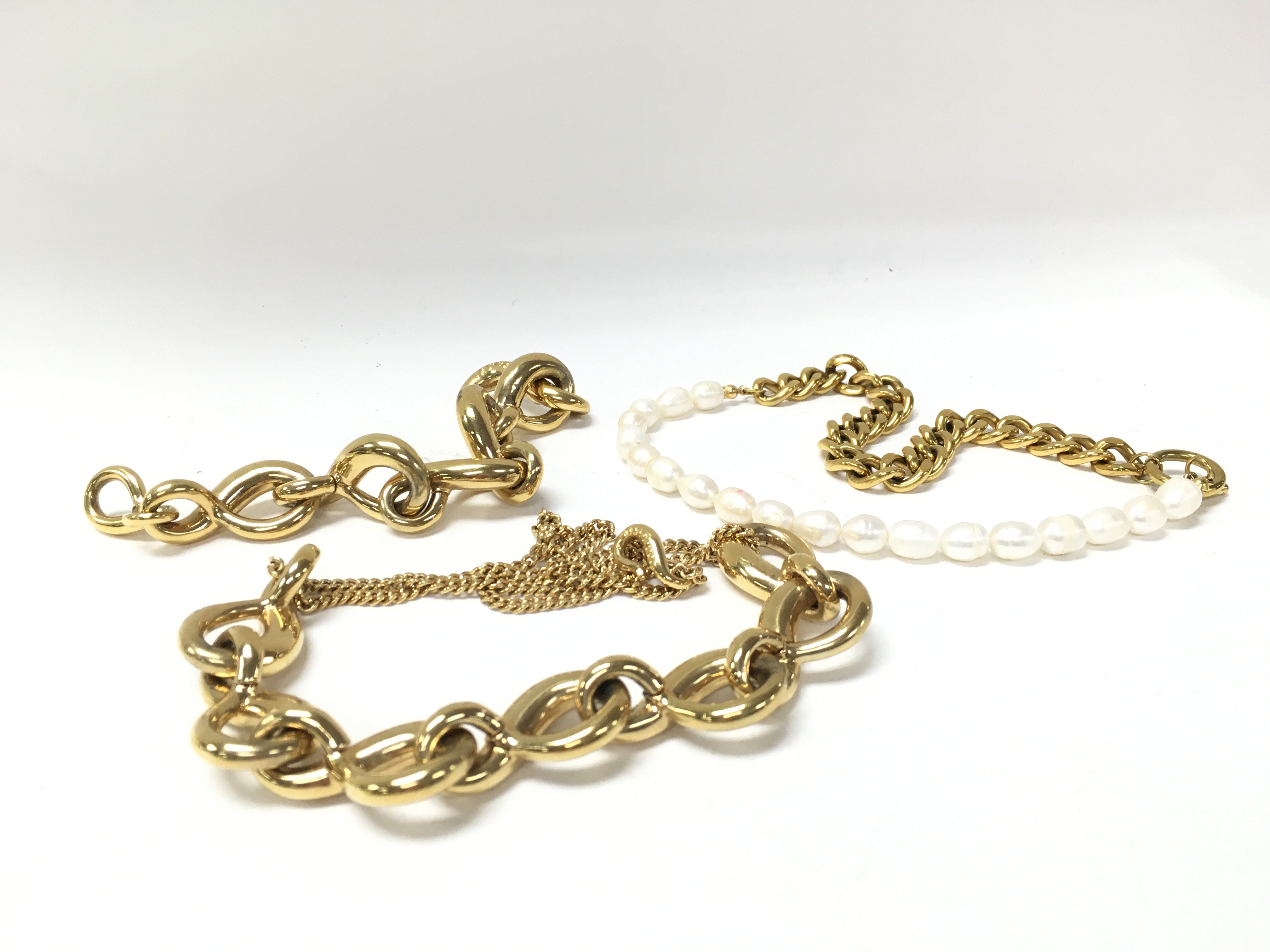 A ted baker necklace, ted baker bracelet and an unmarked pearl necklace. Postage category a