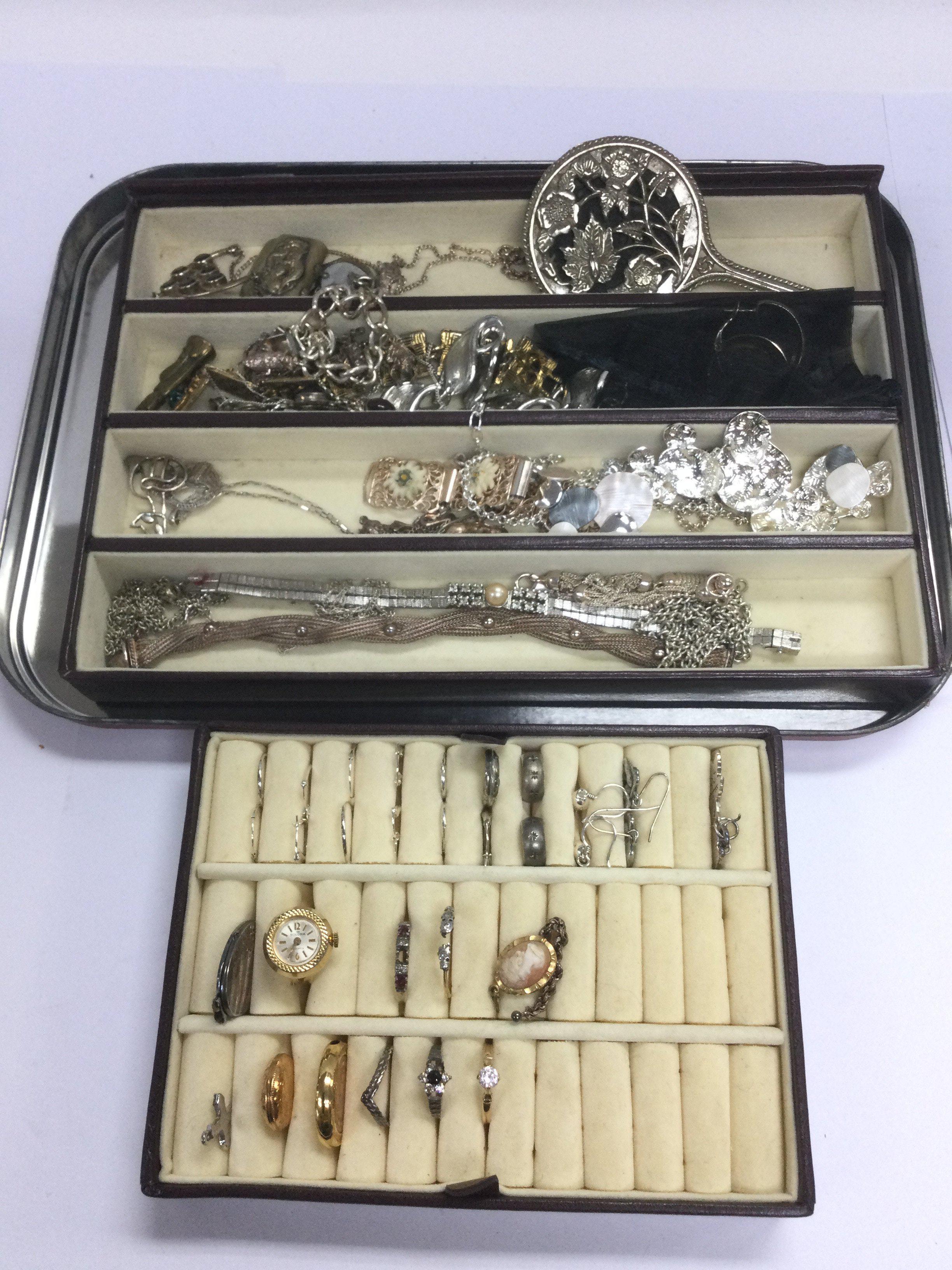 Two gold rings and a collection of silver and costume jewellery. Shipping category B.