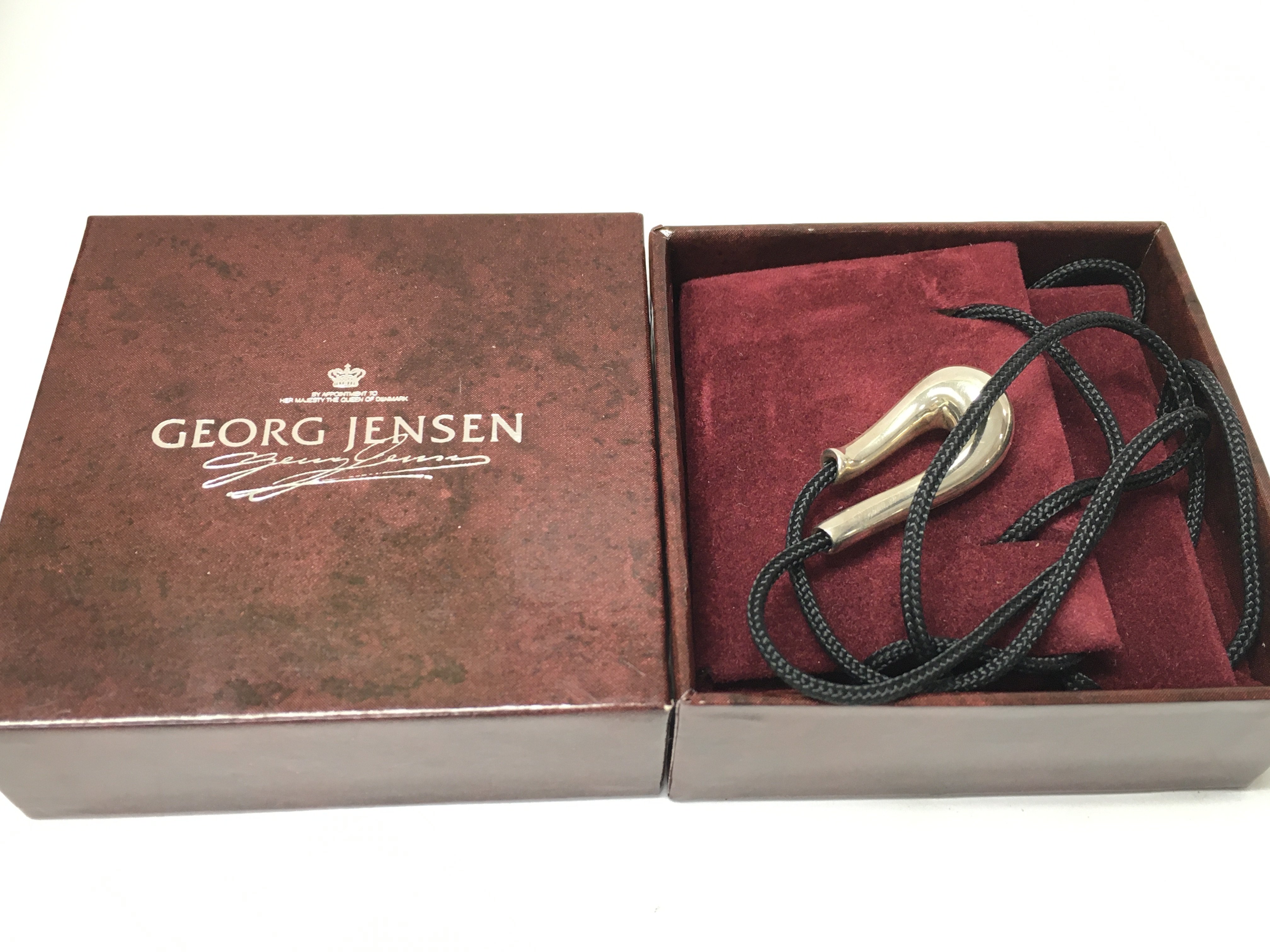 A Georg Jensen boxed silver hallmarked necklace. Postage category a