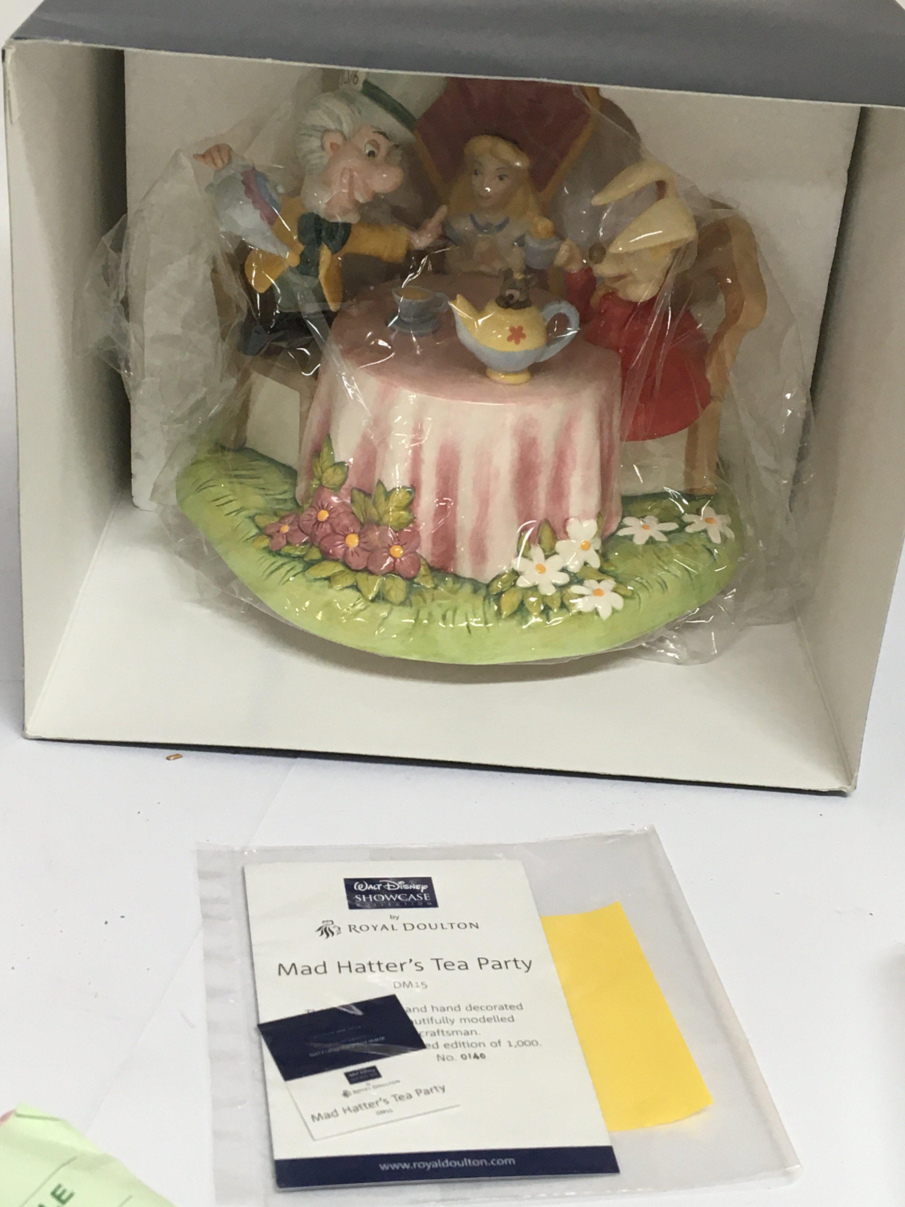 A Royal Doulton boxed as new Disney Showcase figure group The Mad Hatters Tea Party. limited edition 140/1000. With COA.