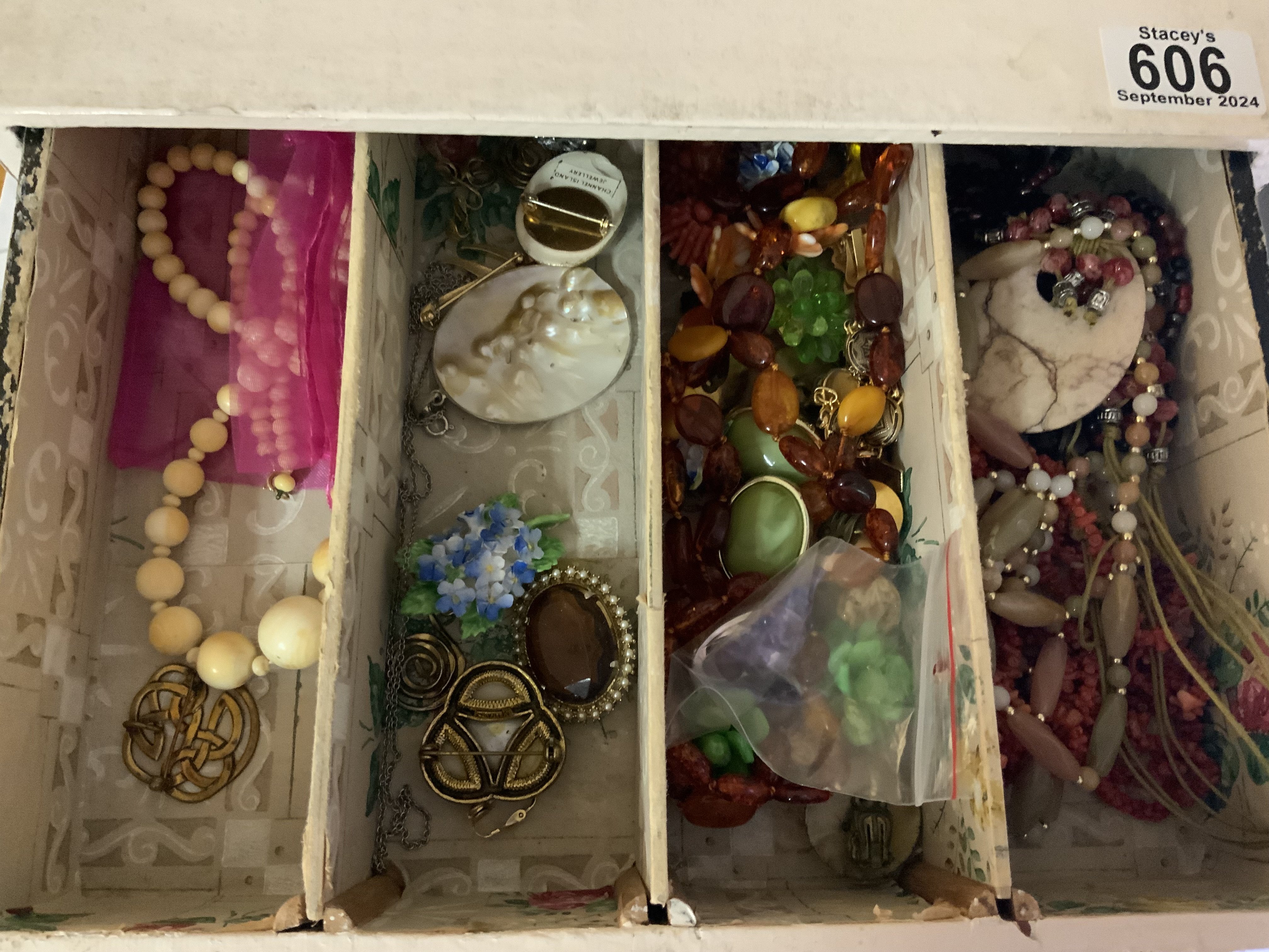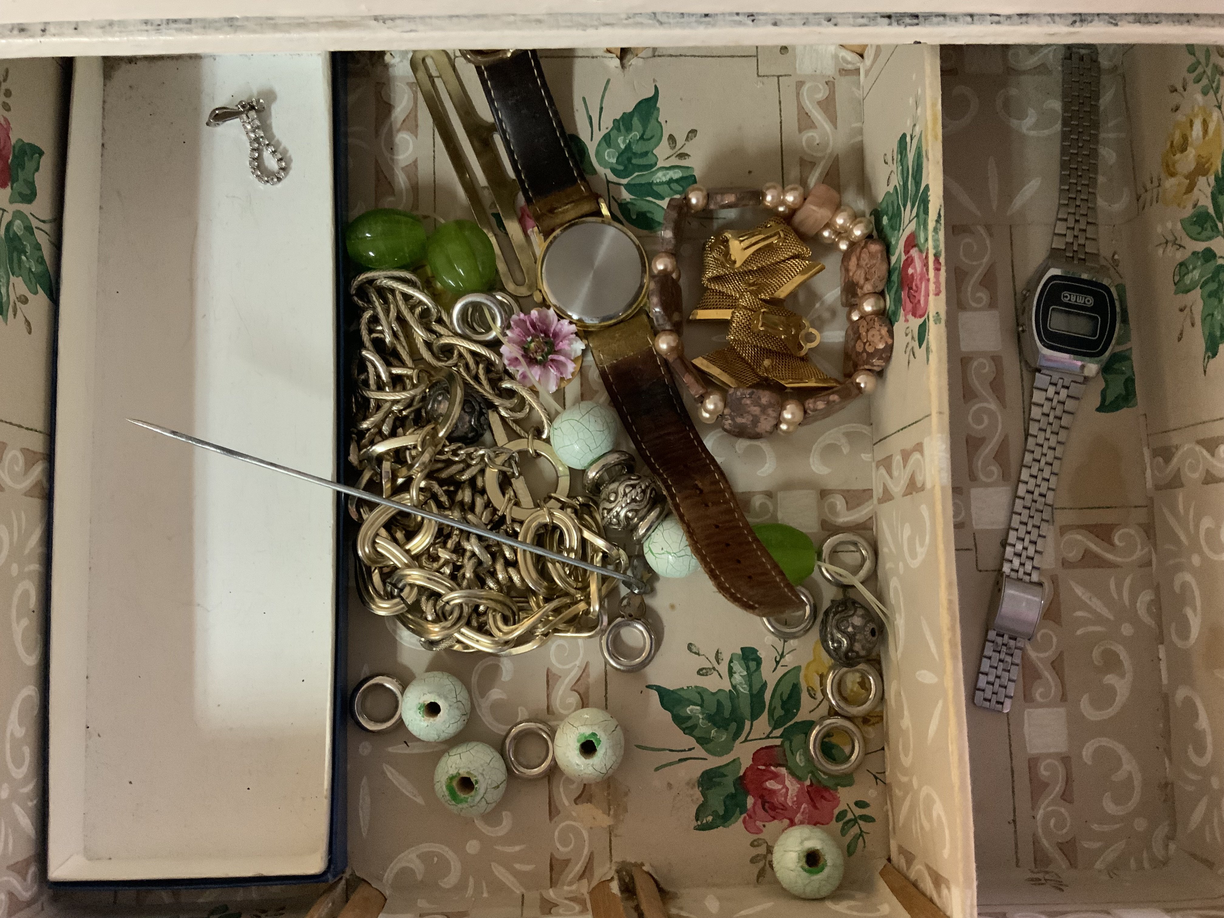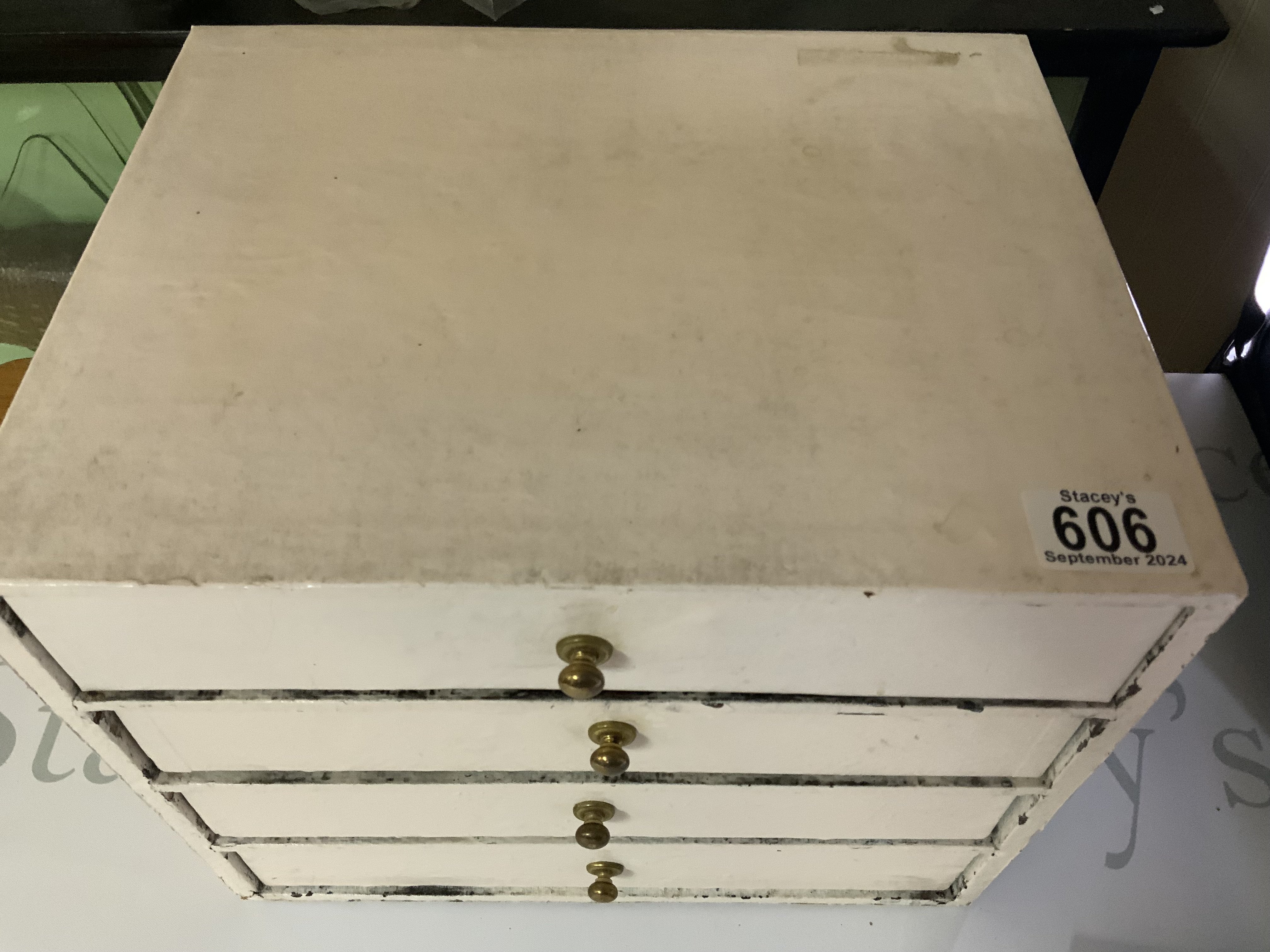A 4 drawer jewellery chest and costume jewellery contents. (C)