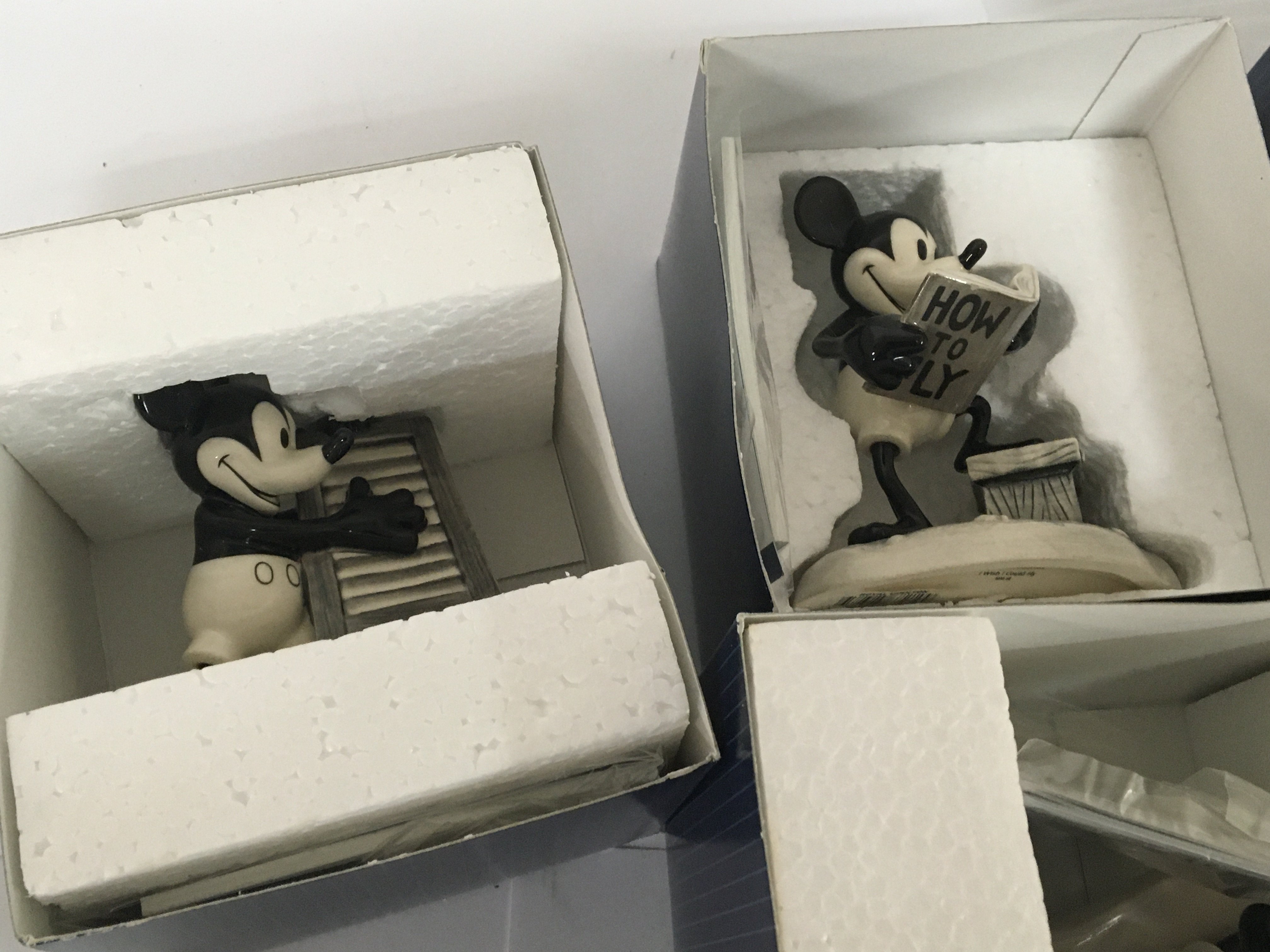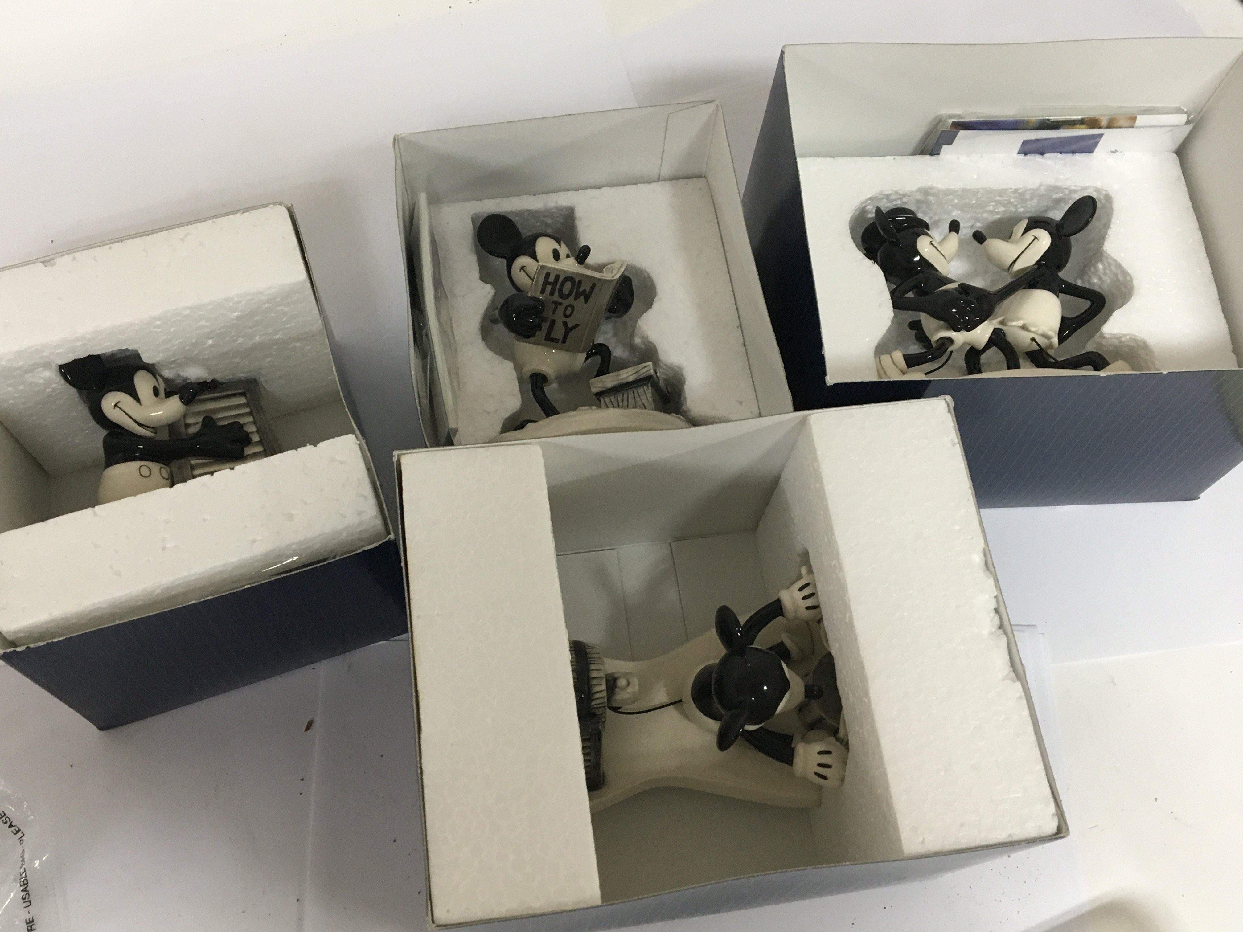 Four boxed Disney Show Case figures Mickeys one man band all in black and white glaze with limited edition COA. (4)