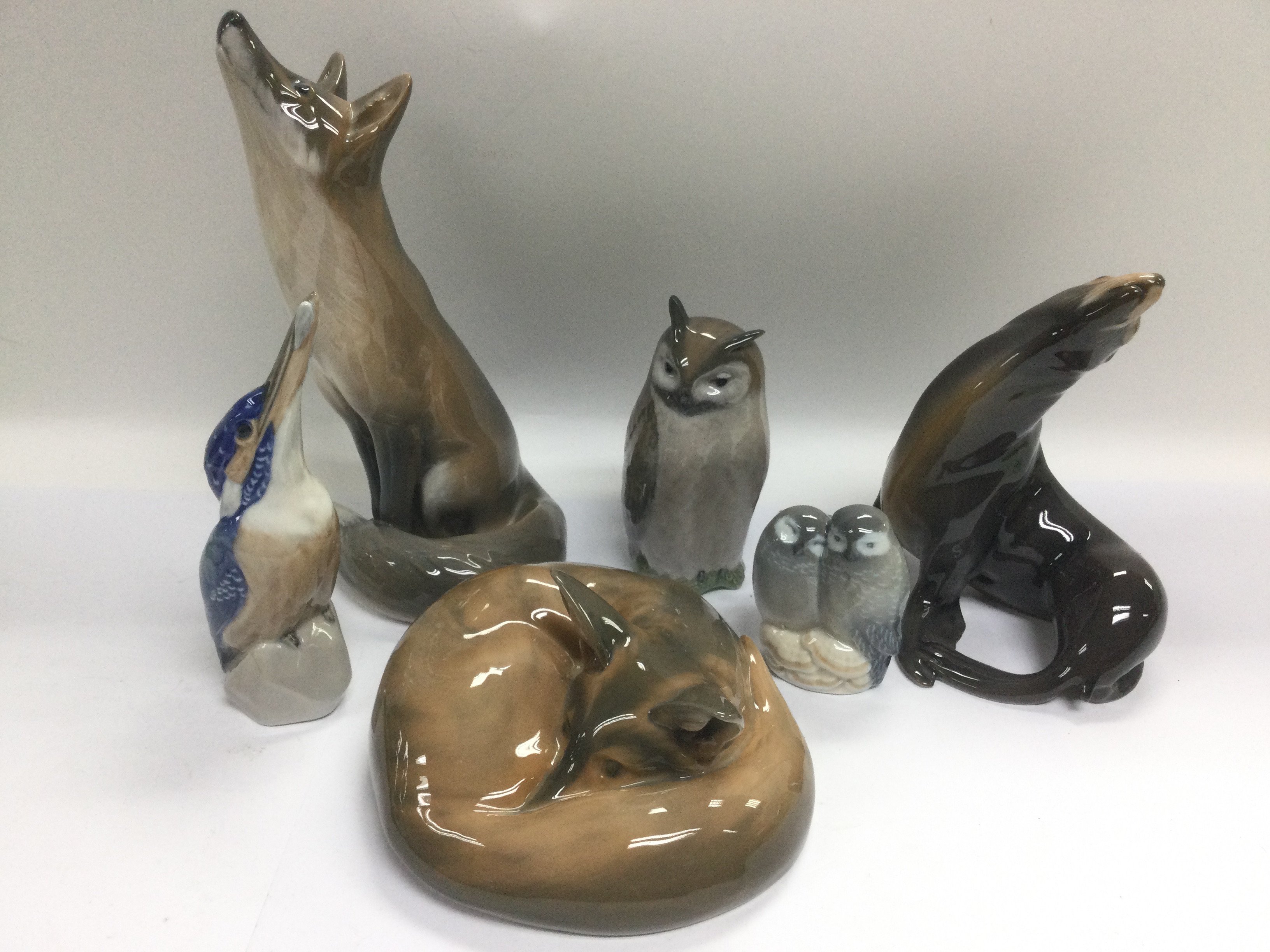 Six Royal Copenhagen figures of animals. Shipping category D.