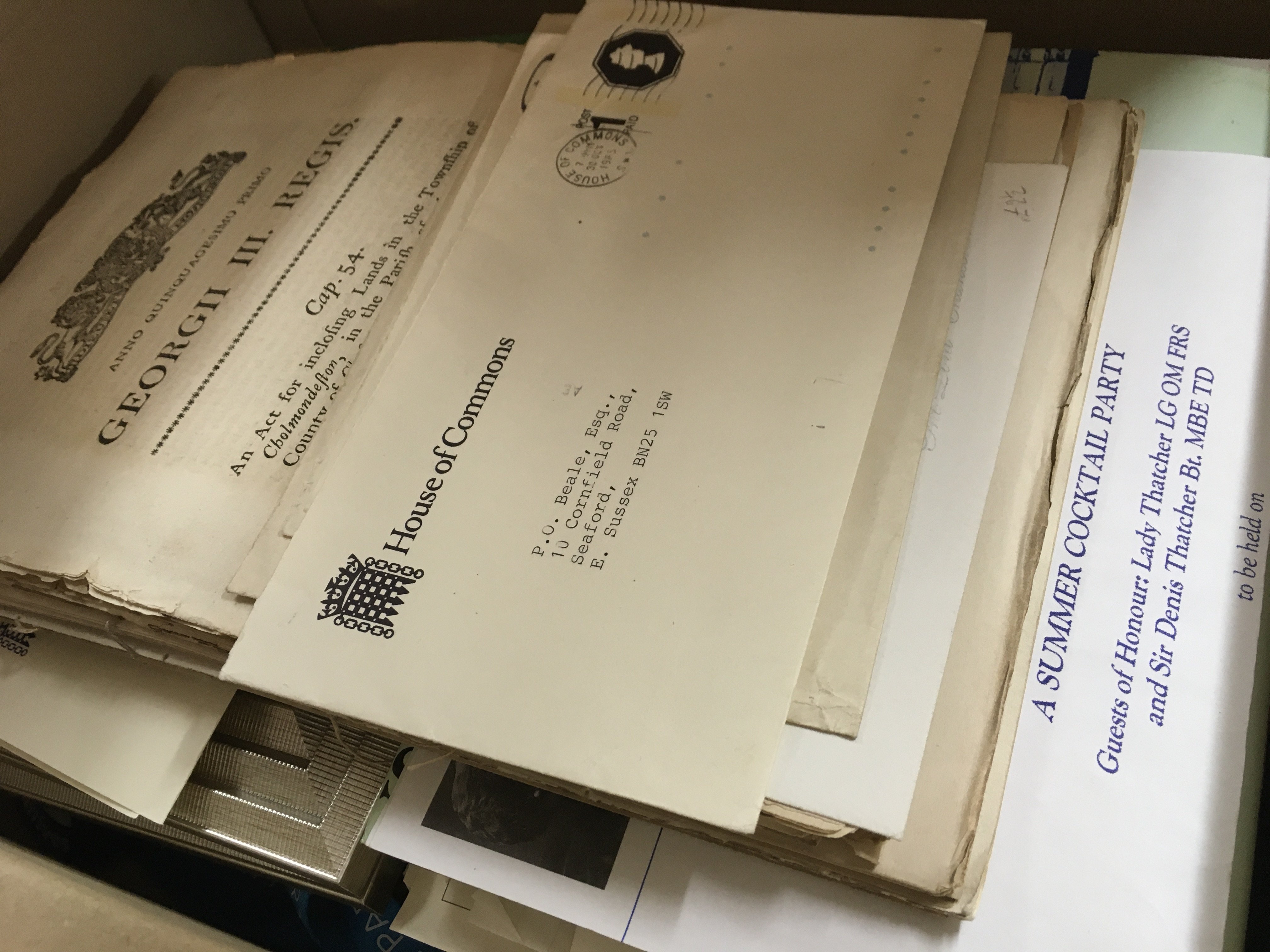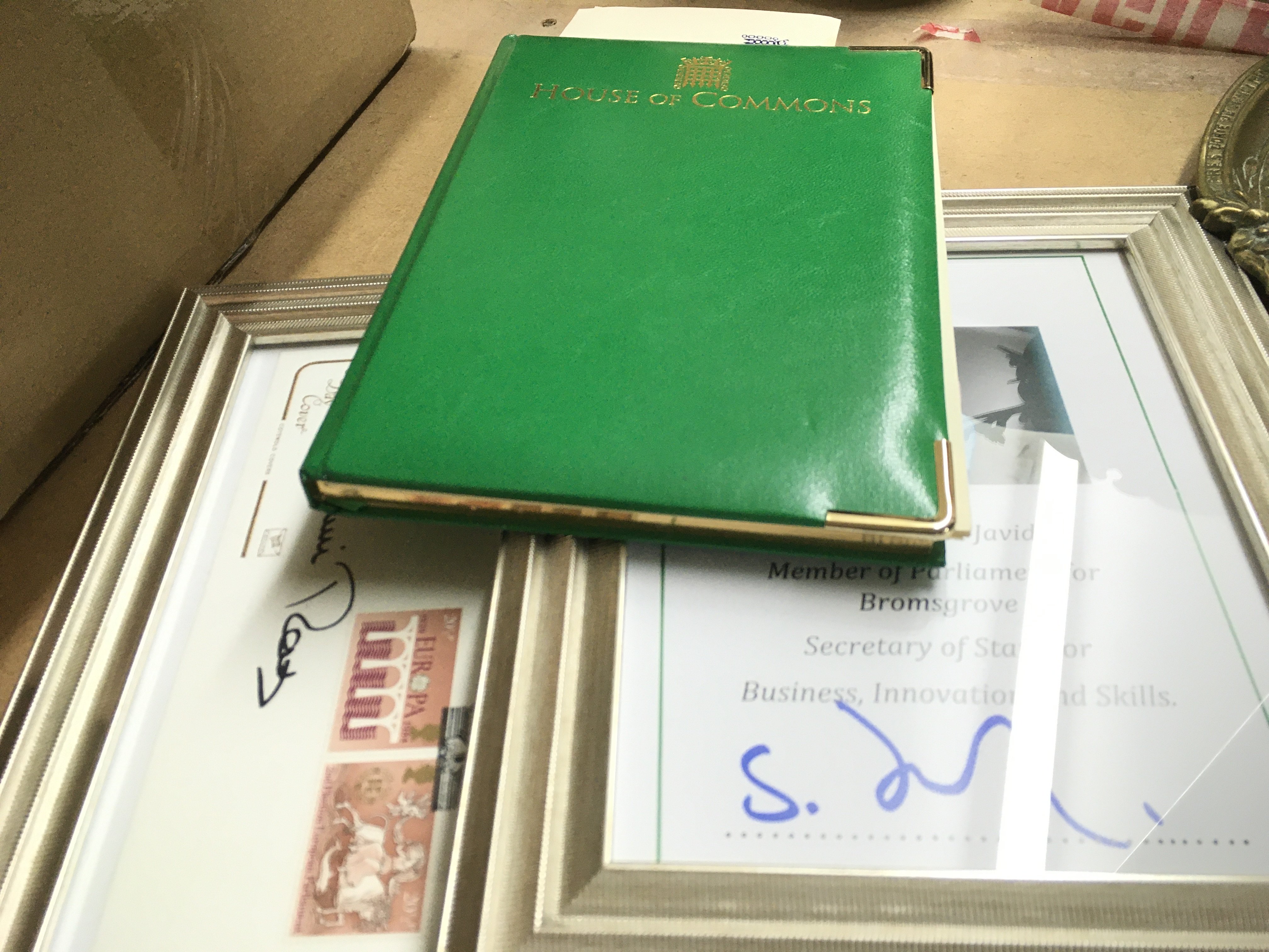 House of Commons miscellaneous items including a signed book from the Members Cloakroom, various acts of parliament, signed photos etc