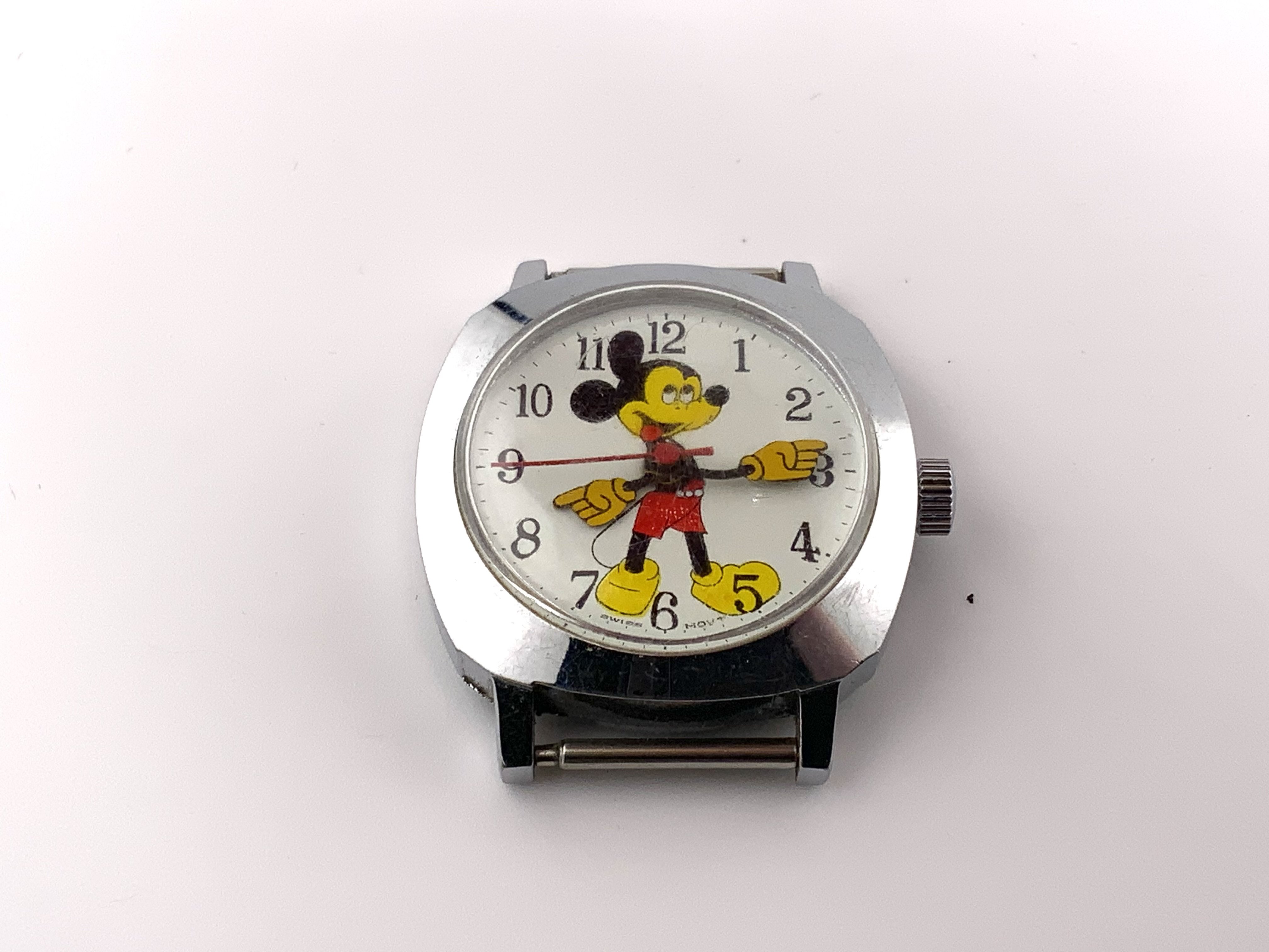A vintage Mickey Mouse wrist watch (A) not in working order.
