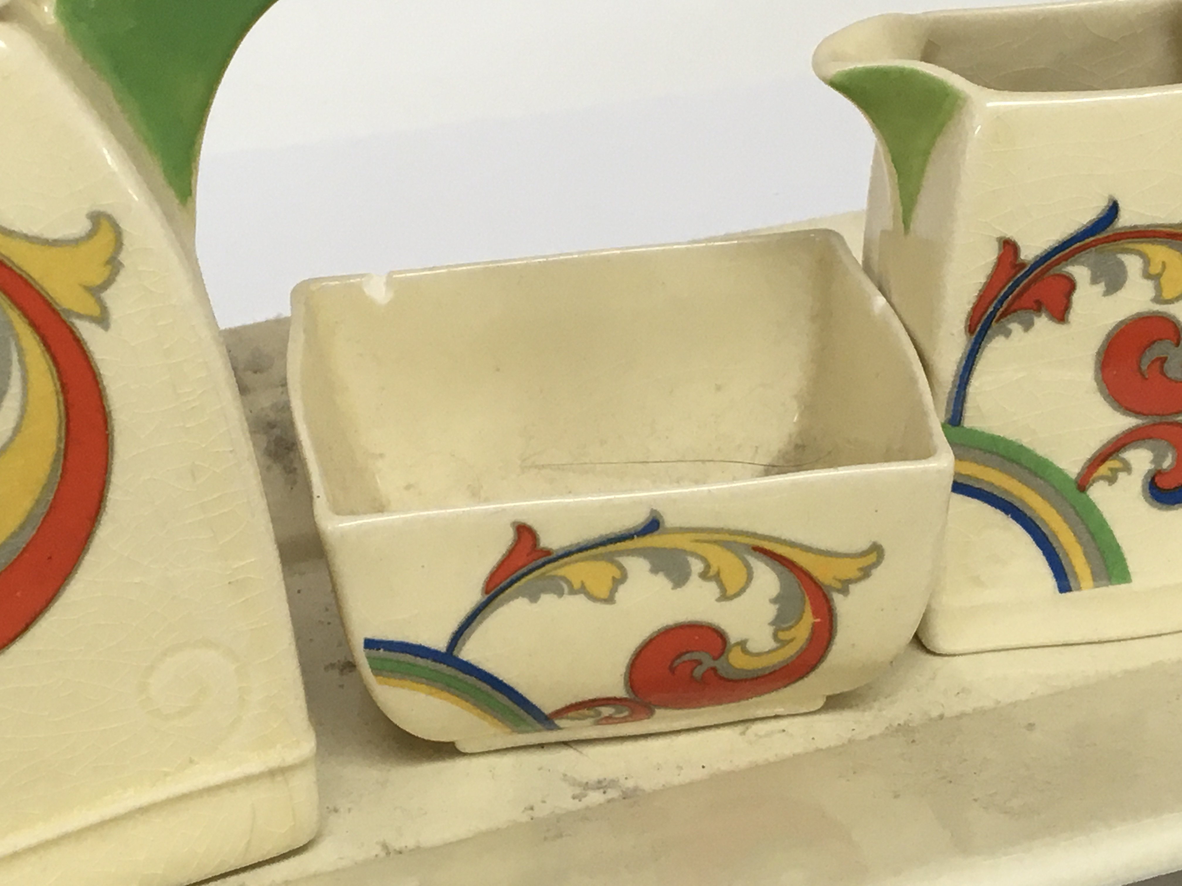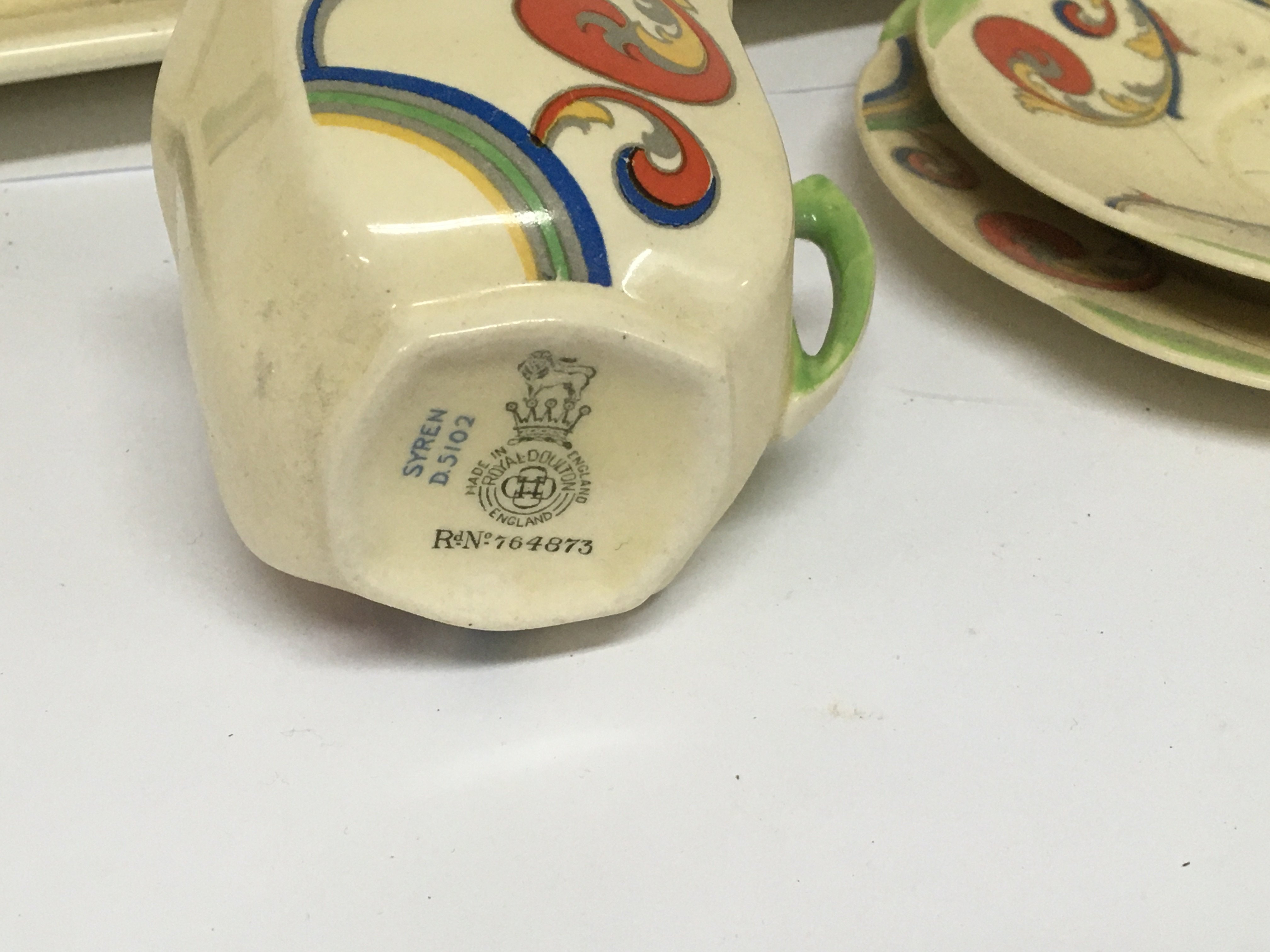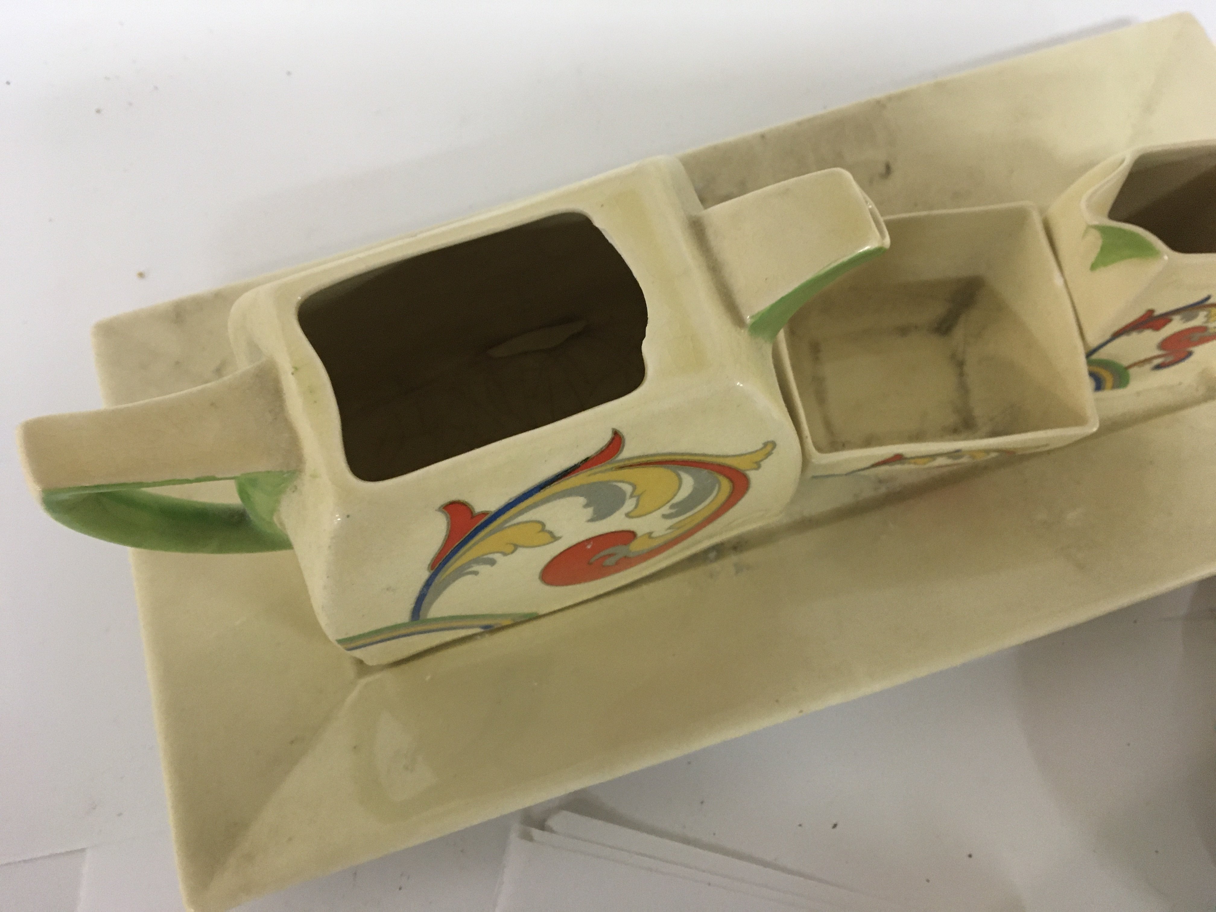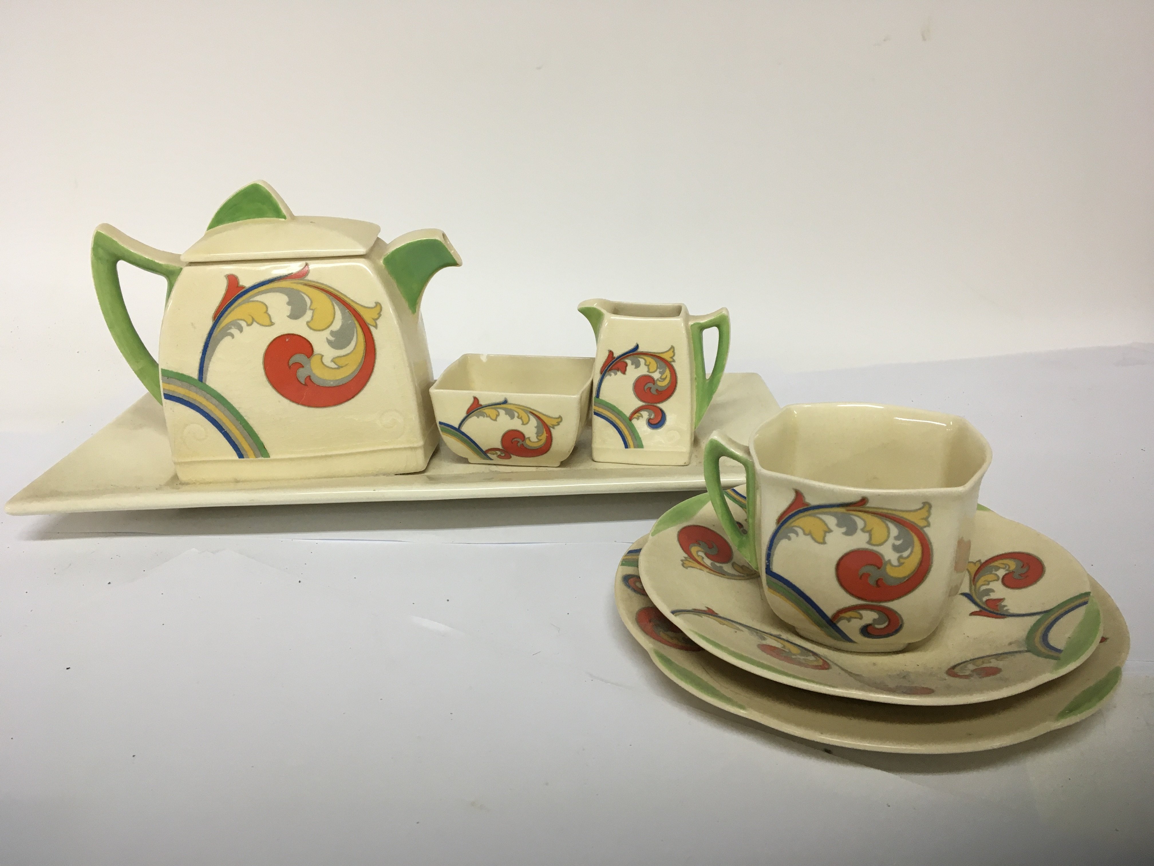 A Royal Doulton Art Deco Ceramic Bachelor tea set some slight damage inside edge of tea pot sugar bowl