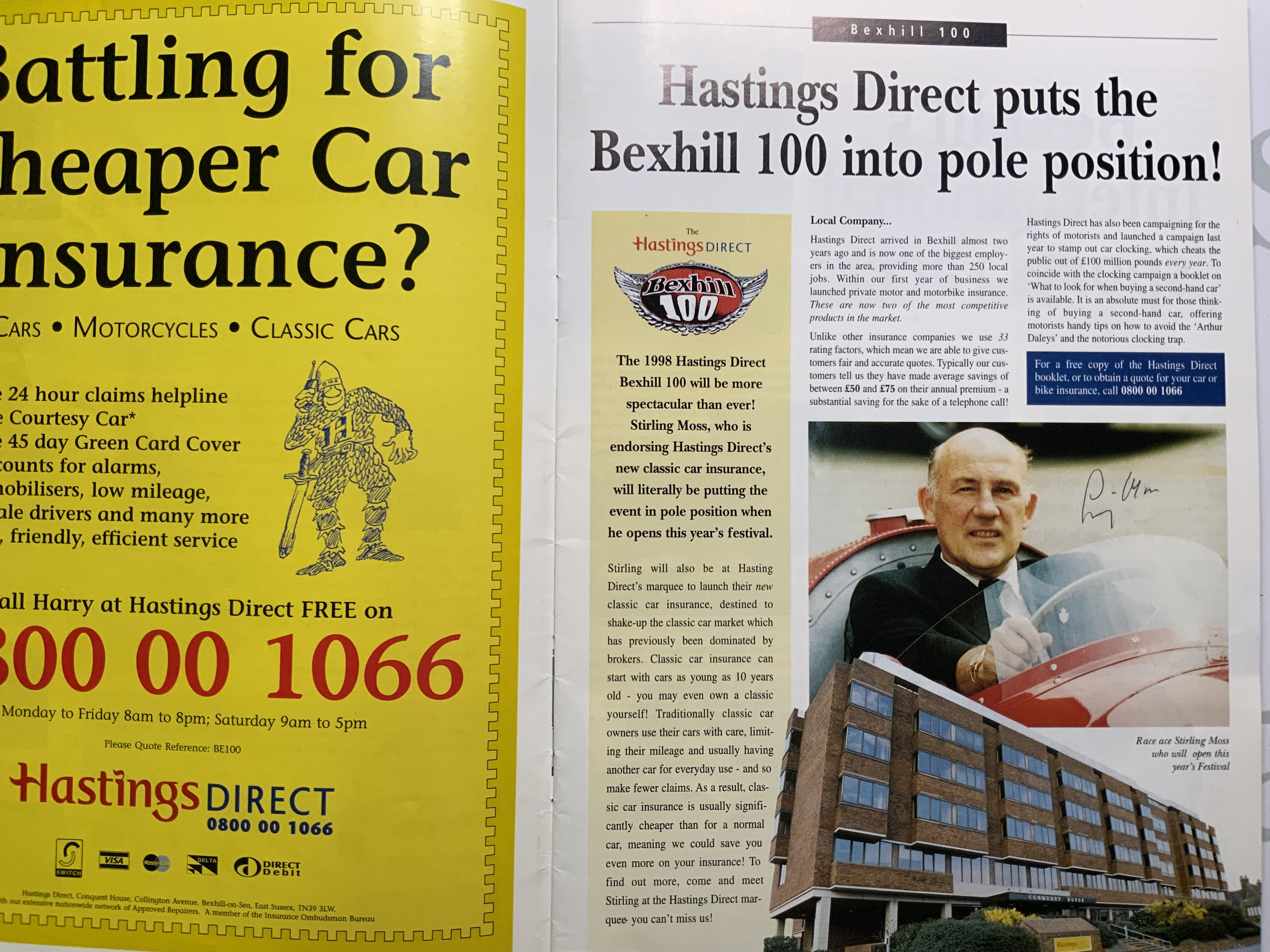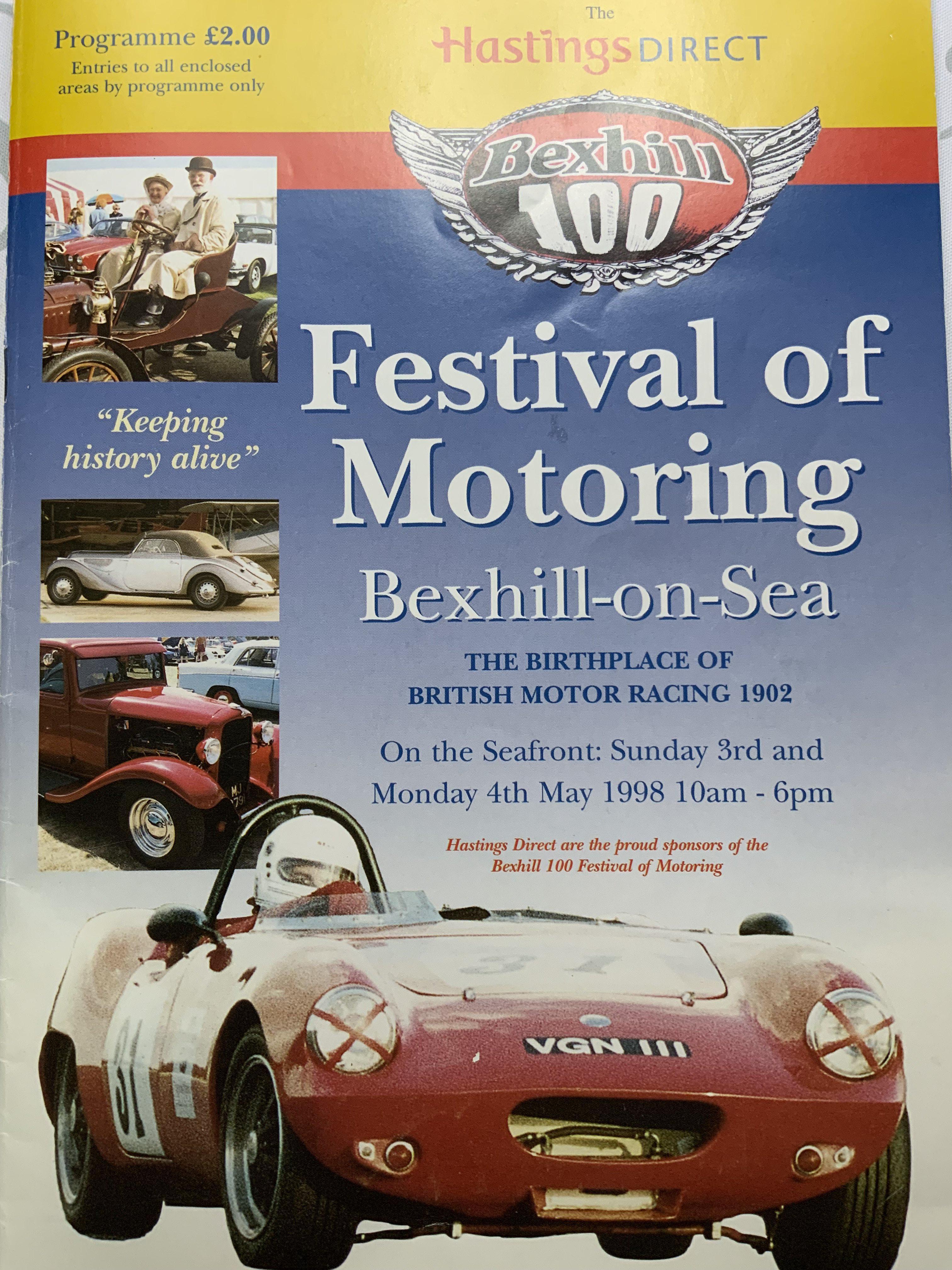 A Festival of Motoring Bexhill 100 brochure with an image signed by Sir Stirling moos on the inside cover.