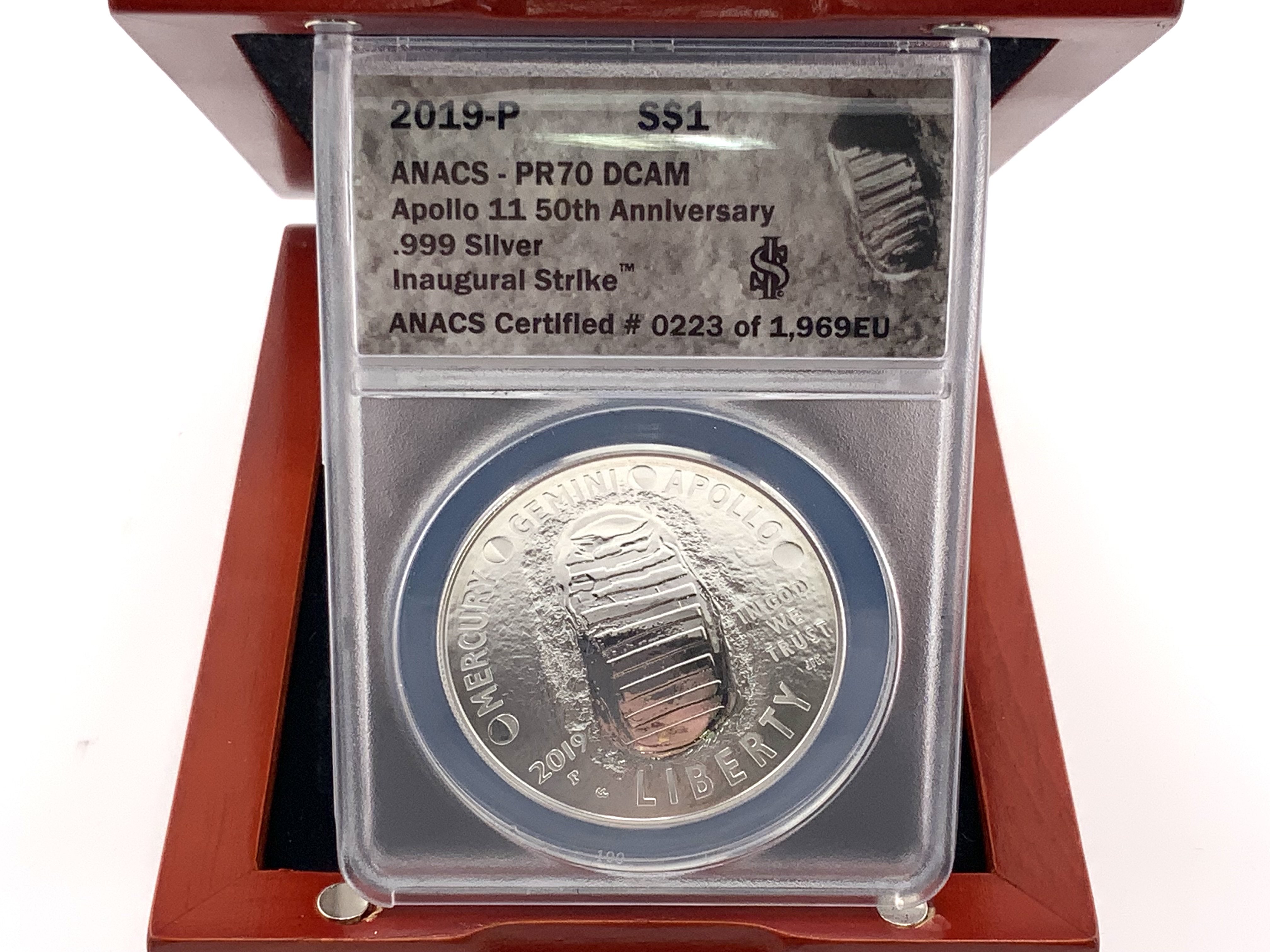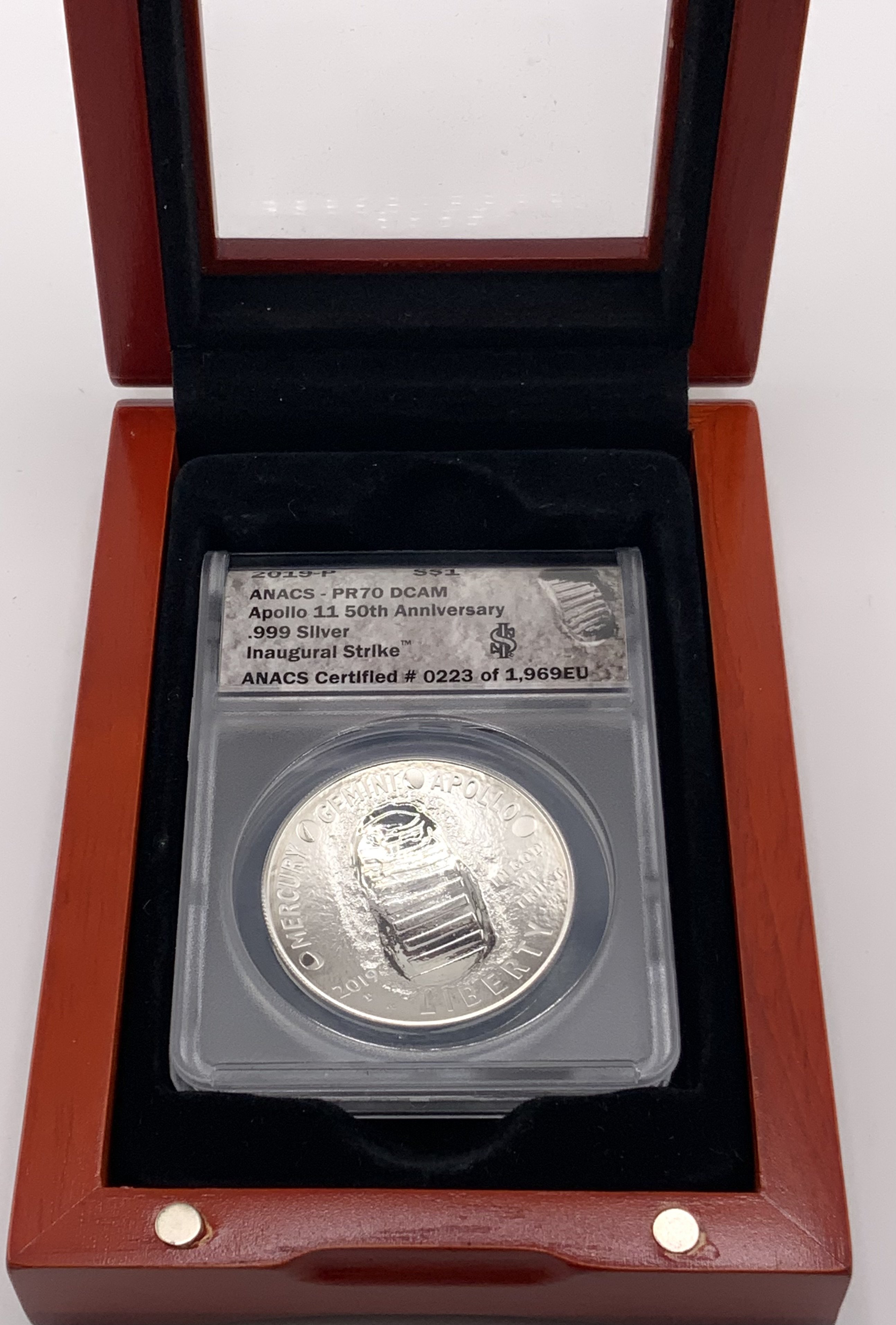 2019 Apollo 11 50th Anniversary fine silver commemorative coin. (A)