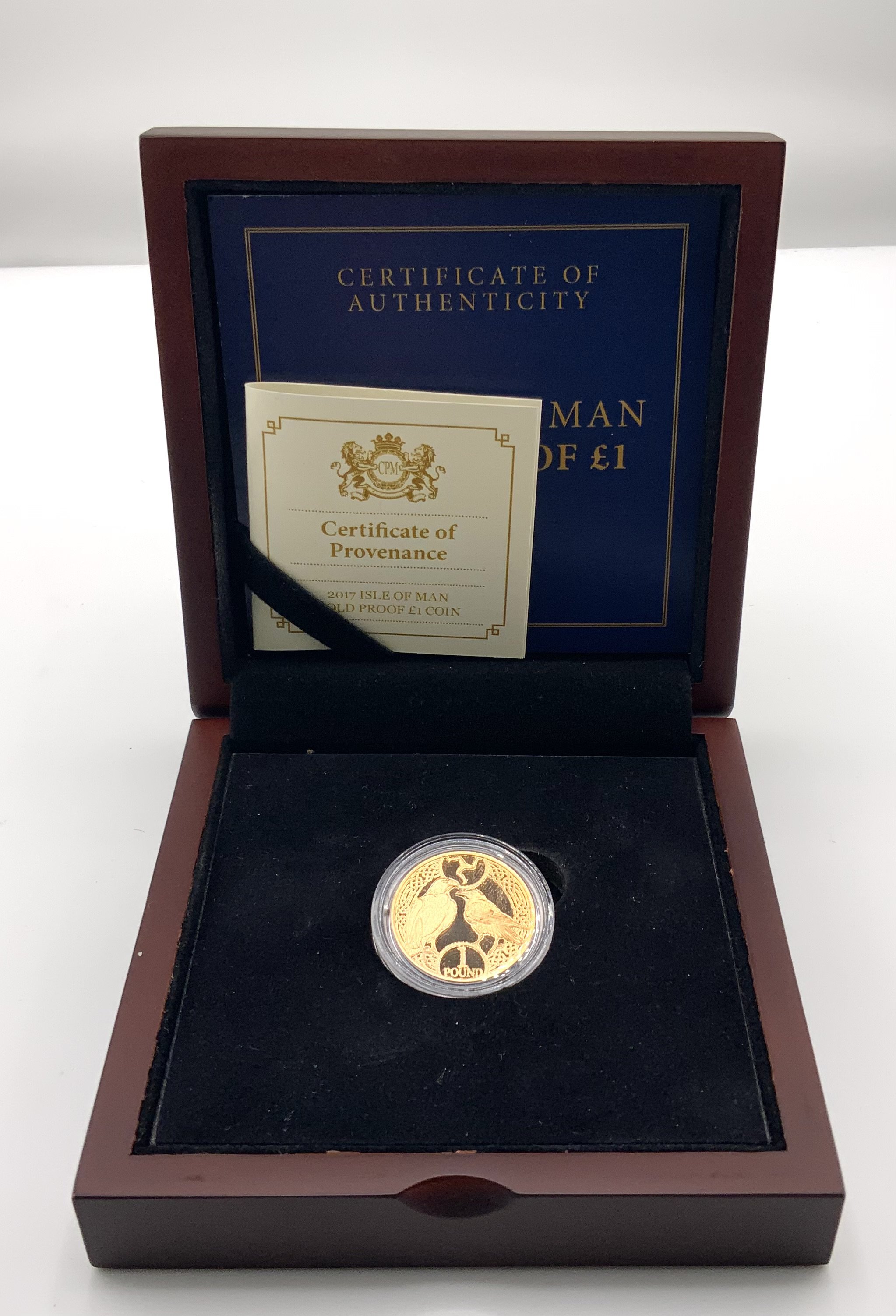 Isle of Man 2017 gold proof one pound coin, limited edition of 495. (A)