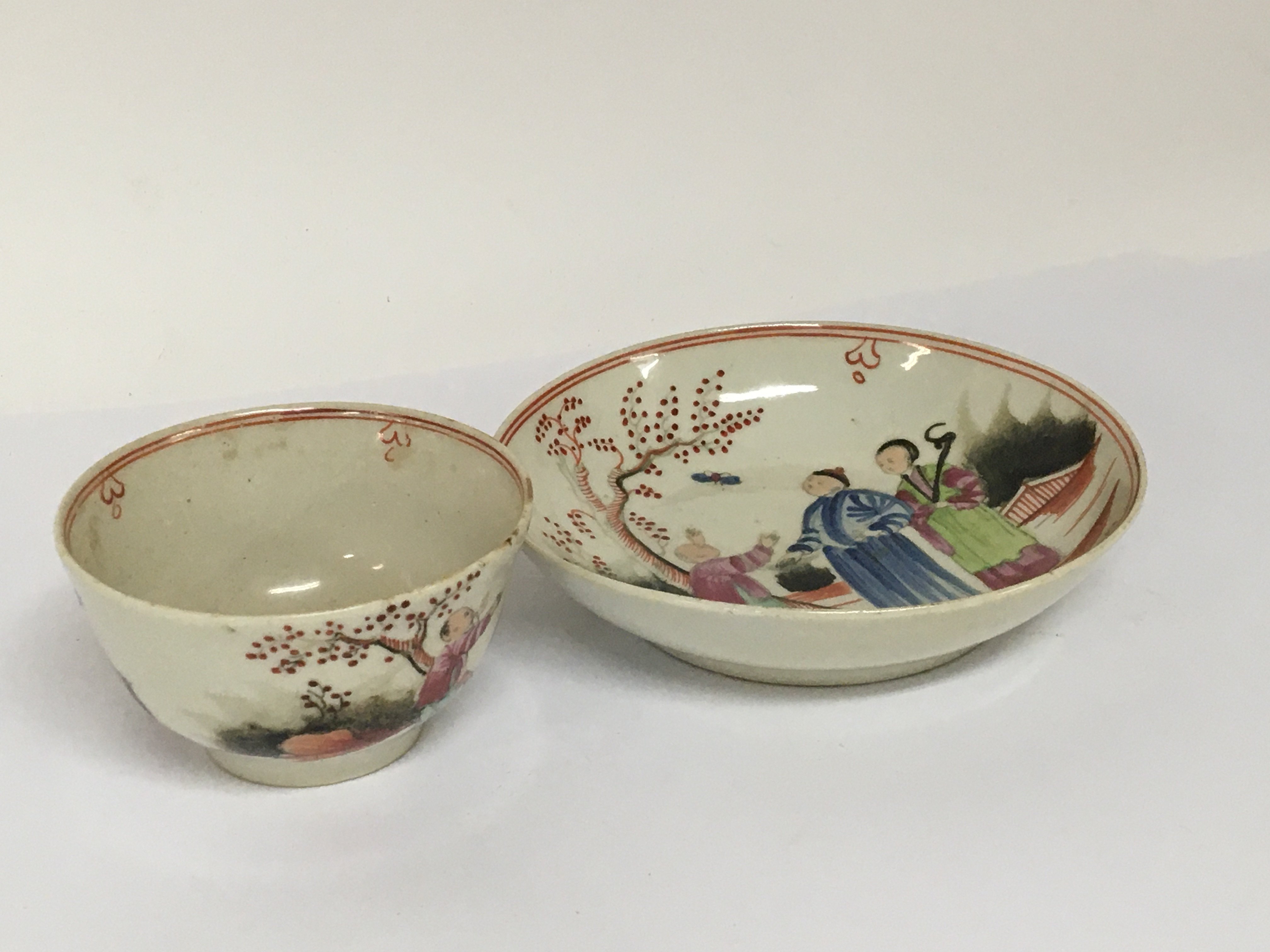 An18th century Chinese export porcelain cup and saucer decorated with figures. (2)