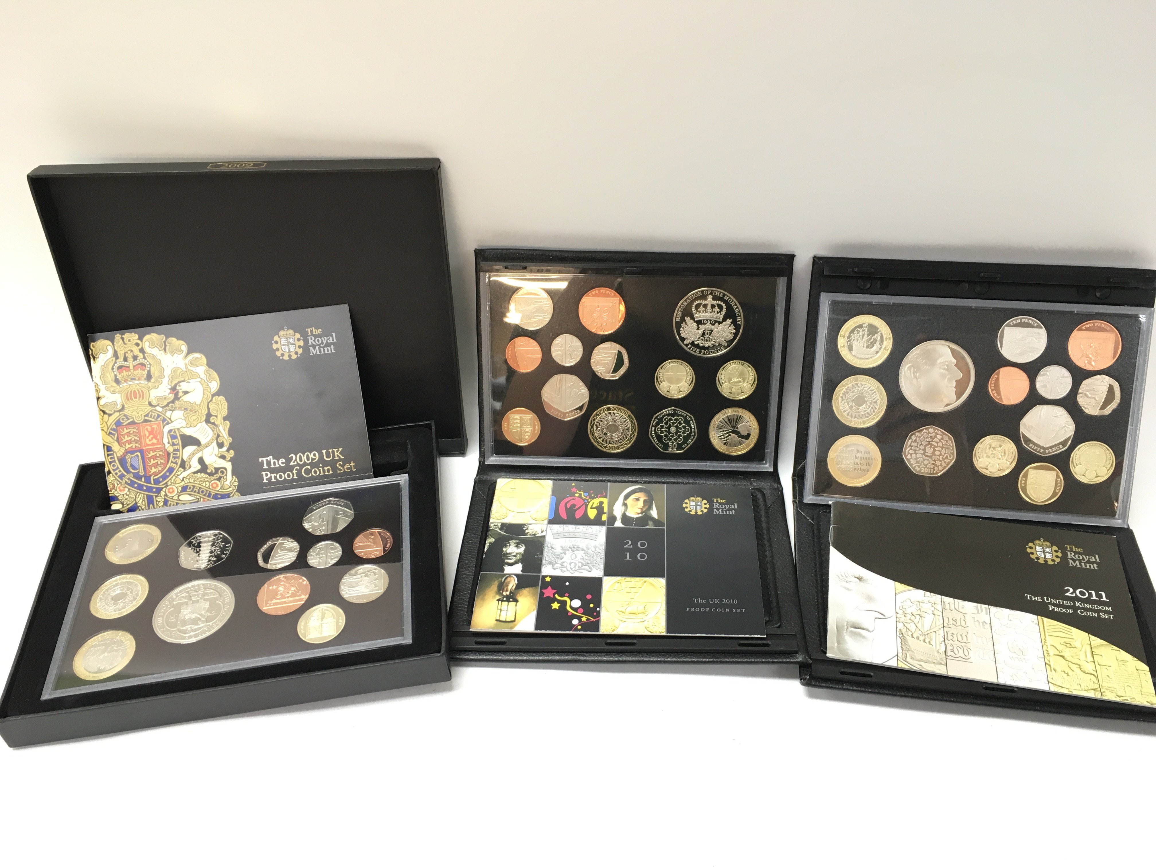 Three uncirculated year sets, 2009, 2010 and 2011. Postage category C