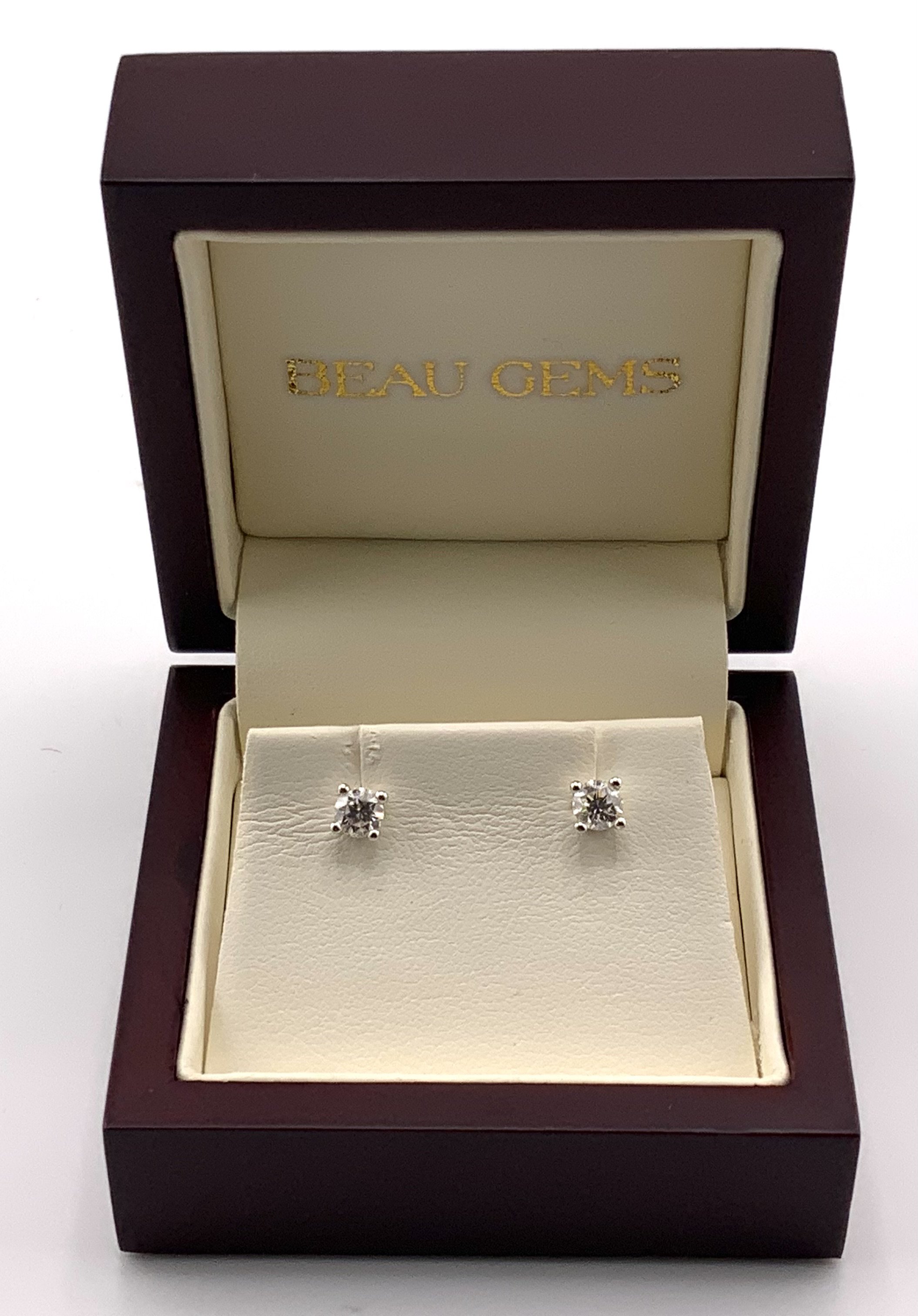 A pair of good quality 18ct white gold and 0.50ct total diamond studs. (A)