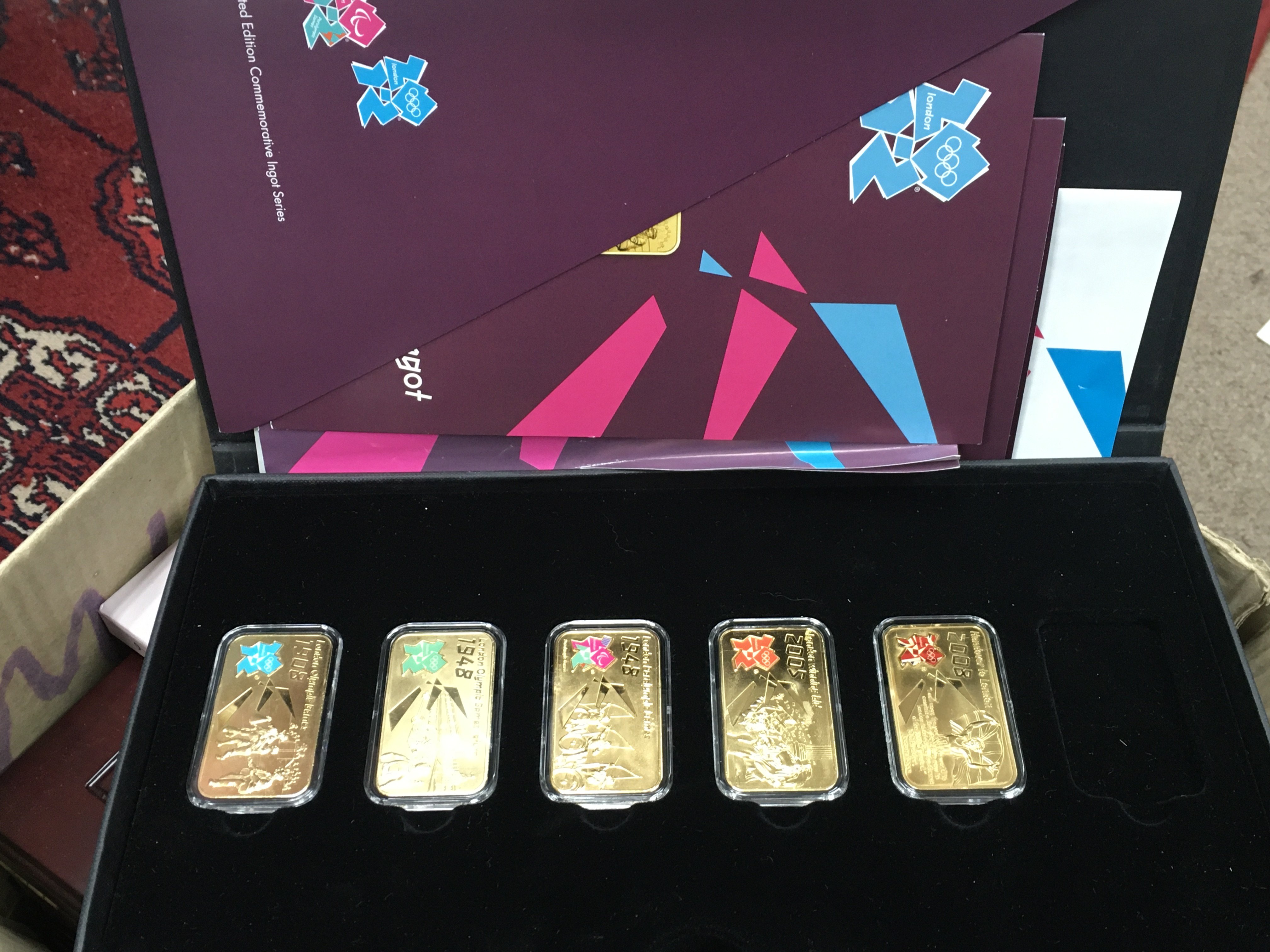 A collection of coins including commemorative coinage, pennies, half crowns, limited edition Commemorative 2012 Olympics Ingots, Fifty Pence 40th anniversary prestige set, etc. Postage category C