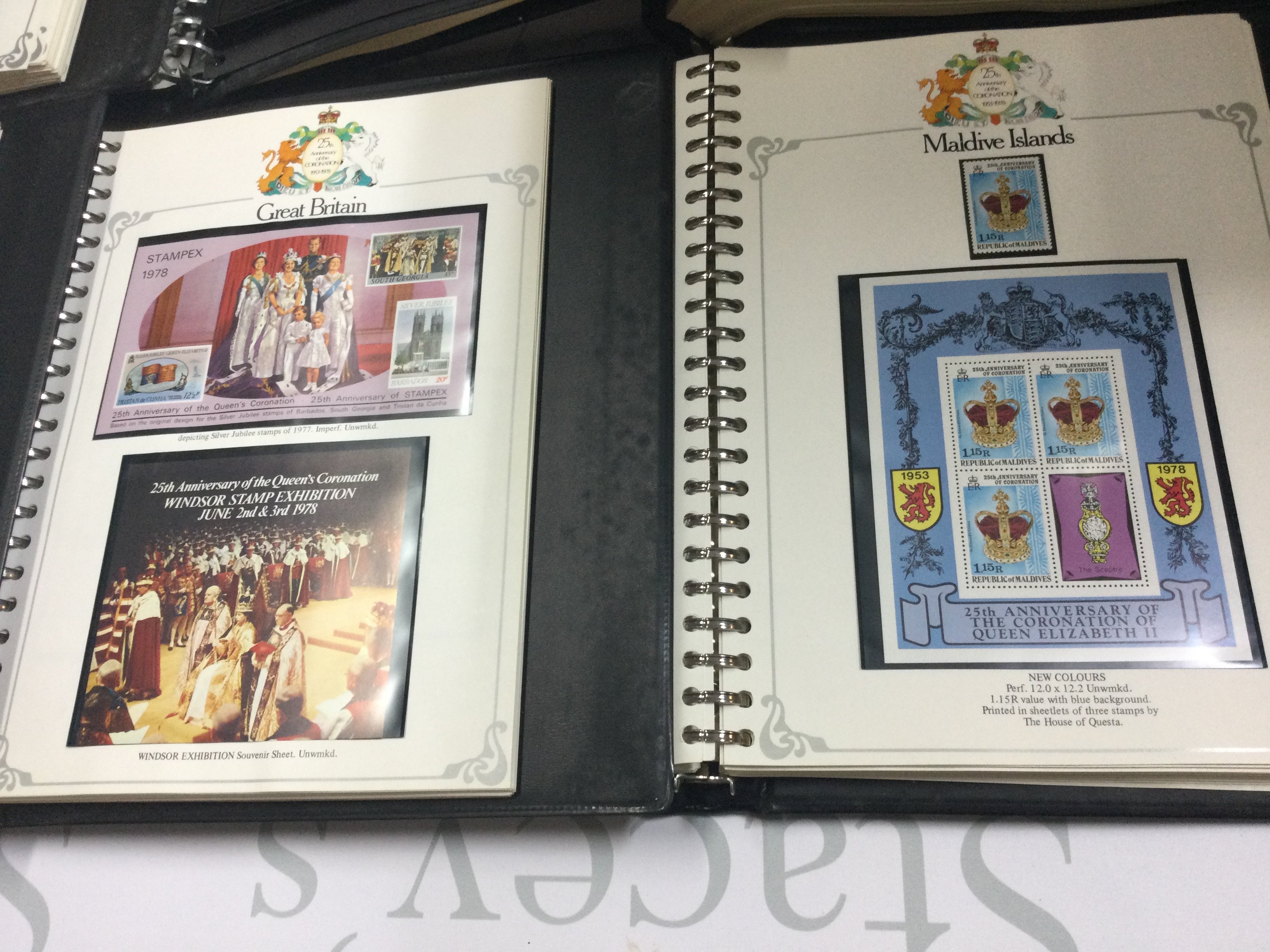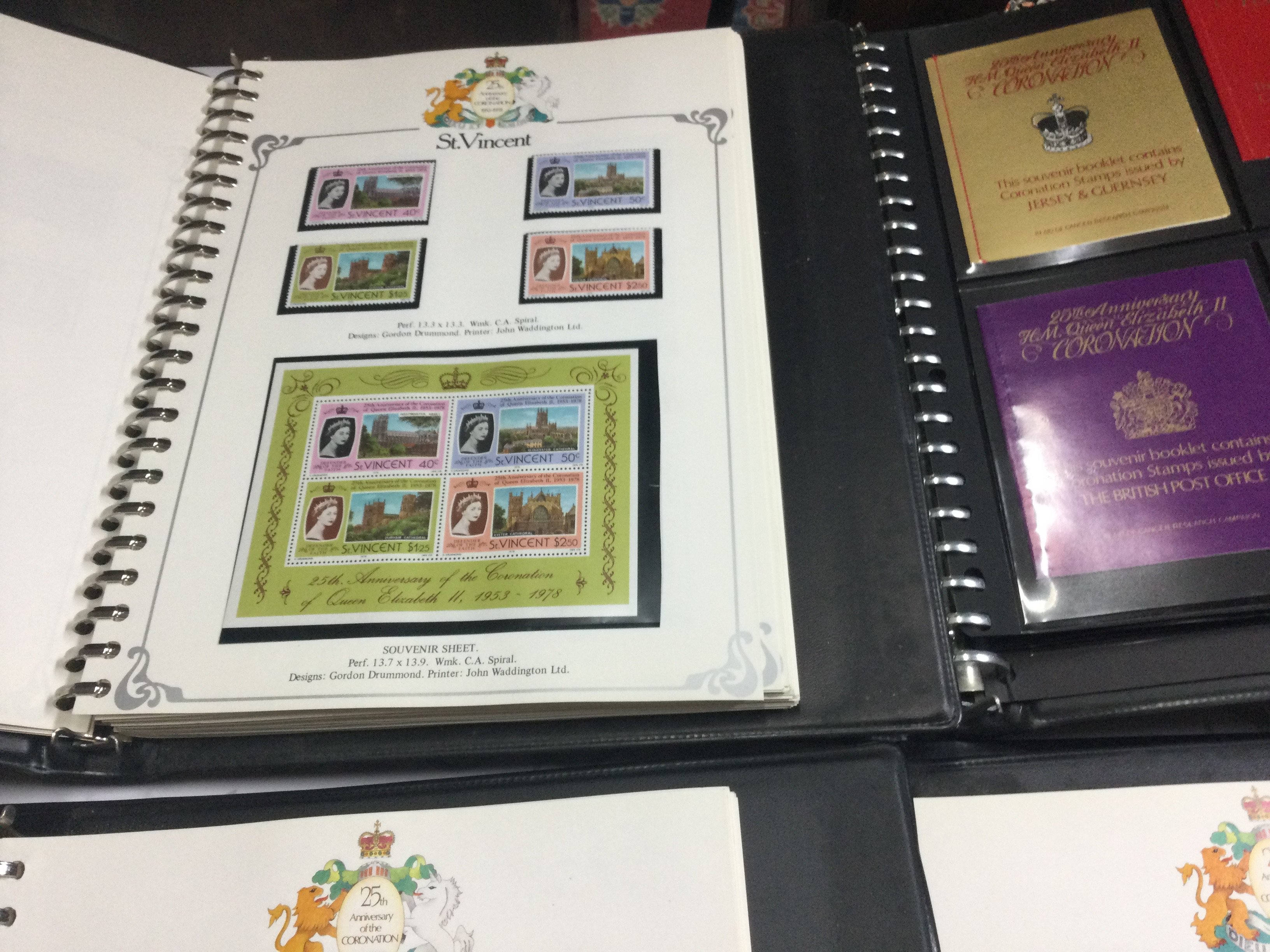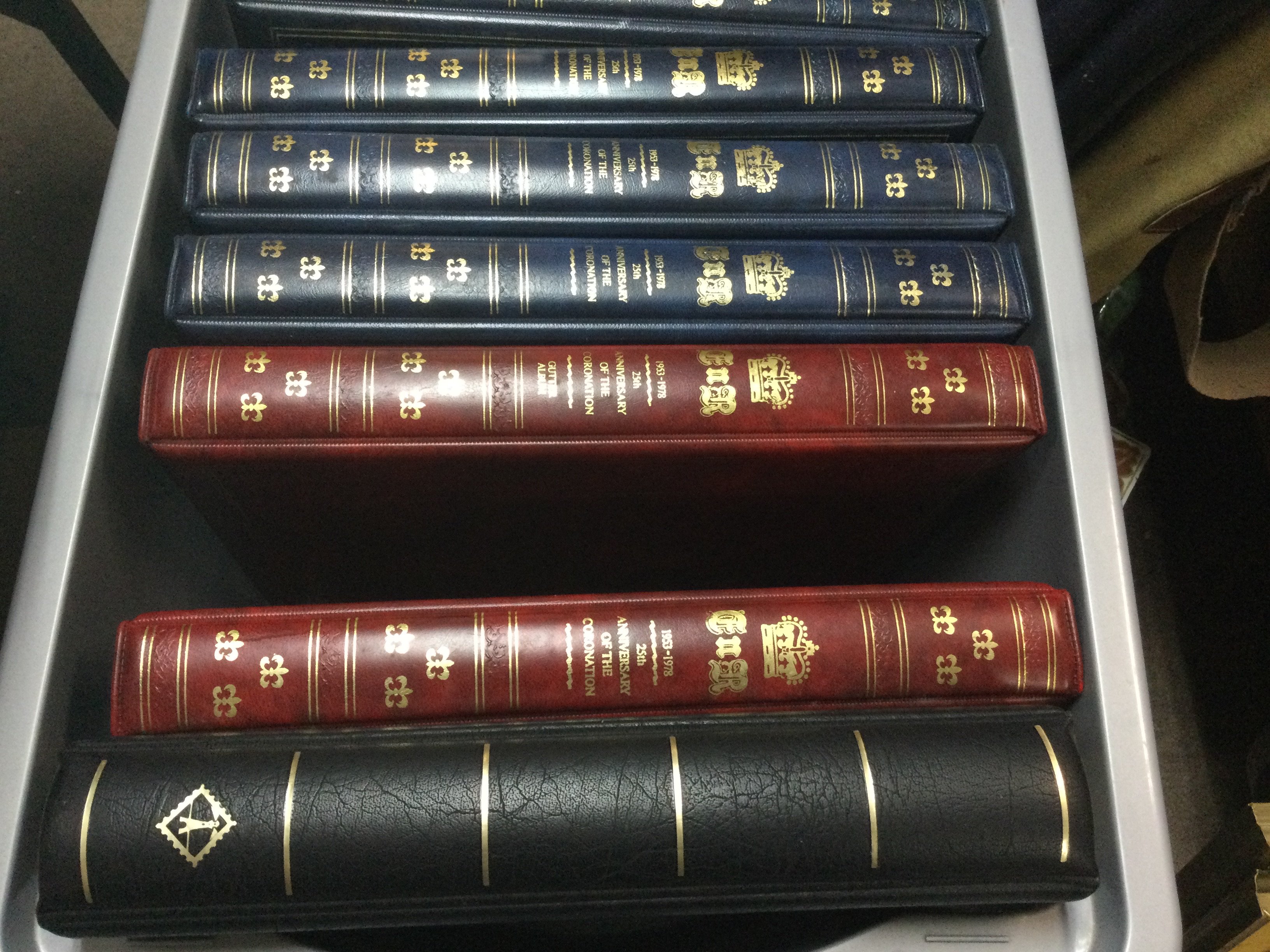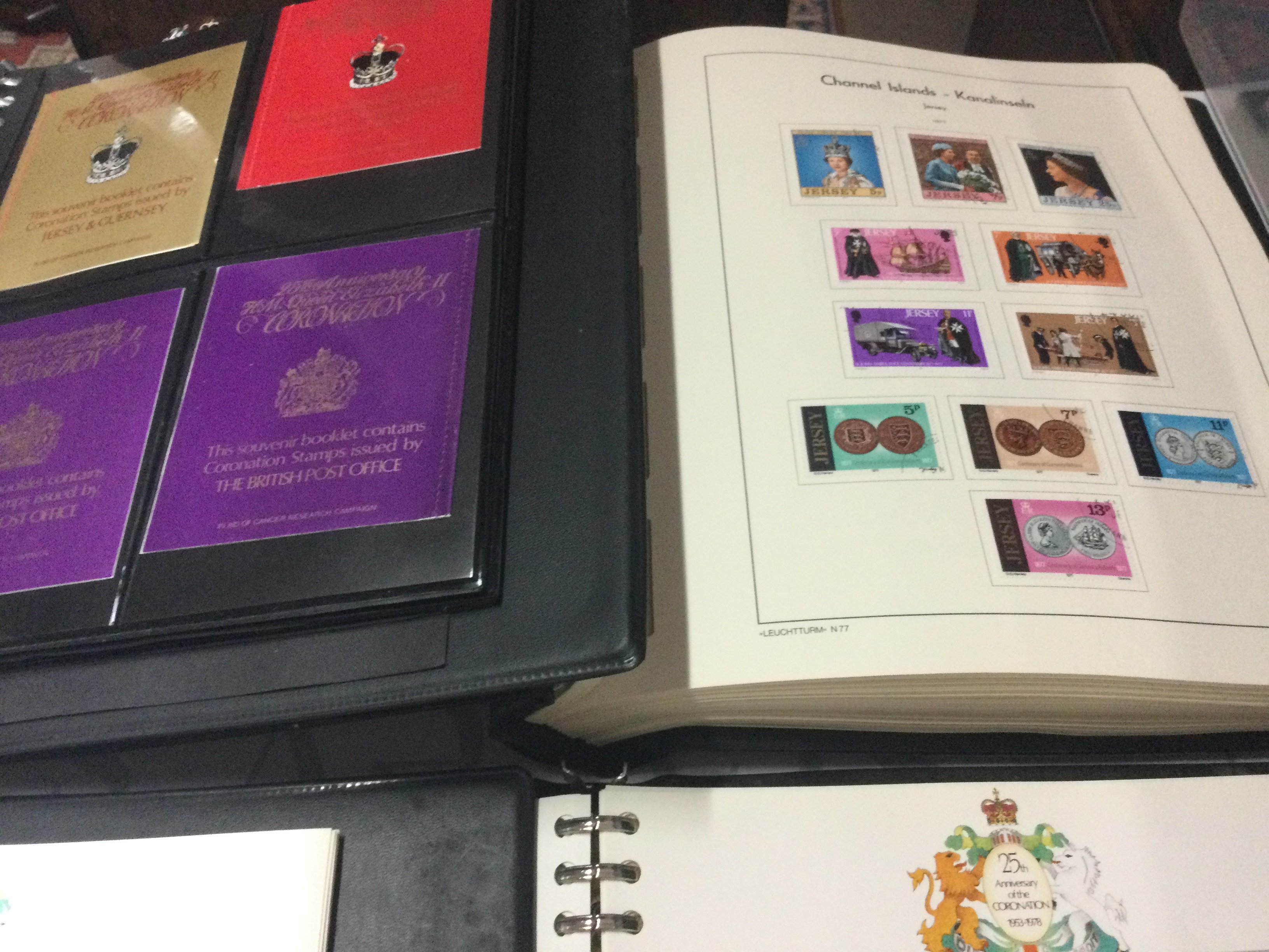 A collection of seven albums of stamps including channel Island and souvenir booklets .