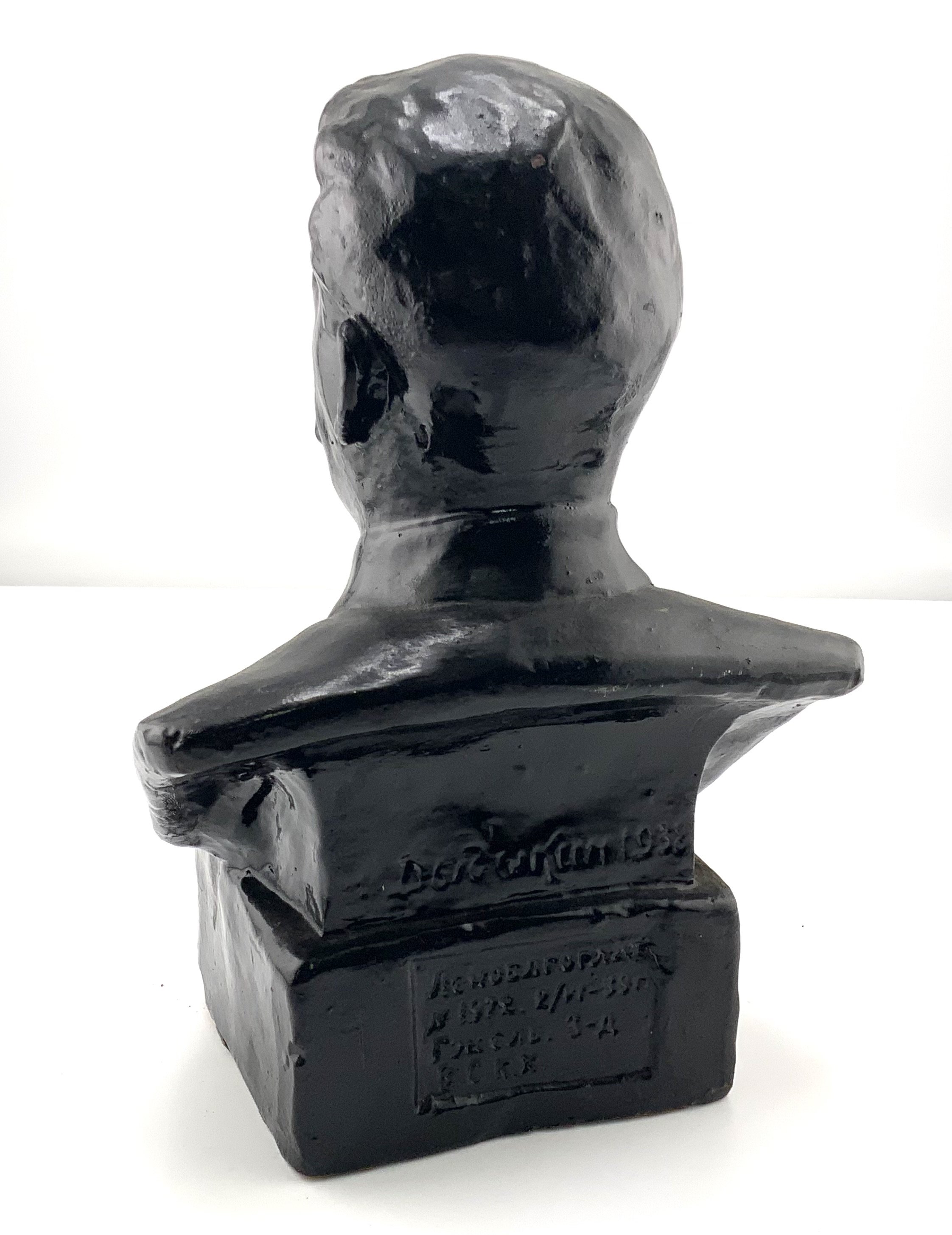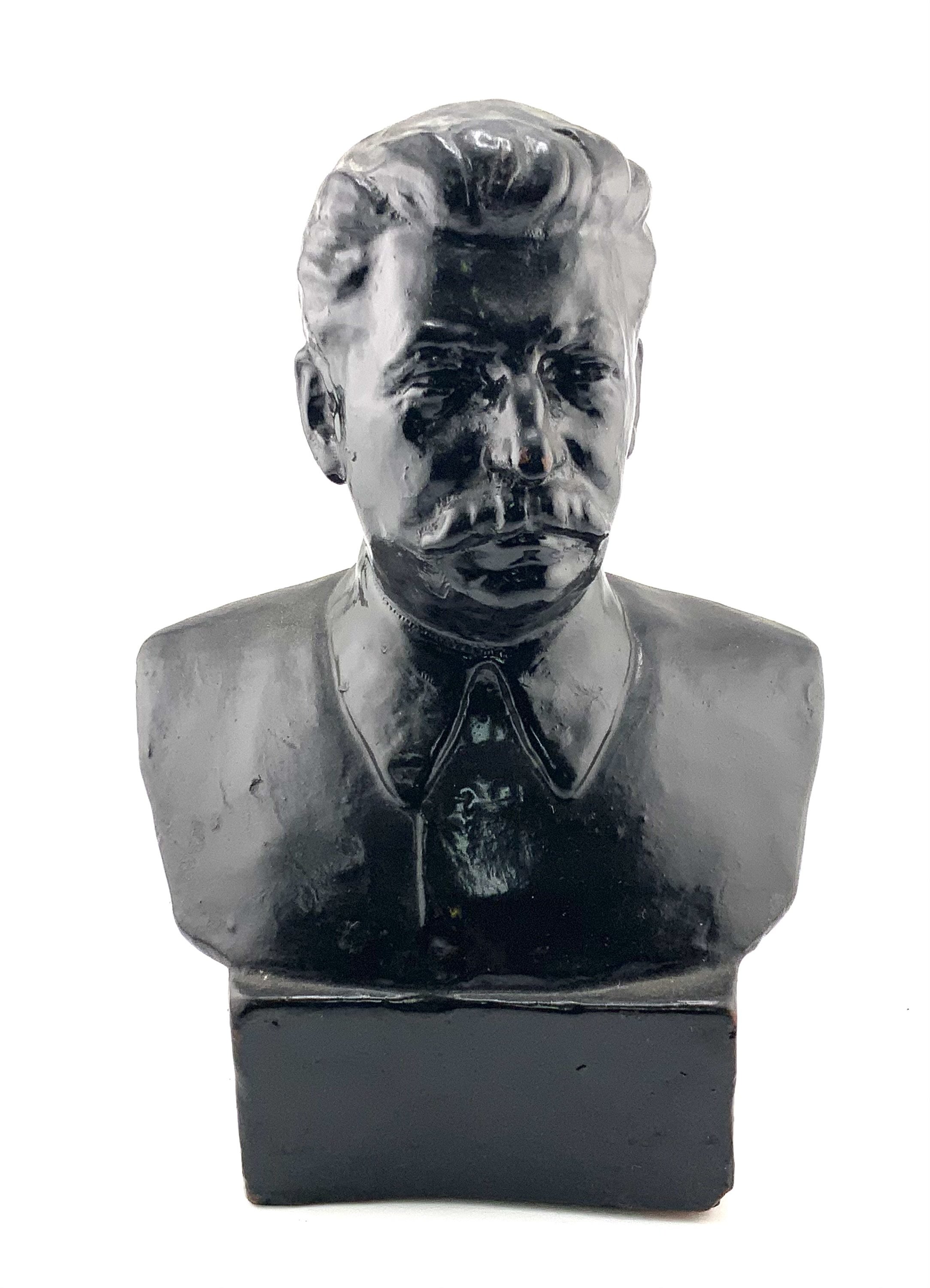 A small black glazed terracotta pottery bust of Stalin, 20cm. (D)