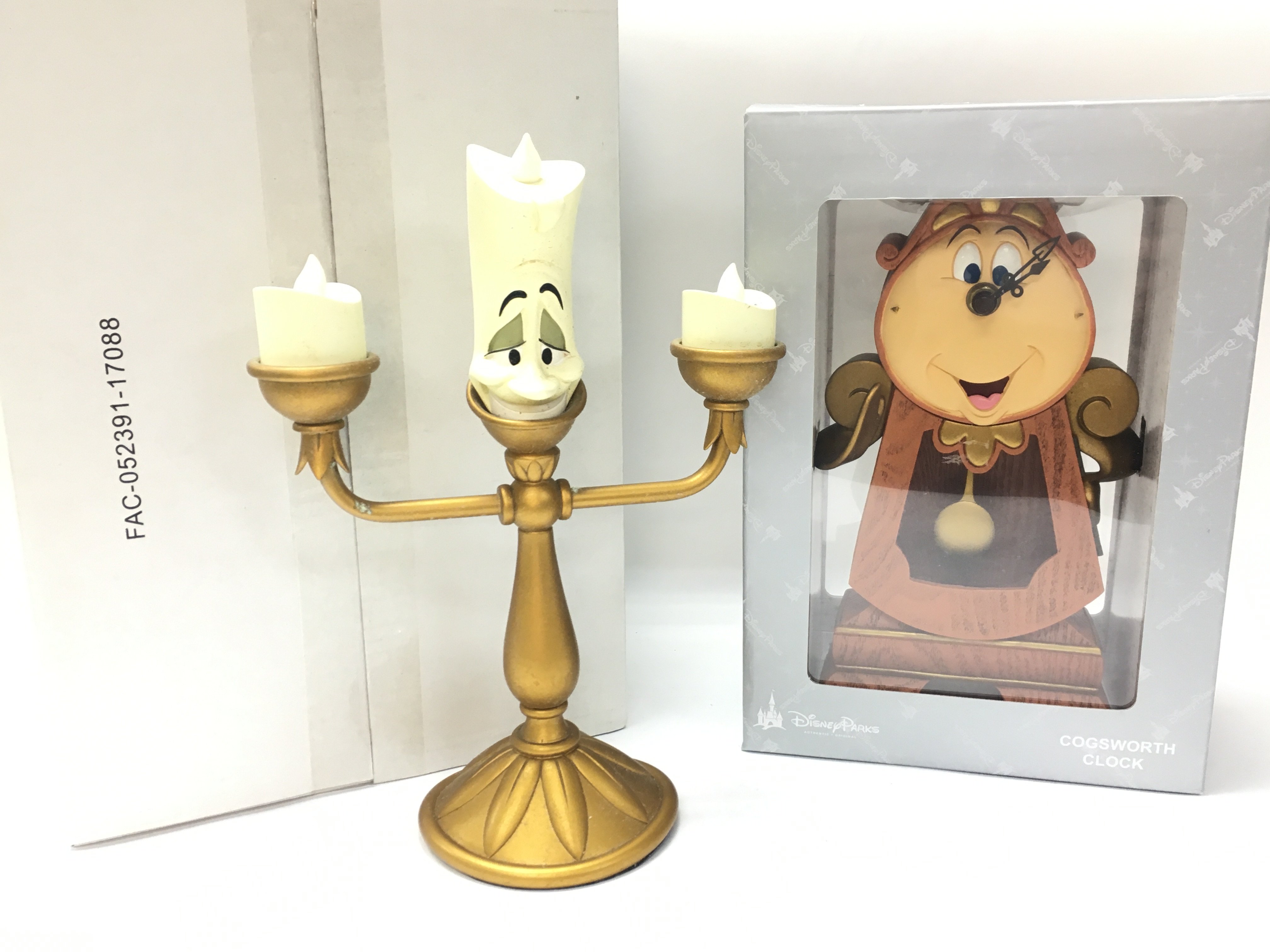 Disney Beauty and the Beast boxed Cogsworth Disney Parks exclusive clock and a Lumiere light up figure