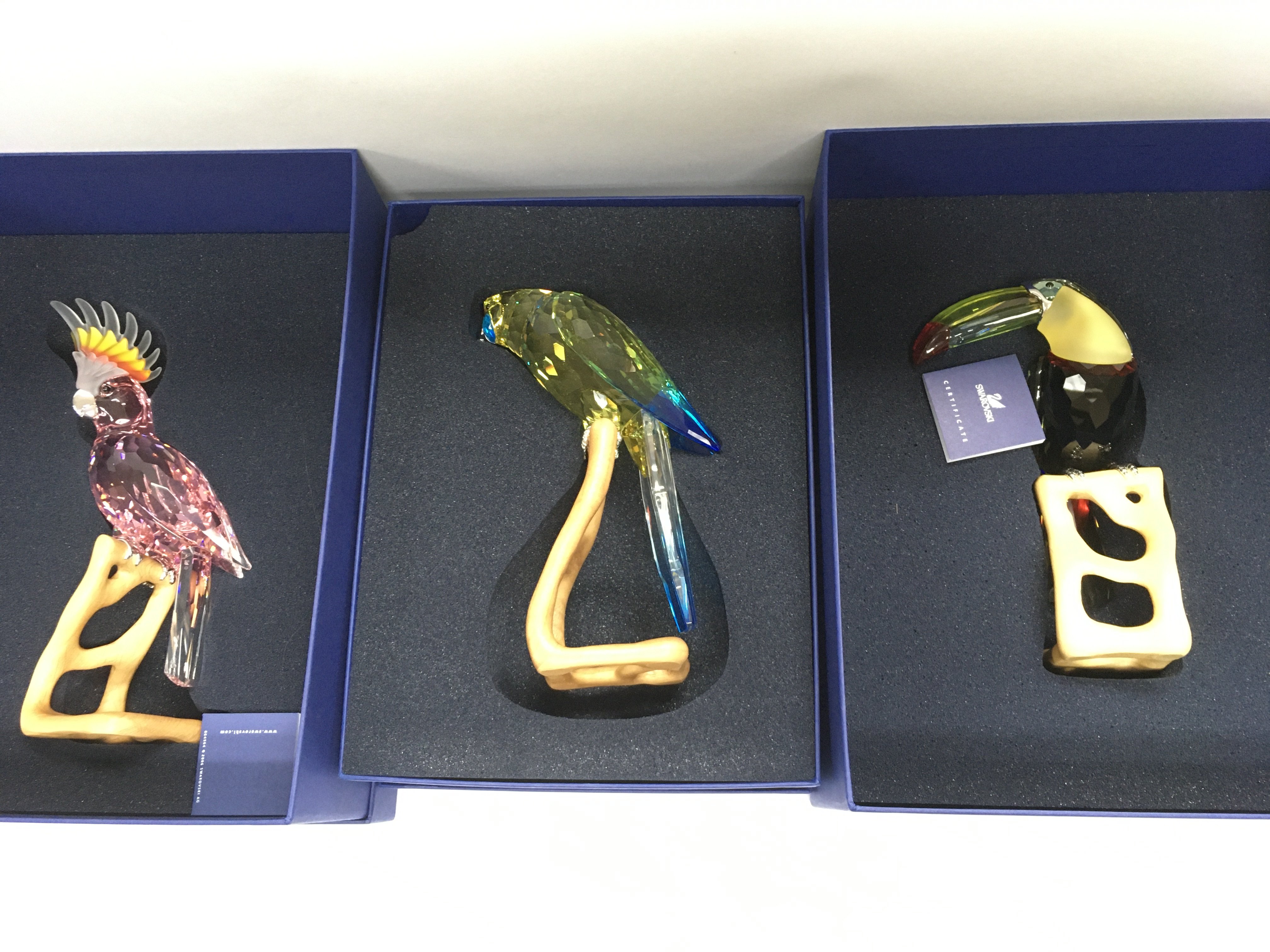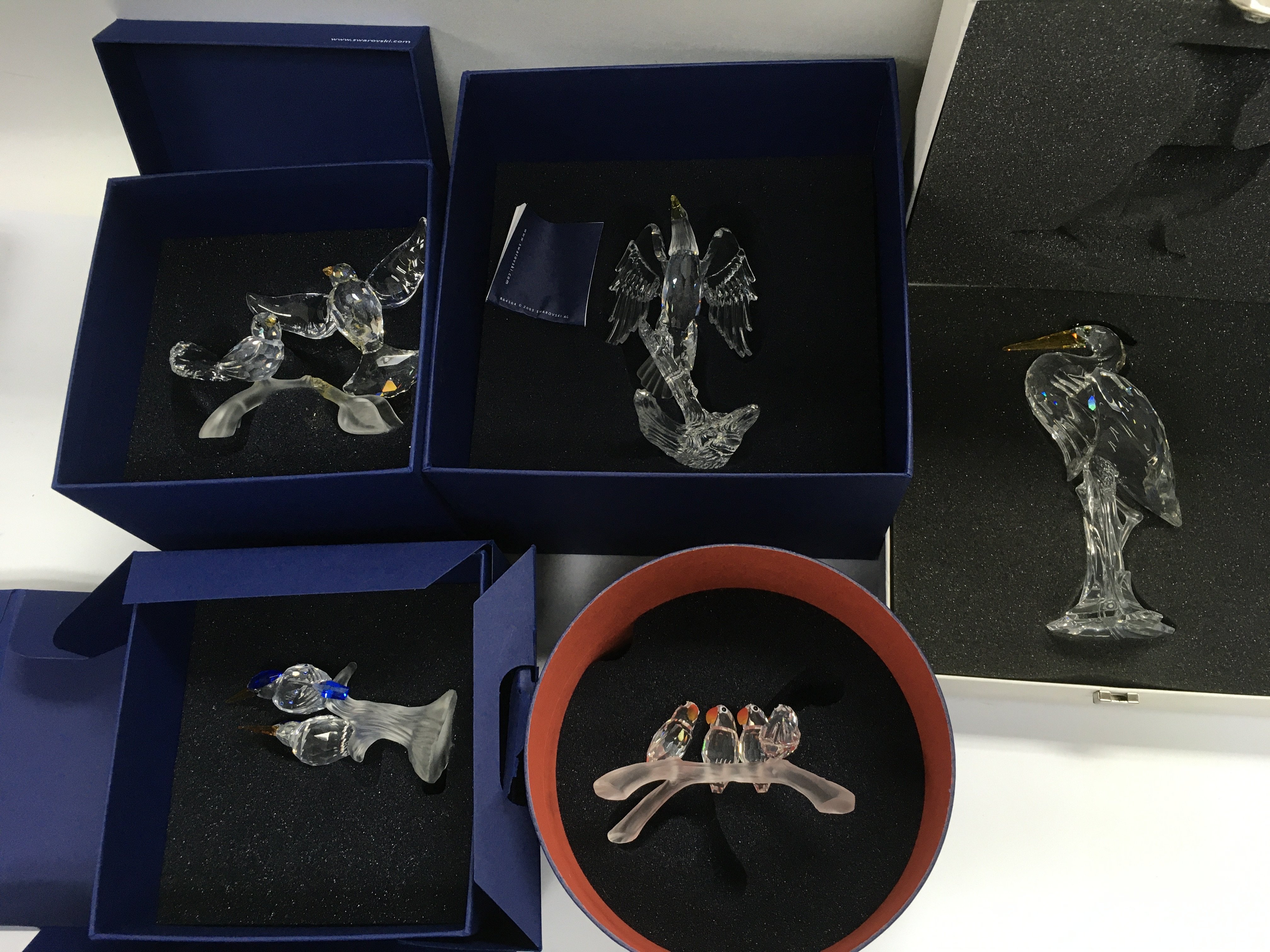 Eight boxed Swarovski birds. Shipping category D.