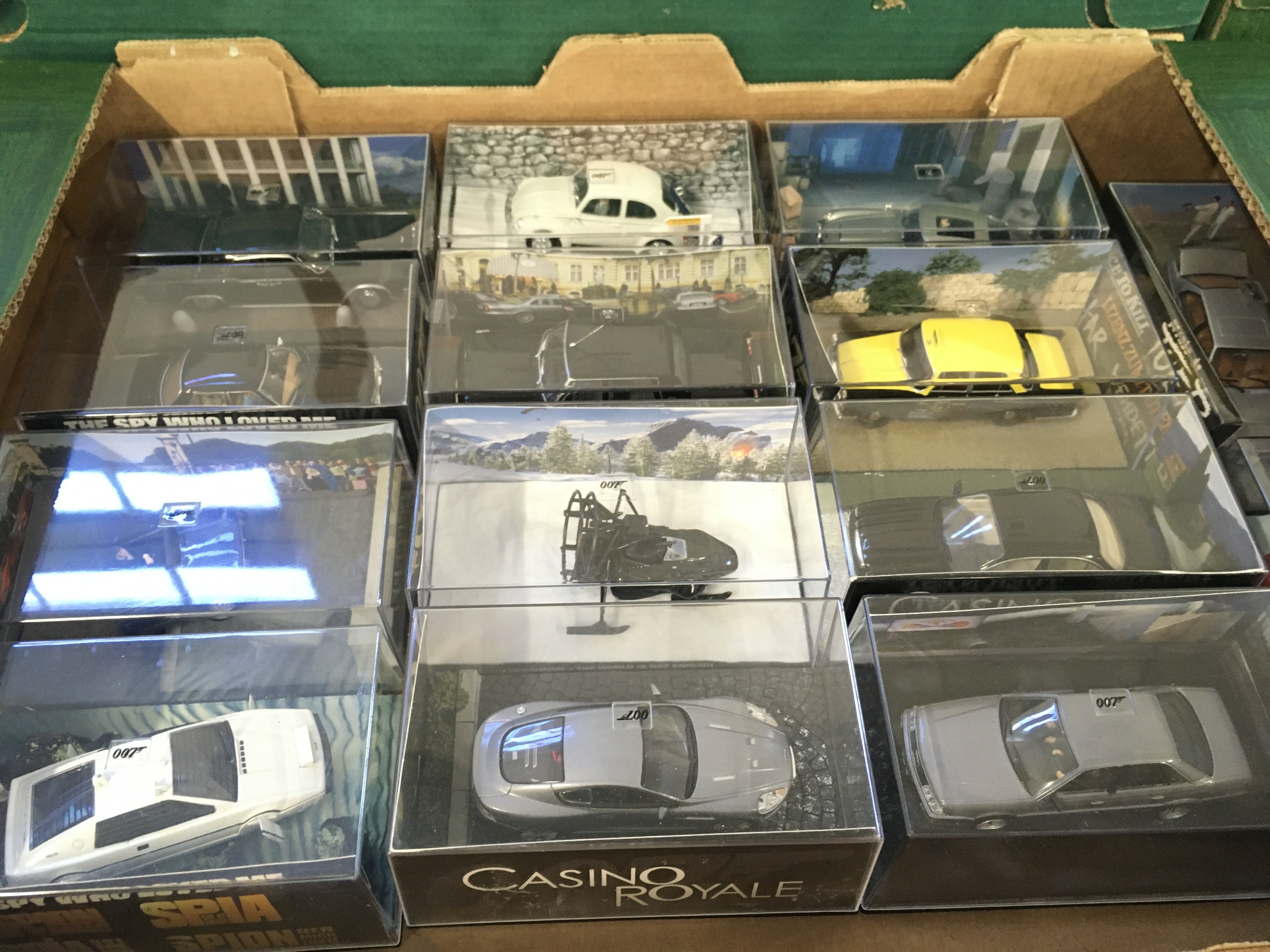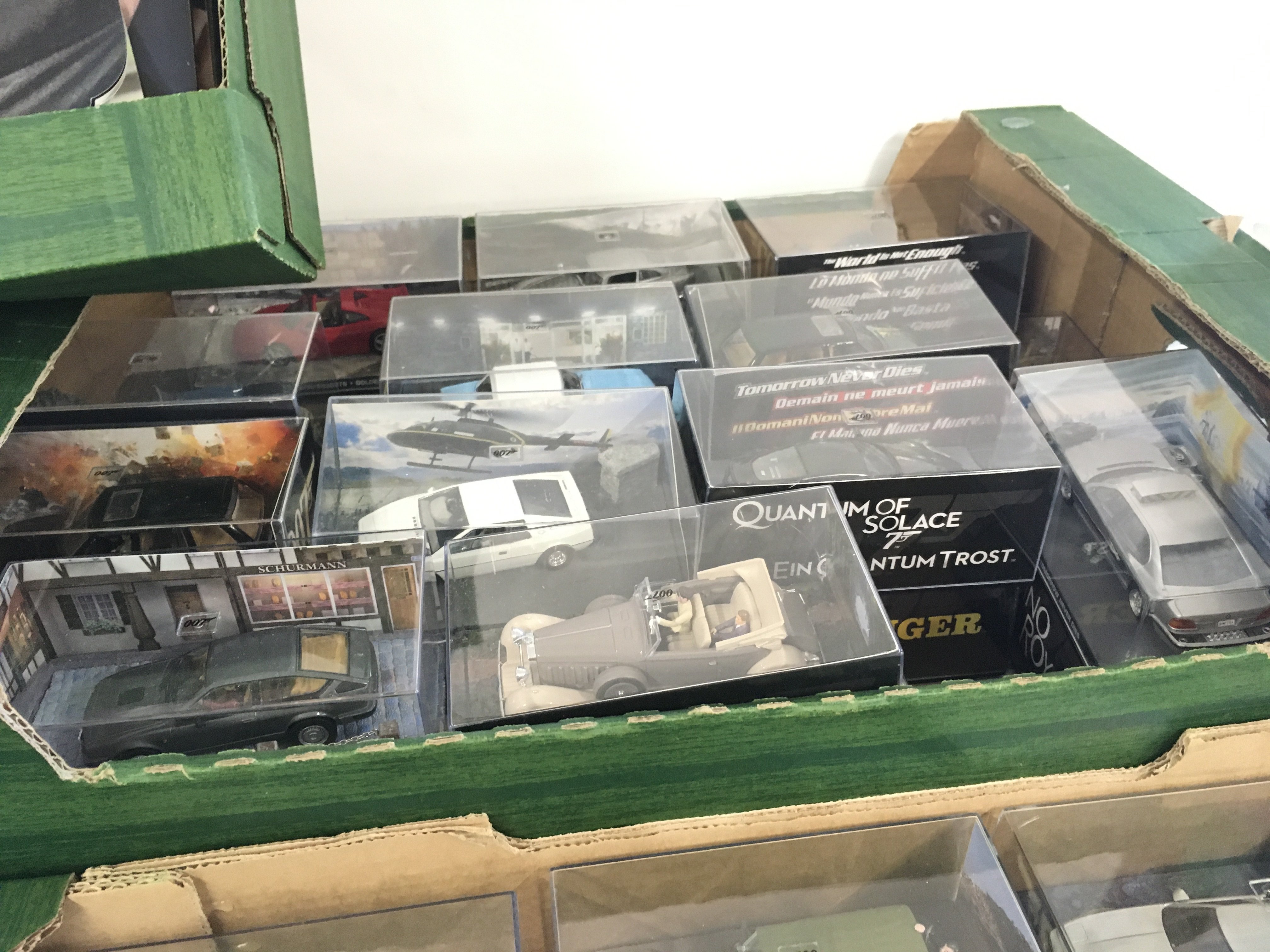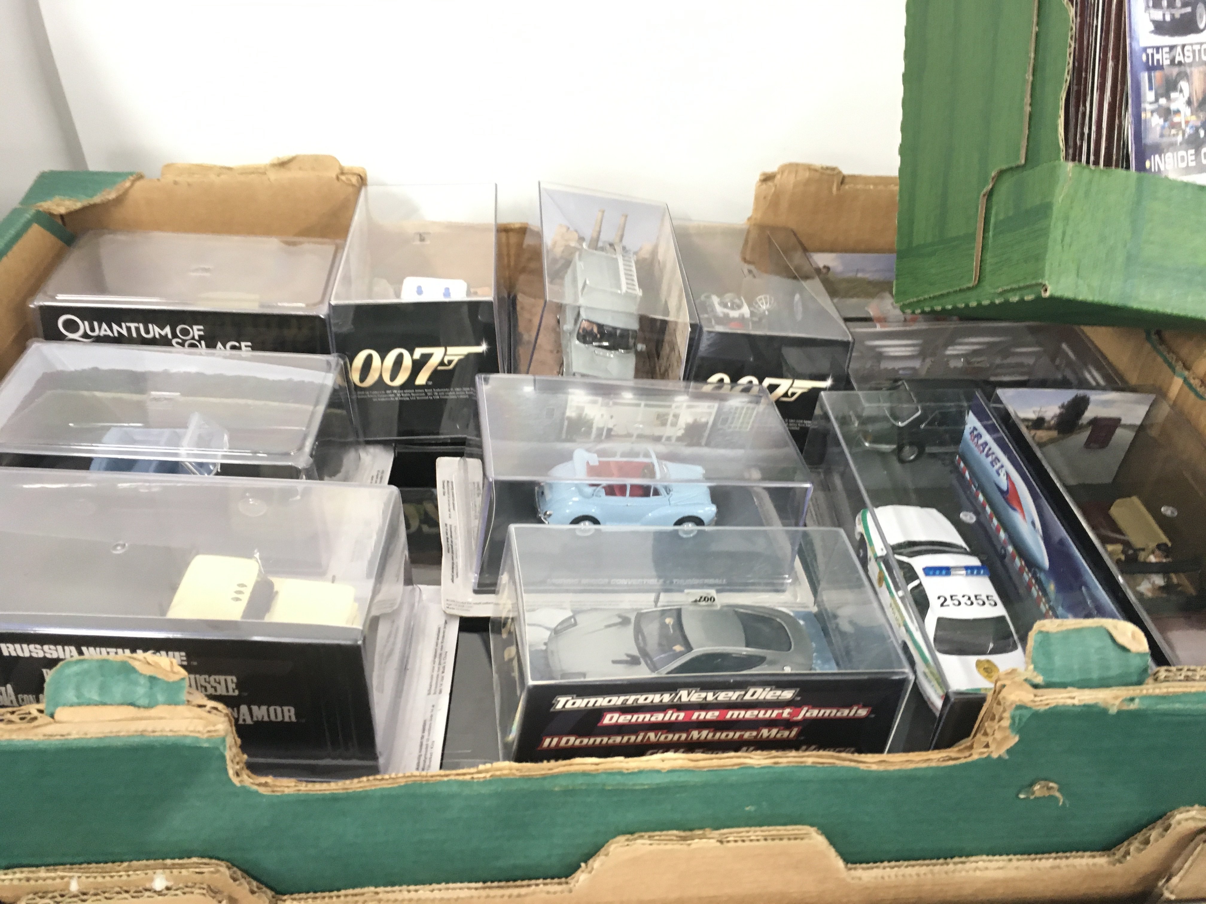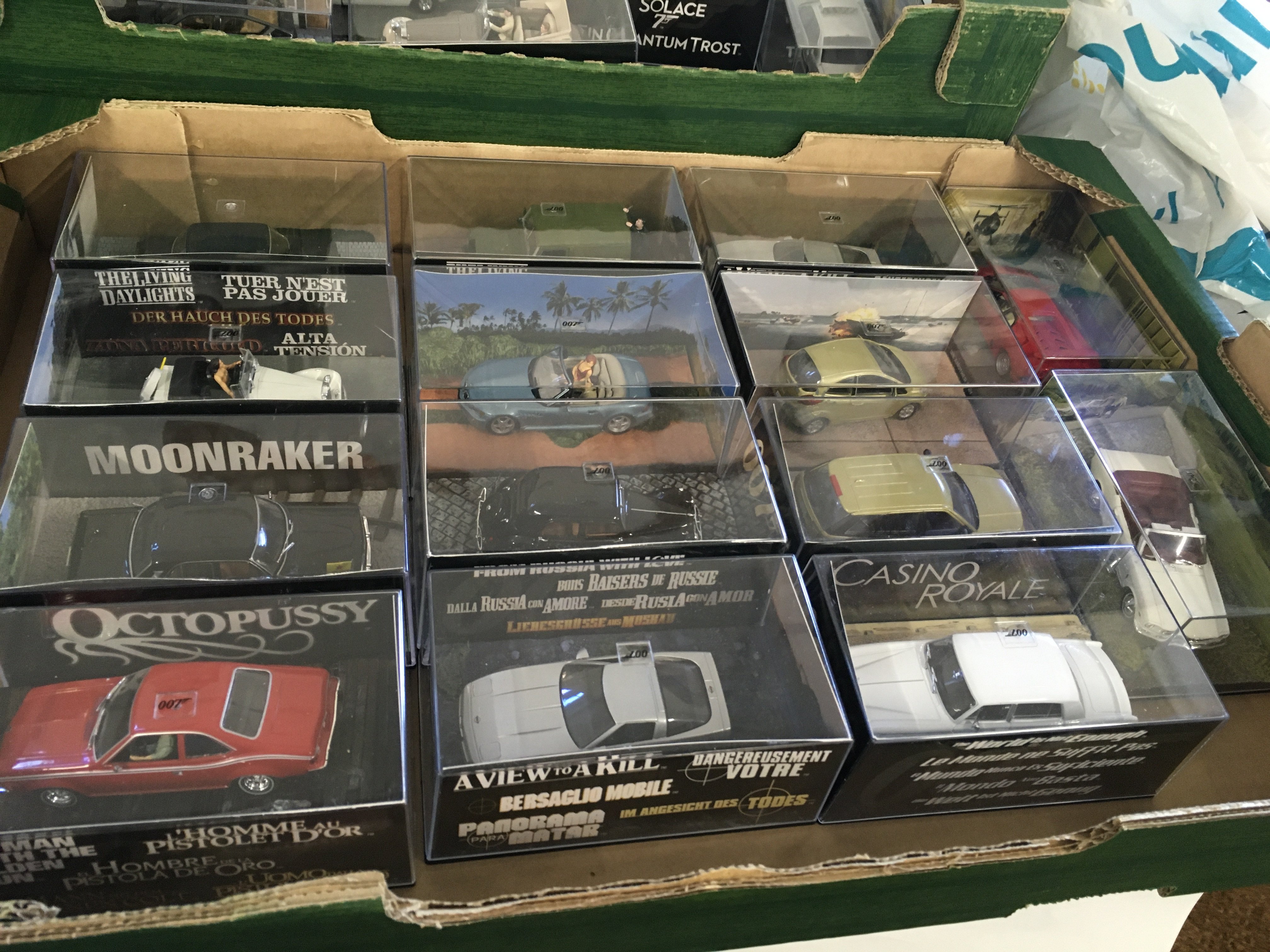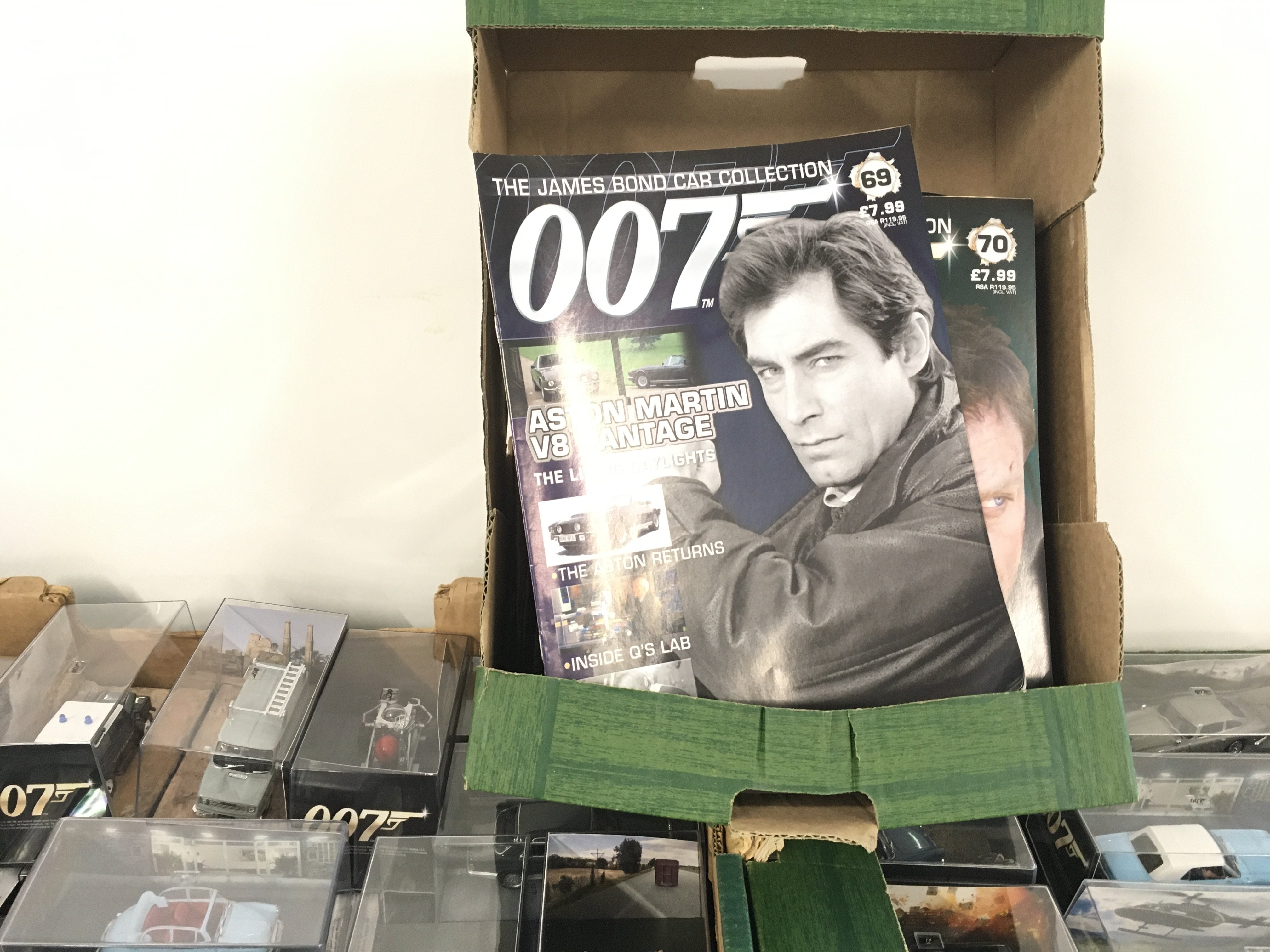 A collection in excess of 75 James Bond 007 cars all in display boxes complete with approximately 139 magazines by Fabbri entitled The James Bond Car Collection. (5)