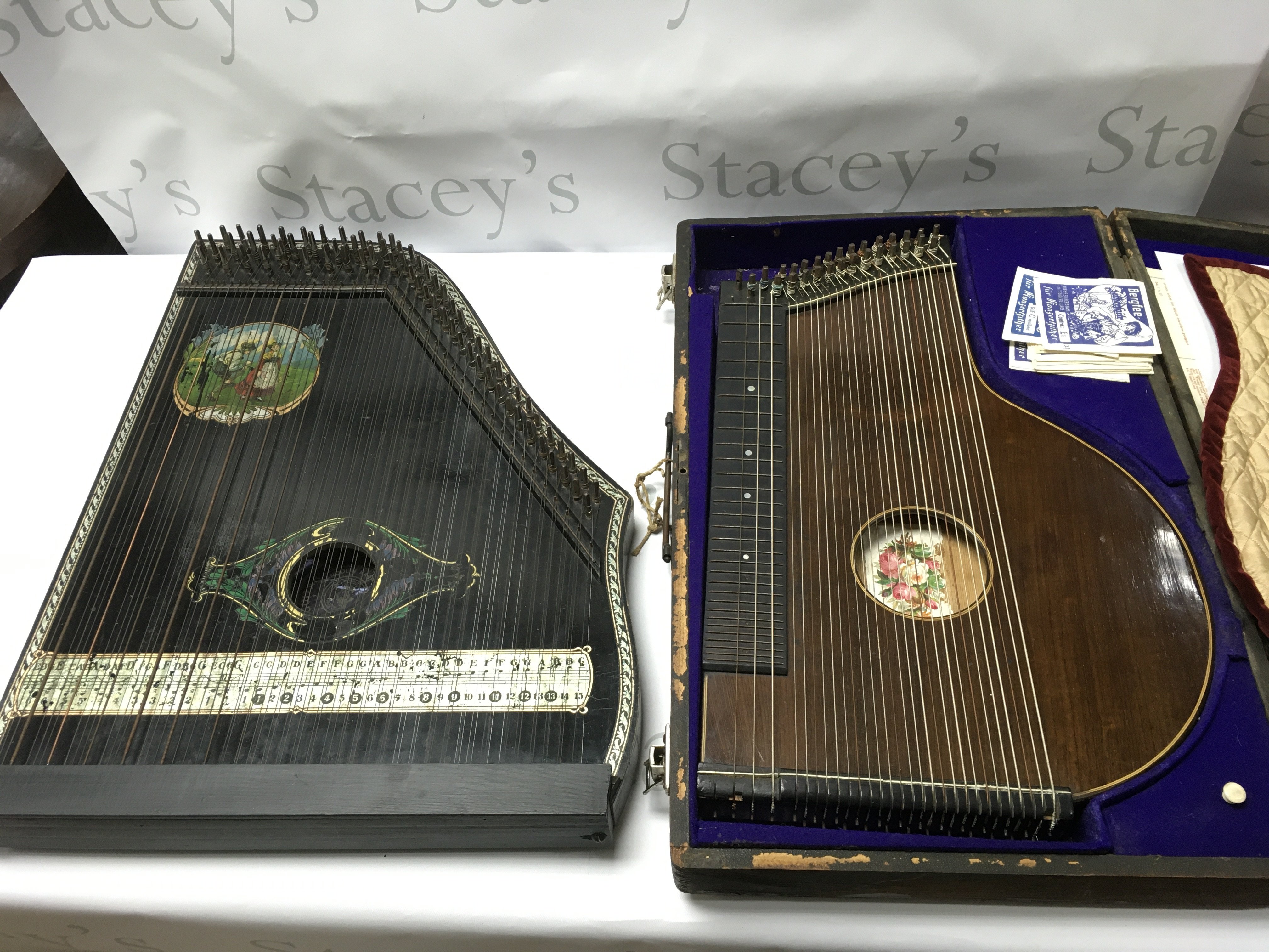 Two autoharps comprising a cased example and a Columbia. Shipping category D.