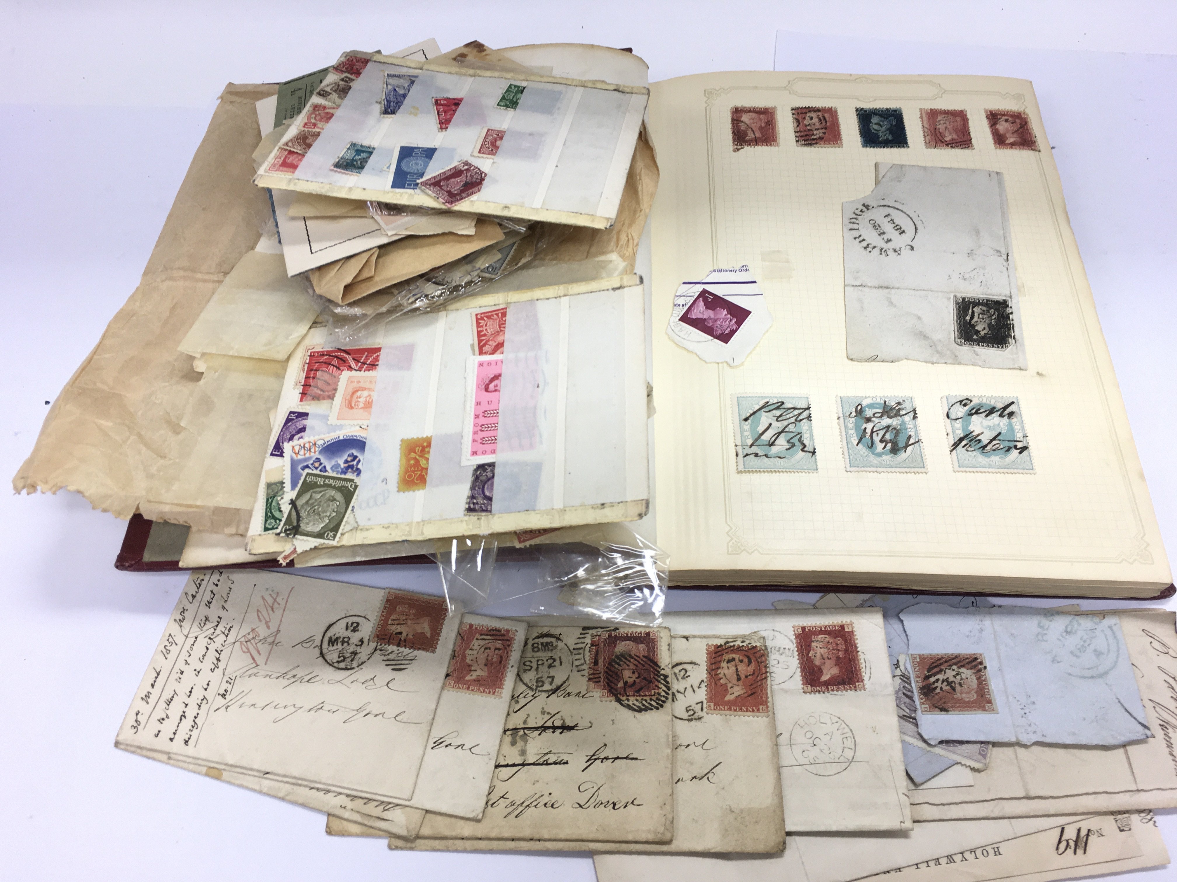 A small collection of stamps including a penny black, a penny blue and reds. Shipping category B.