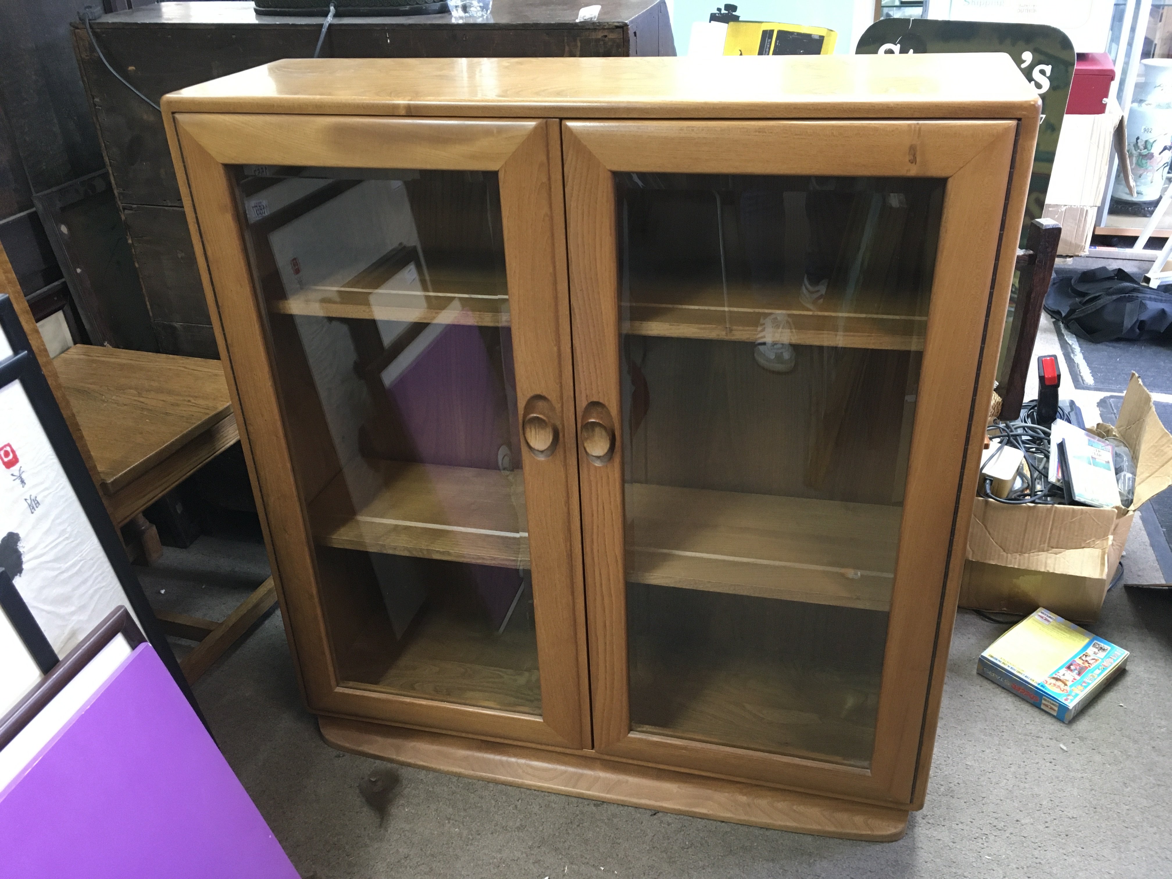 An Ercol bookcase, approx 91cm x 97cm x 29cm. Shipping category D.
