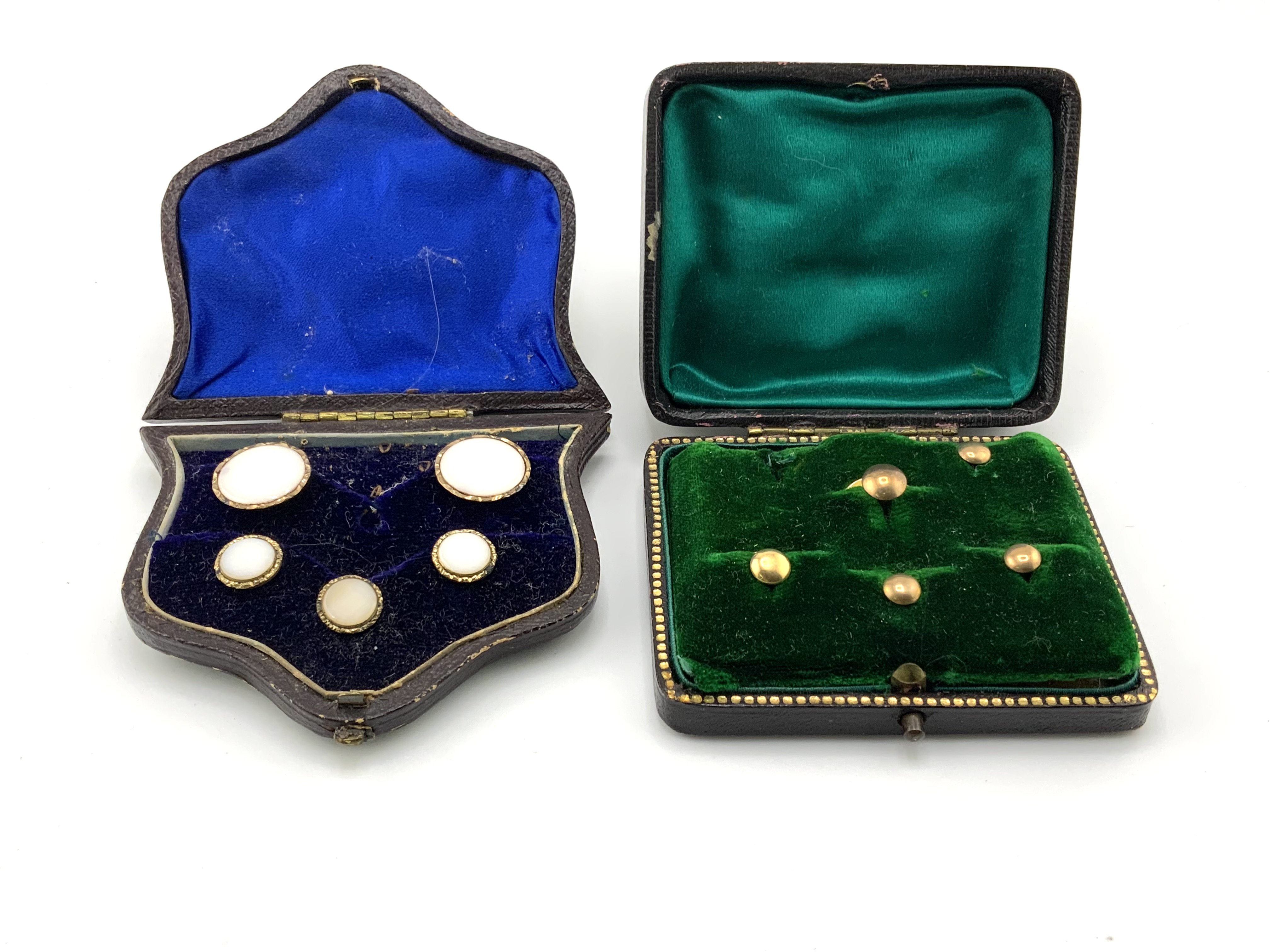A 9ct gold cased set of collar studs together with a gilt metal and glass stud stud