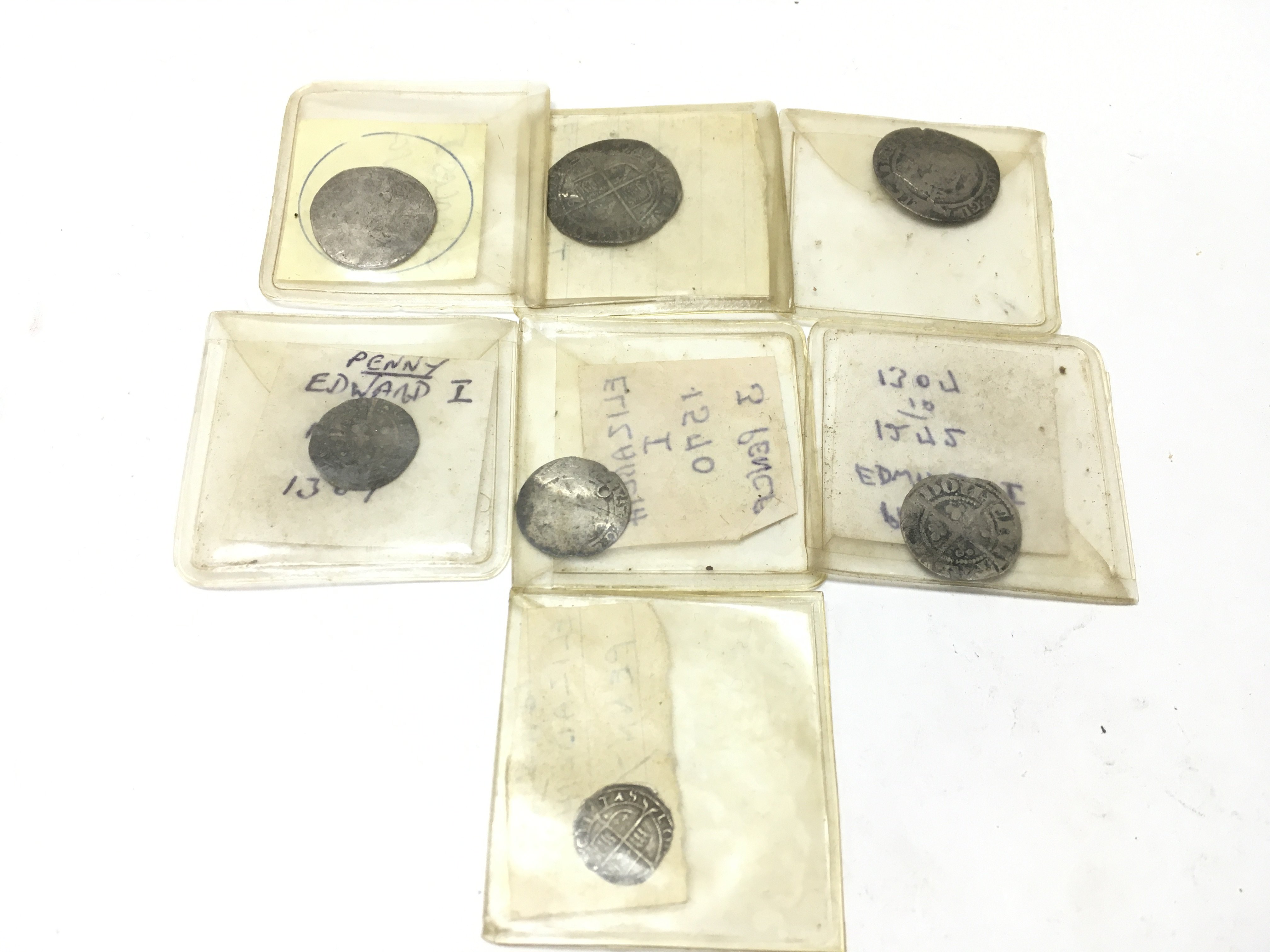 A collection of hammered coins including a Elizabeth I penny, Edward I penny, Elizabeth I six pence, Charles I shilling etc. Postage category a