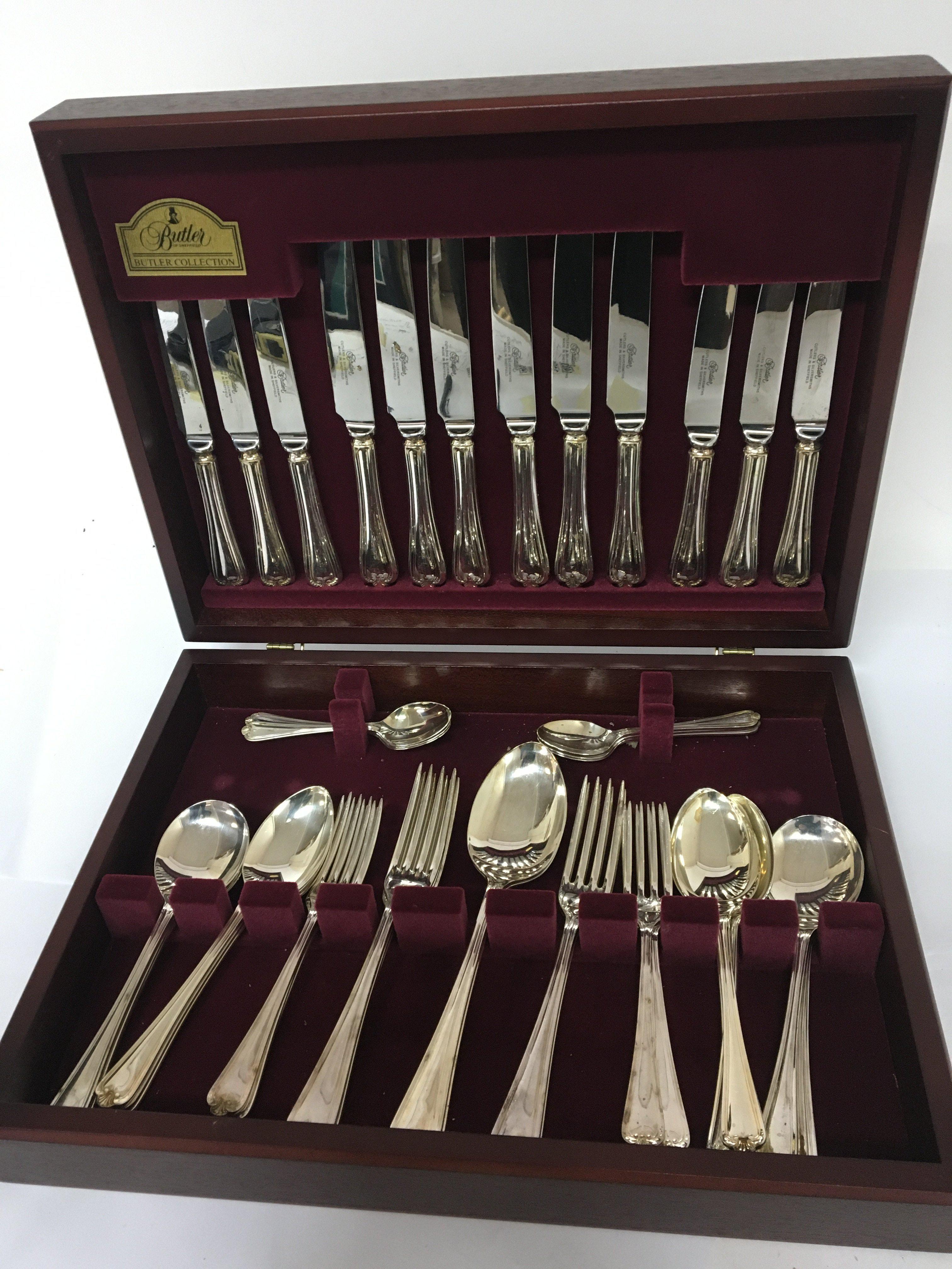 A canteen of silver plated cutlery Butler collection Sheffield.