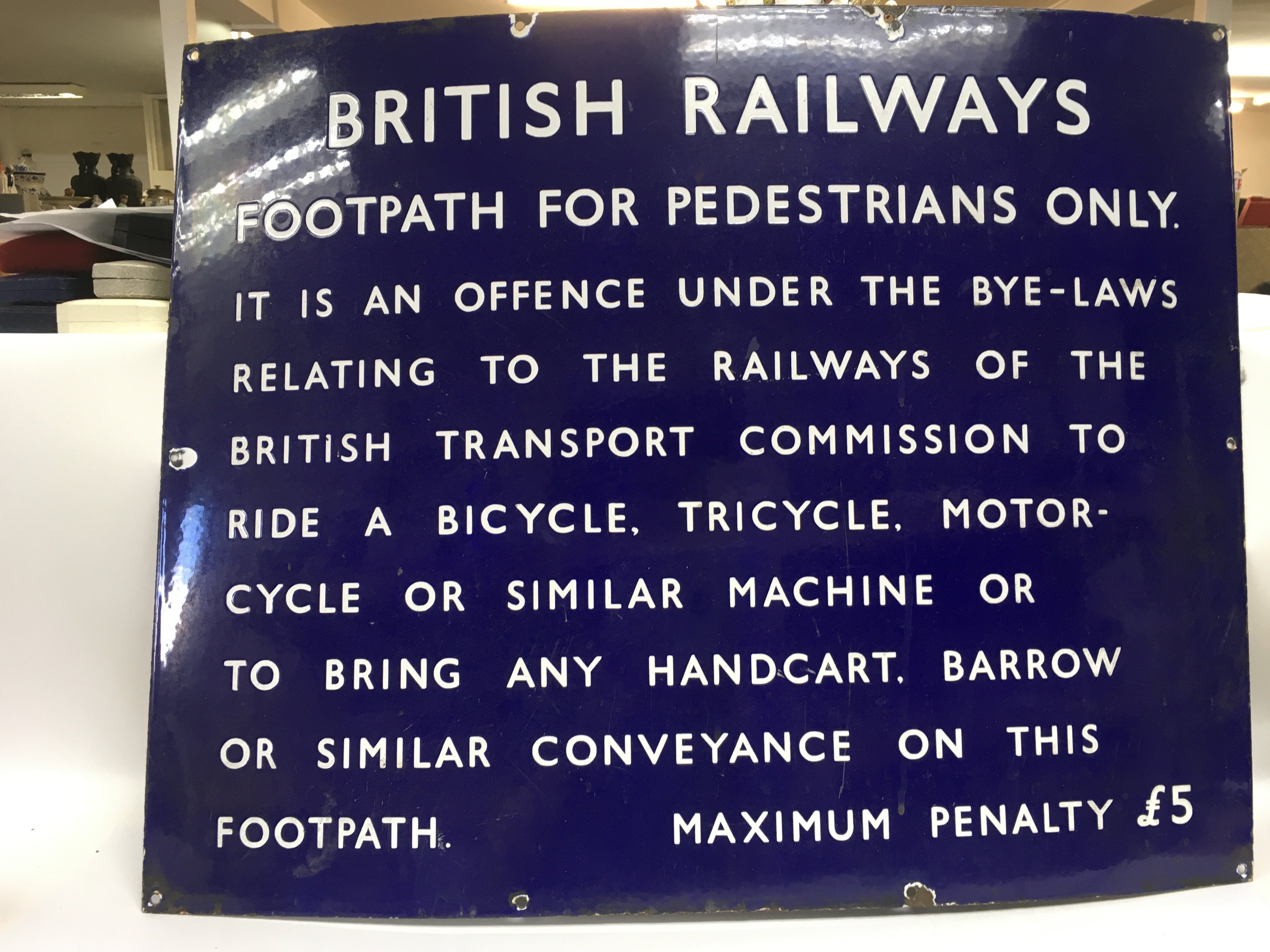 A large British Railways enamel sign, approx 76cm x 60cm. Shipping category D,