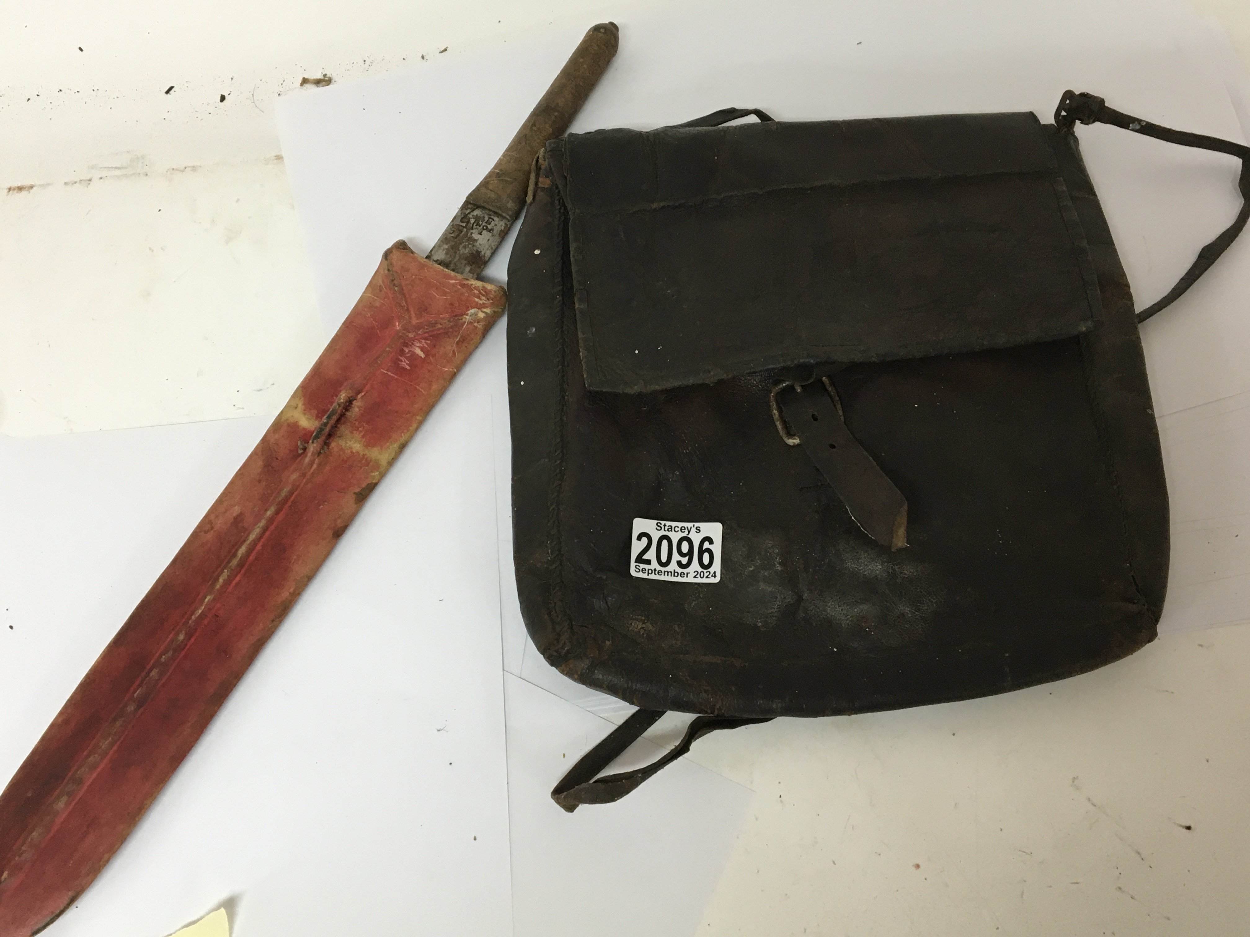 An African Tribe leather satchel and an African sword possible Masai Warrior. (2)